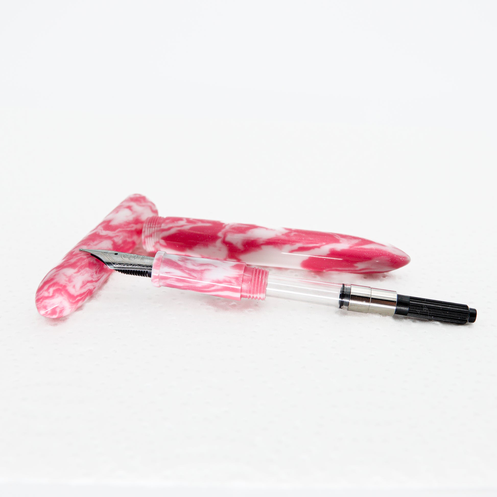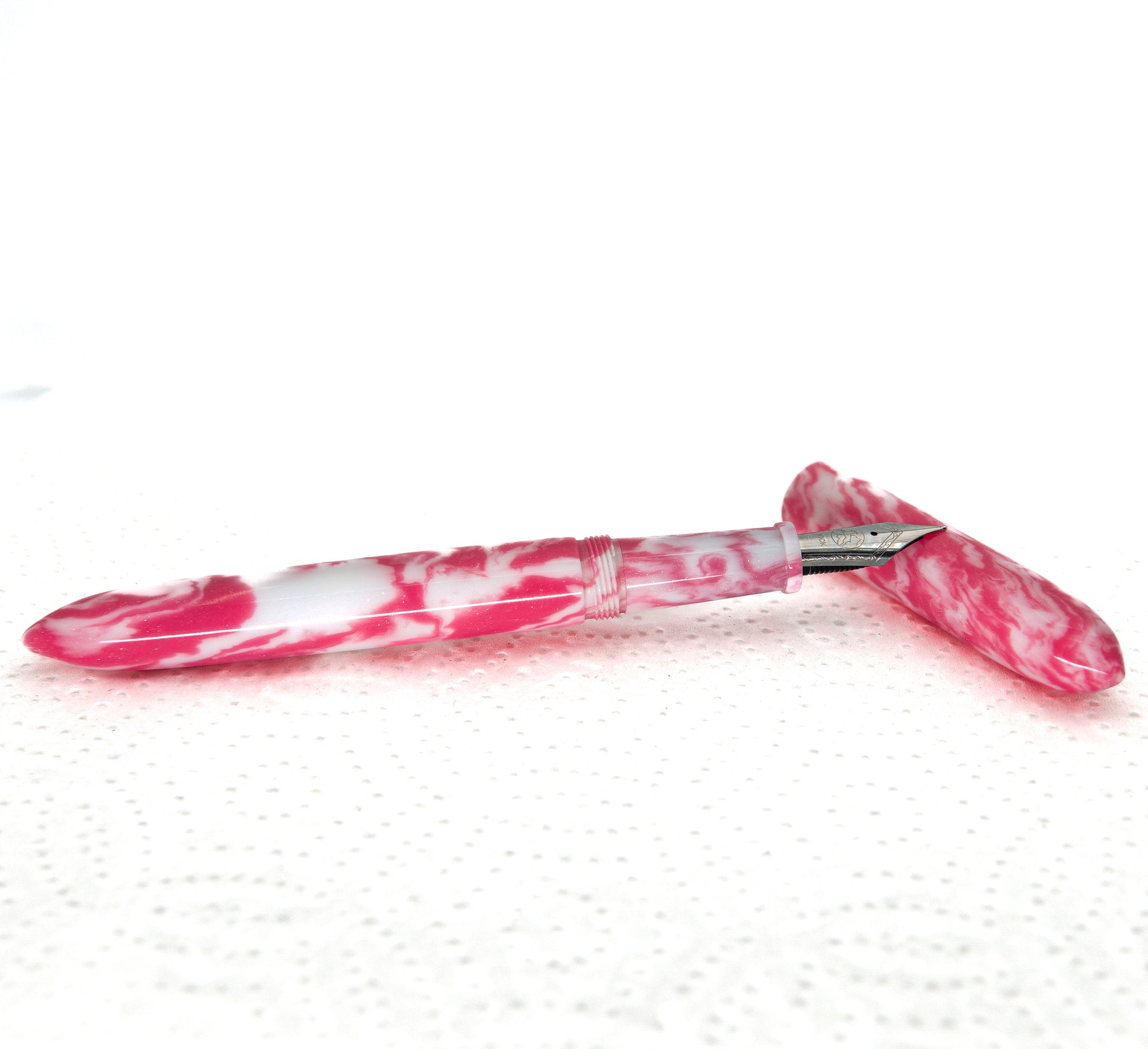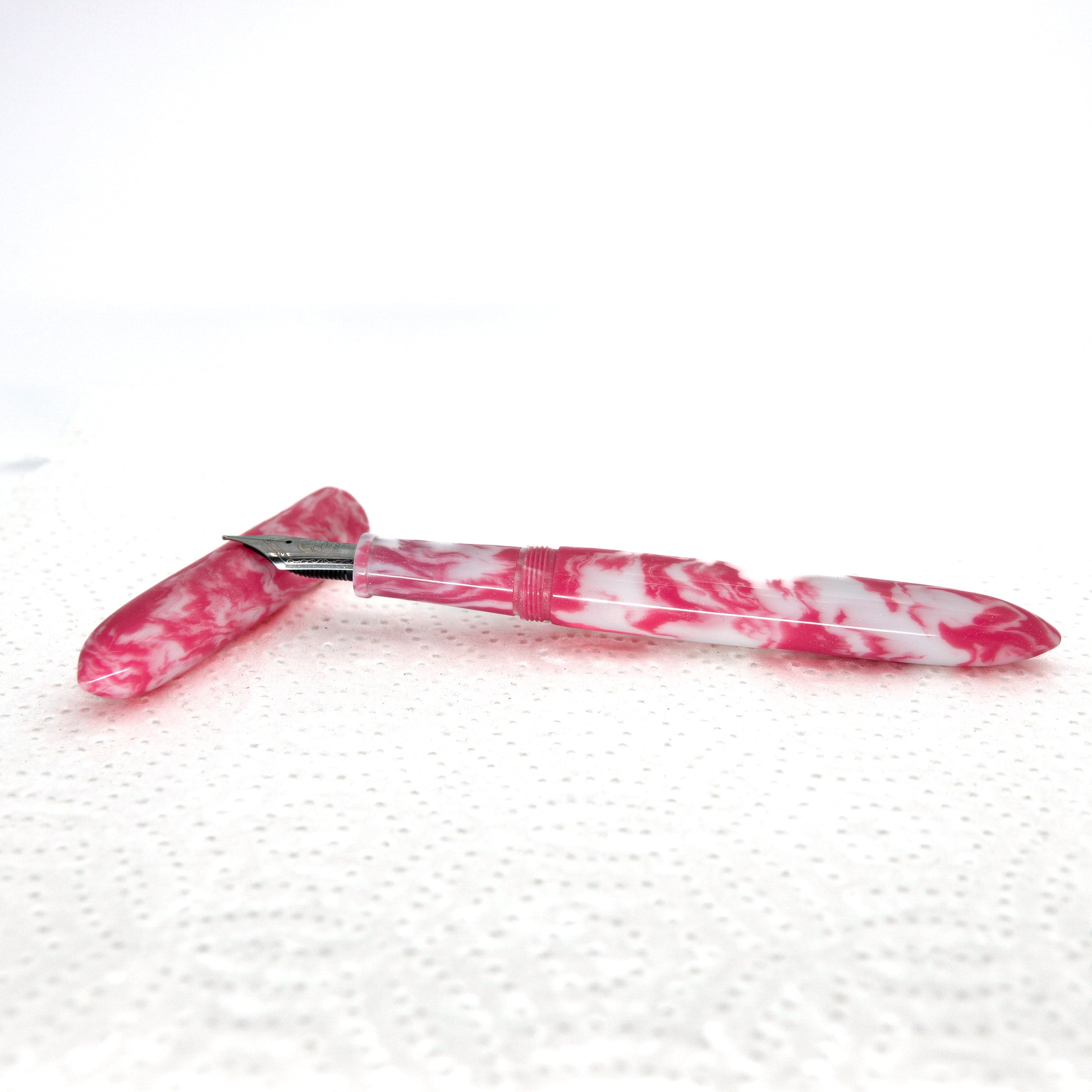 A totally unique fountain pen made with Alumilite resin, this Apple Blossom DiamonCast pen is a one of a kind, completely hand turned and polished to an ultra fine finish to show the amazing lustre achievable with this adorable material, all done by myself in my small home workshop. No pen kit used. The level of craftmanship, time involved and quality is reflected in the price. I never make two pens the same.