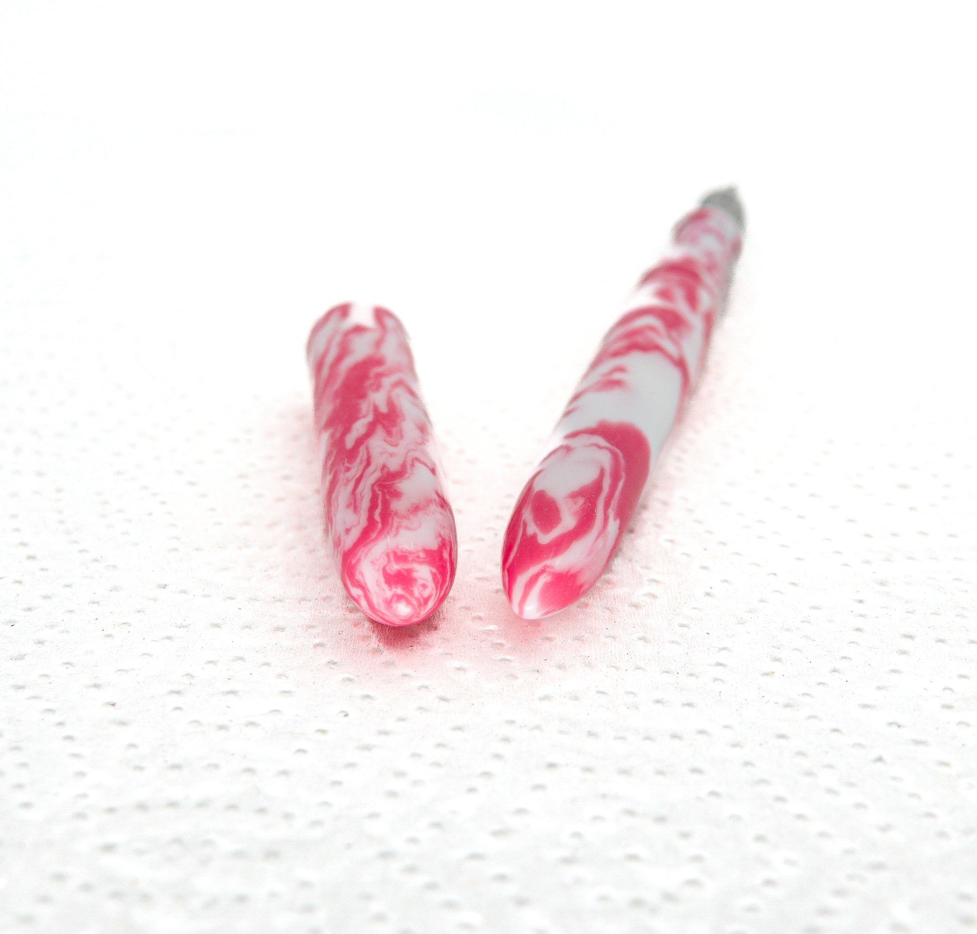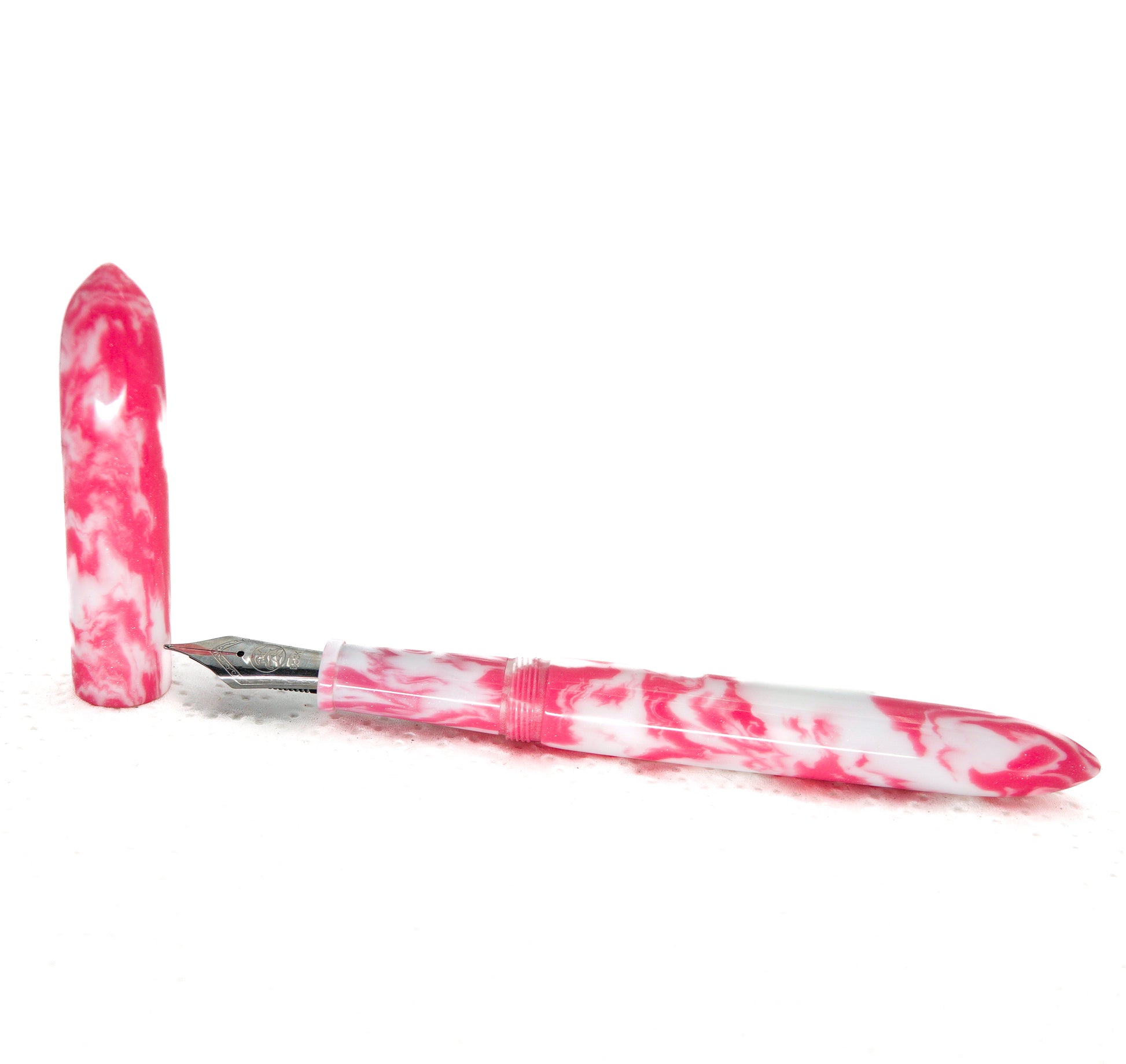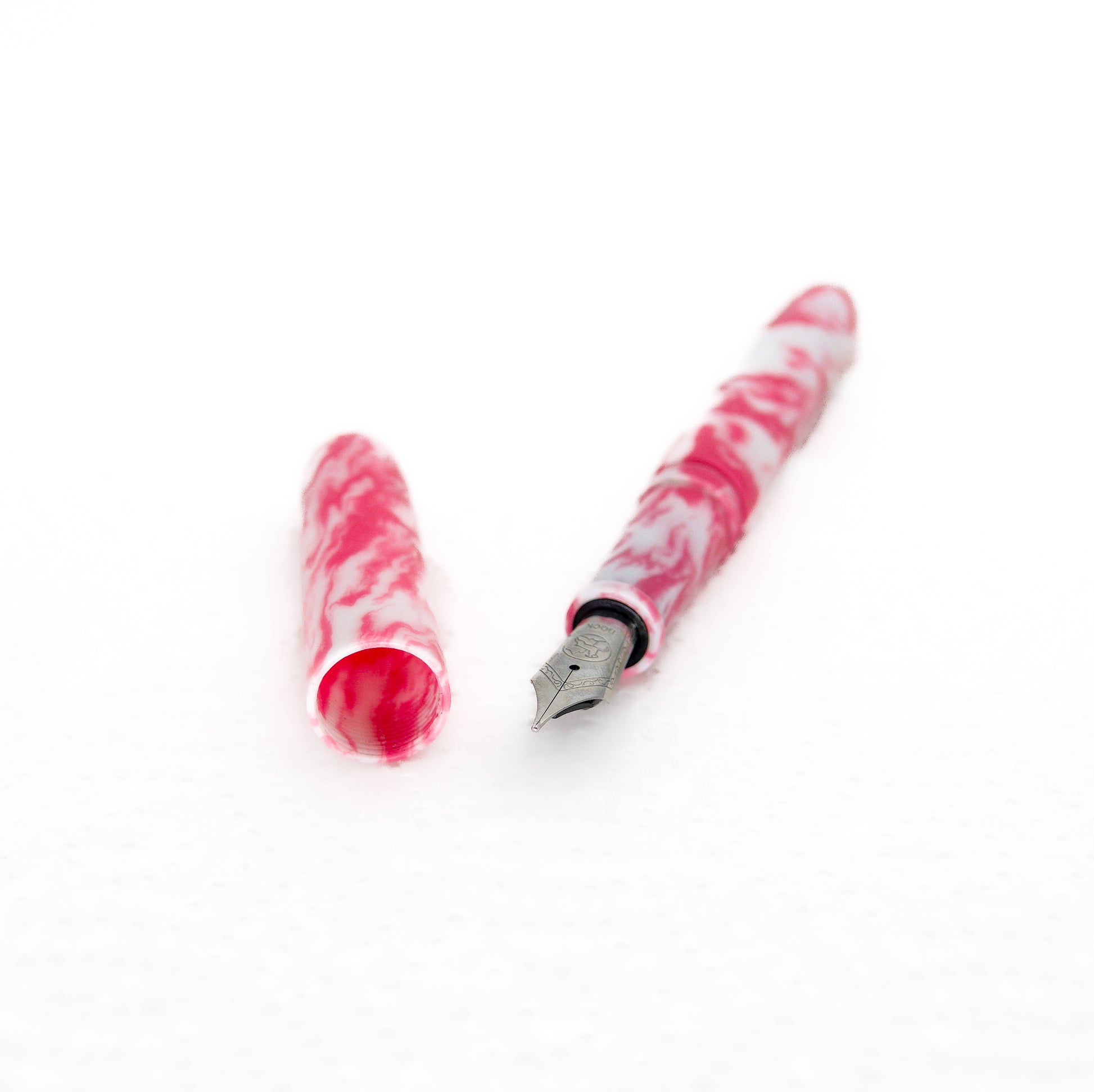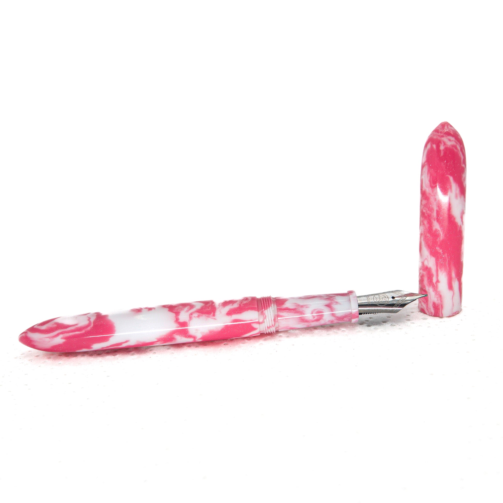 A totally unique fountain pen made with Alumilite resin, this Apple Blossom DiamonCast pen is a one of a kind, completely hand turned and polished to an ultra fine finish to show the amazing lustre achievable with this adorable material, all done by myself in my small home workshop. No pen kit used. The level of craftmanship, time involved and quality is reflected in the price. I never make two pens the same.