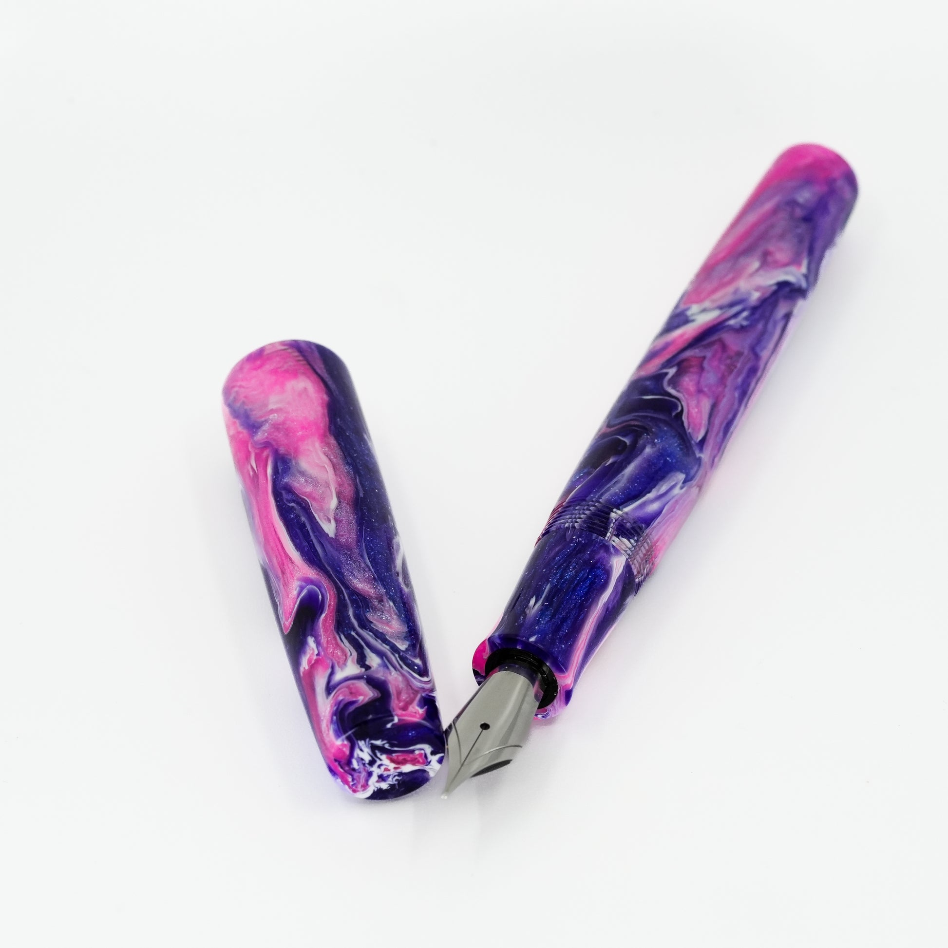 Upgrade your writing experience with the Pink Medley Harlequin Stepless 14 pen. Order now from Silver Burl Pens and enjoy the expressiveness and elegance of a fountain pen.