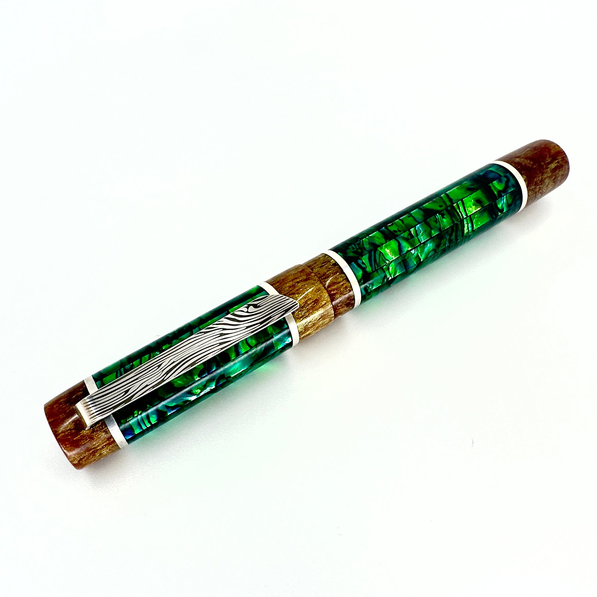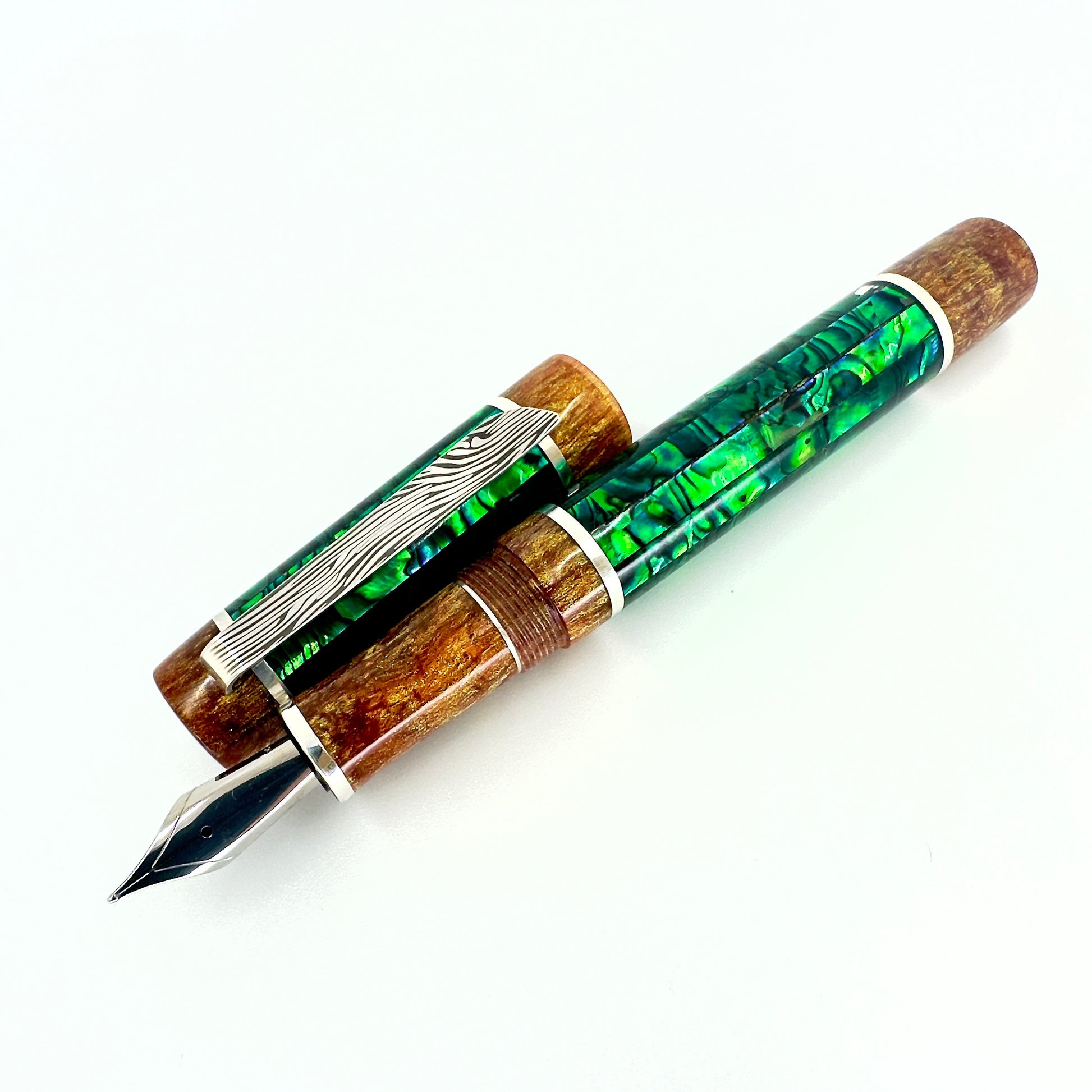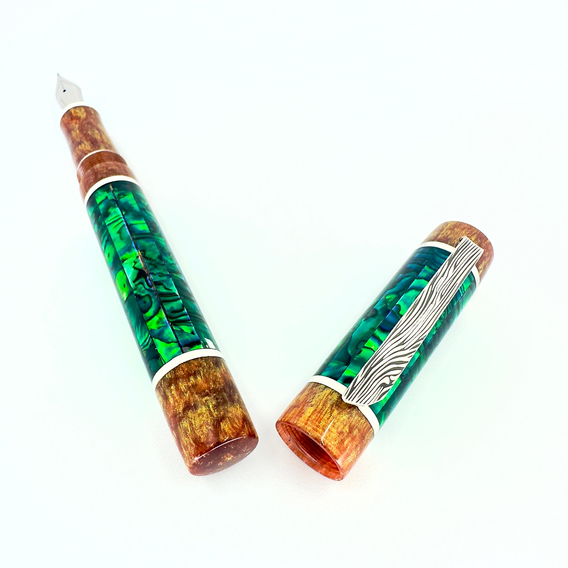 This Pen is an exquisitely handmade fountain pen crafted with meticulous care and inspired by the captivating beauty of Cornwalls St Ives Bamaluz Beach.Experience writing in a whole new way with one of my Bamaluz series of pens made with real sea shell and Argentium silver. This luxurious shell fountain pen provides a smooth, precise writing experience that makes it a pleasure to use. It features an eye-catching design that is sure to turn heads wherever you go. This pen is a unique fusion of acrylic resin and natural abalone shell, carefully created to evoke the tranquil essence of the coastal landscape. The iridescence of the abalone shell adds a touch of oceanic allure, while the acrylic resin lends a seamless blend of durability and elegance.