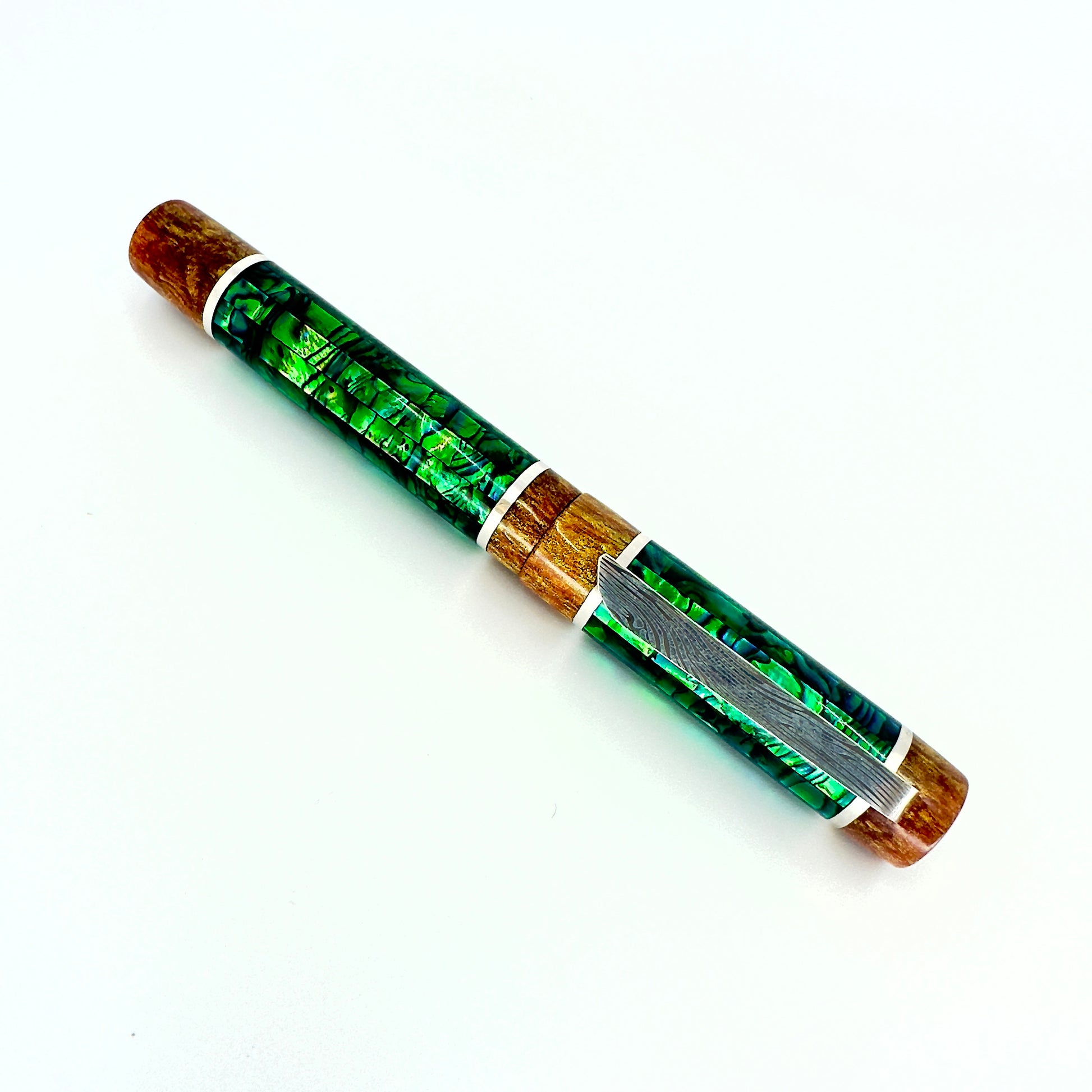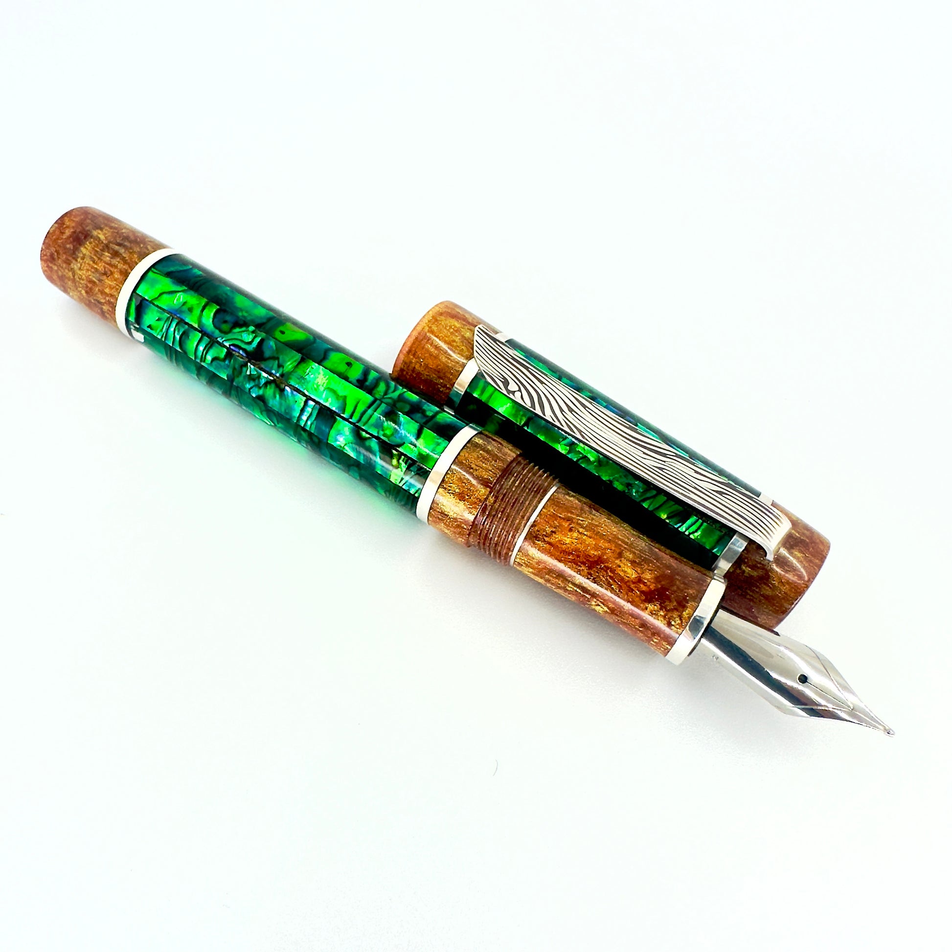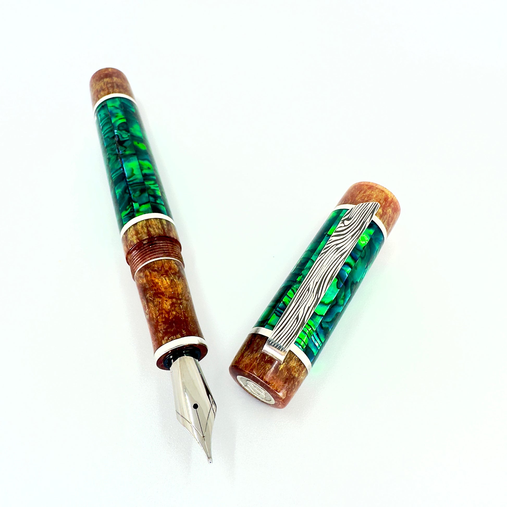 This Pen is an exquisitely handmade fountain pen crafted with meticulous care and inspired by the captivating beauty of Cornwalls St Ives Bamaluz Beach.Experience writing in a whole new way with one of my Bamaluz series of pens made with real sea shell and Argentium silver. This luxurious shell fountain pen provides a smooth, precise writing experience that makes it a pleasure to use. It features an eye-catching design that is sure to turn heads wherever you go. This pen is a unique fusion of acrylic resin and natural abalone shell, carefully created to evoke the tranquil essence of the coastal landscape. The iridescence of the abalone shell adds a touch of oceanic allure, while the acrylic resin lends a seamless blend of durability and elegance.