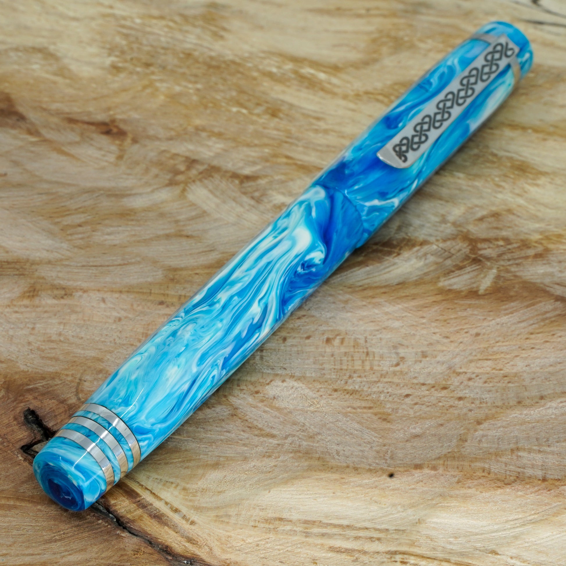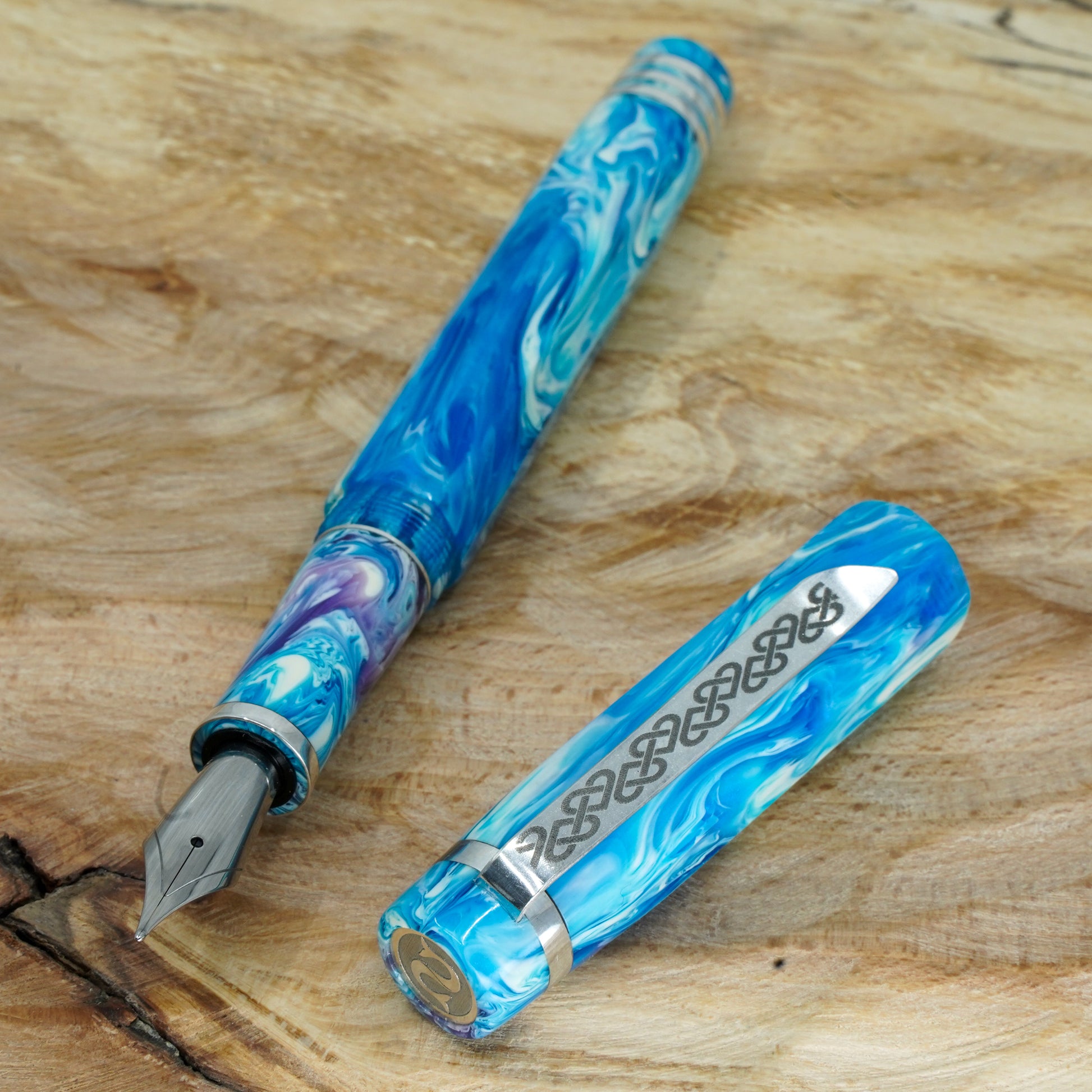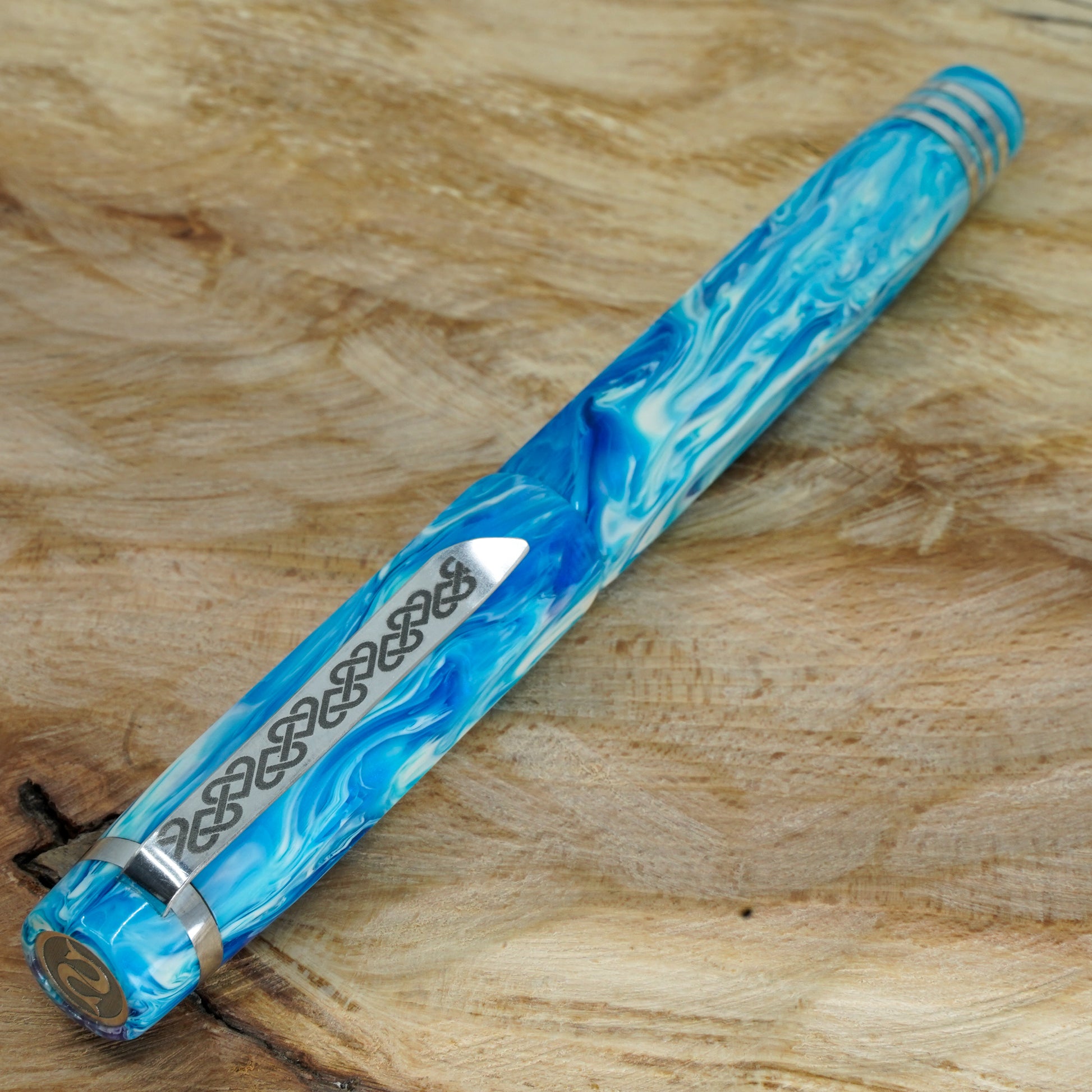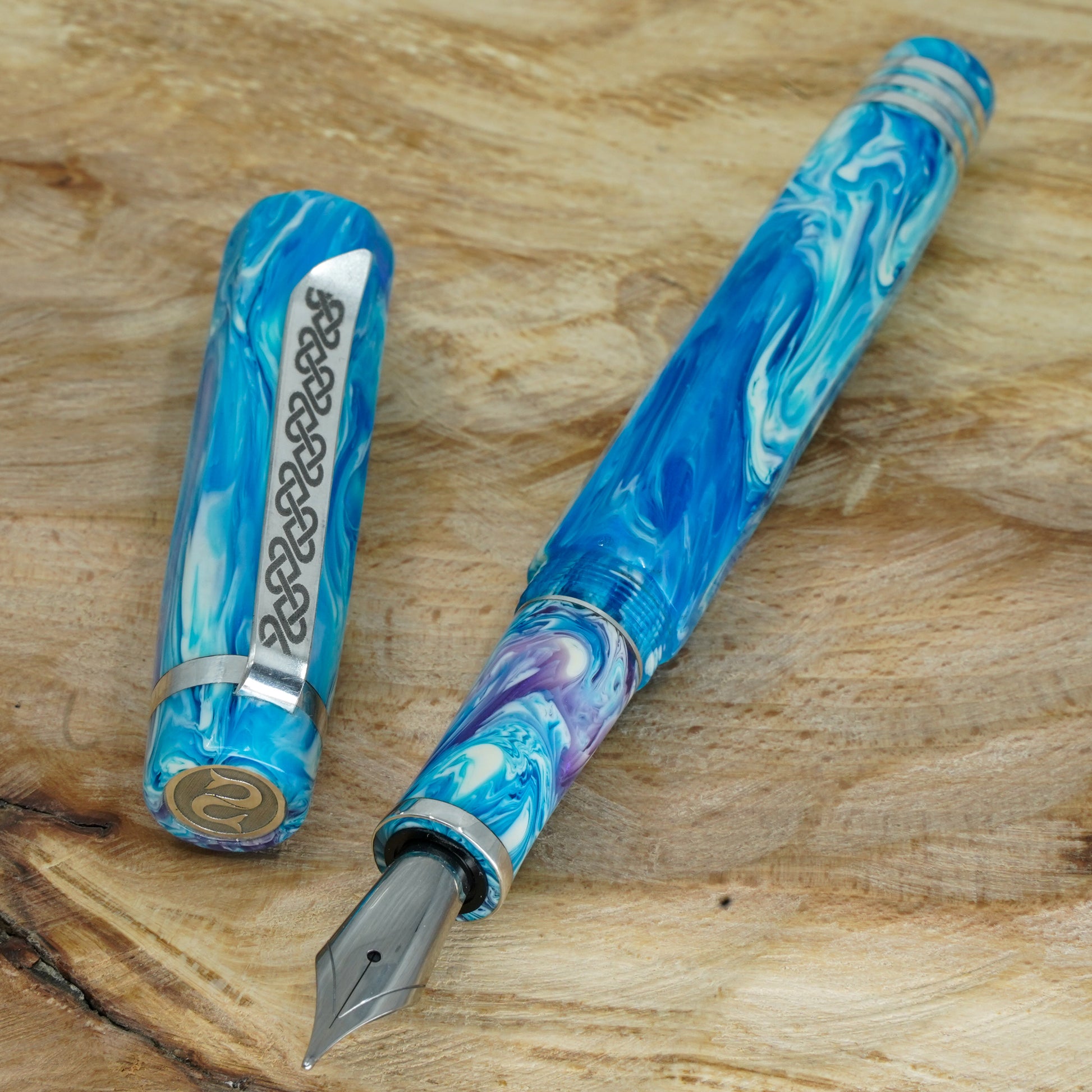 Bohemian Rose Koi Nonagon is a handcrafted pen fitted with a polished steel Jowo nib size 6. It measures 145m/m long including cap and 135m/m nib to body end, with a body diameter of 15m/m and a cap diameter of 16m/m. It comes with a Schmidt K5 ink converter, and other nib options are available upon request. The silver used is Argentium .940, which is whiter and brighter than traditional .925 sterling and is more tarnish resistant. Argentium is also hypoallergenic and has antibacterial properties, and does not contain nickel.