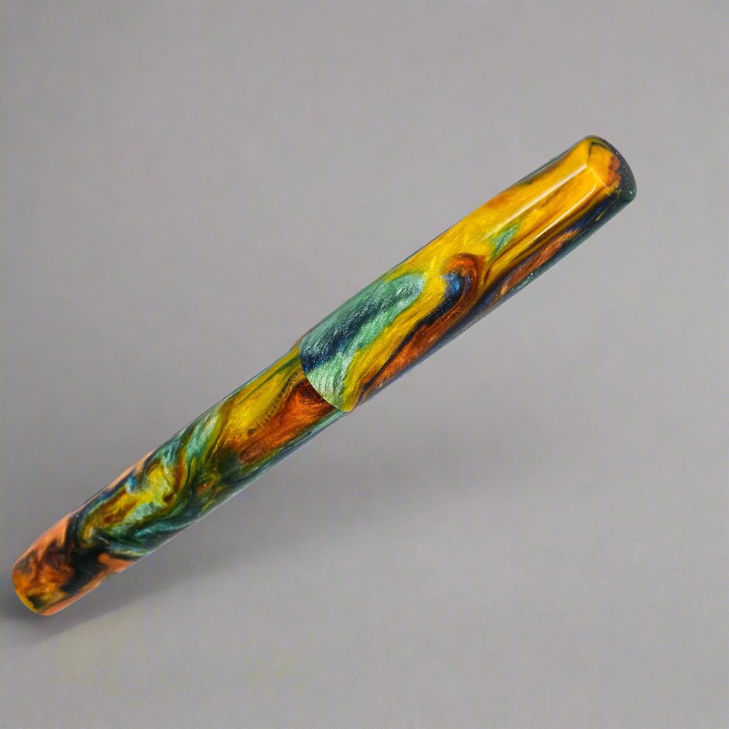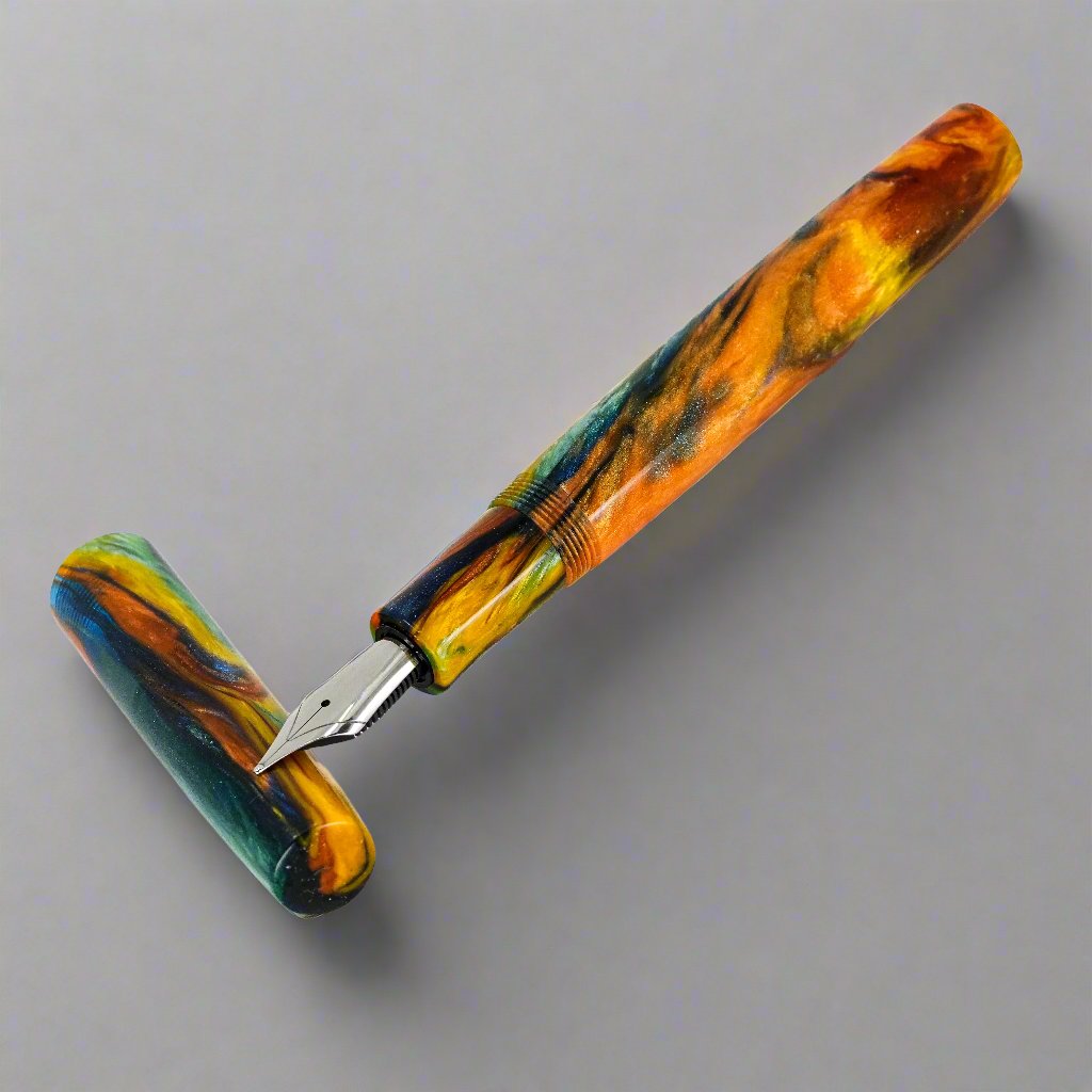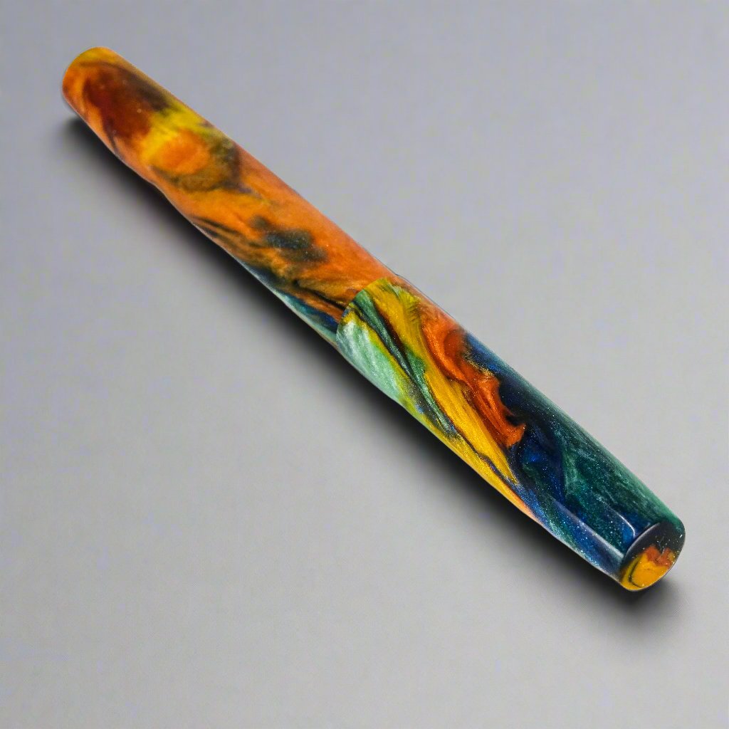 Presenting the stunning Stepless 14mm pen from Silver Burl Pens. Part of the Simply Elegant series, this pen is made for writers who appreciate both comfort and style. Its sleek design is perfect for carrying in a pocket or bag, or displaying on a desk. Each pen is carefully crafted to the highest standards and includes a size six Jowo nib and Schmidt K5 ink converter. The polished steel nib is offered in different tip sizes, and other nib options are available by contacting john@silverburlpens.com.
