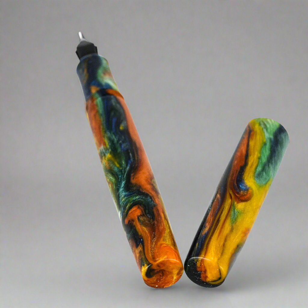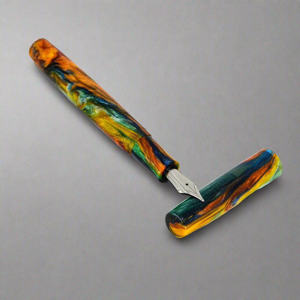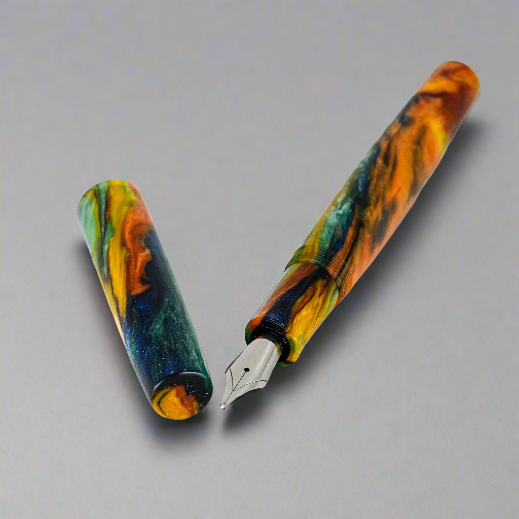 Presenting the stunning Stepless 14mm pen from Silver Burl Pens. Part of the Simply Elegant series, this pen is made for writers who appreciate both comfort and style. Its sleek design is perfect for carrying in a pocket or bag, or displaying on a desk. Each pen is carefully crafted to the highest standards and includes a size six Jowo nib and Schmidt K5 ink converter. The polished steel nib is offered in different tip sizes, and other nib options are available by contacting john@silverburlpens.com.
