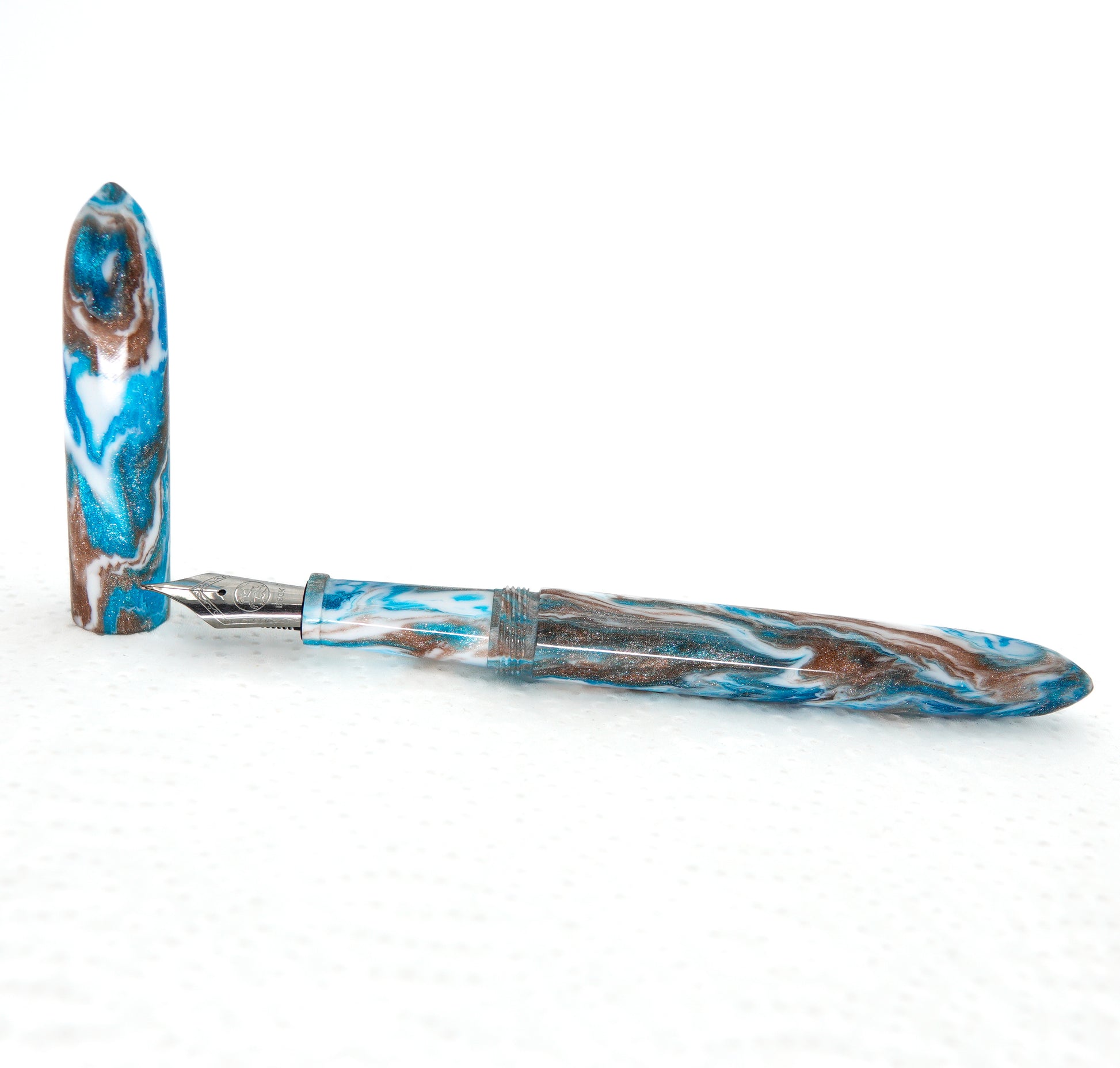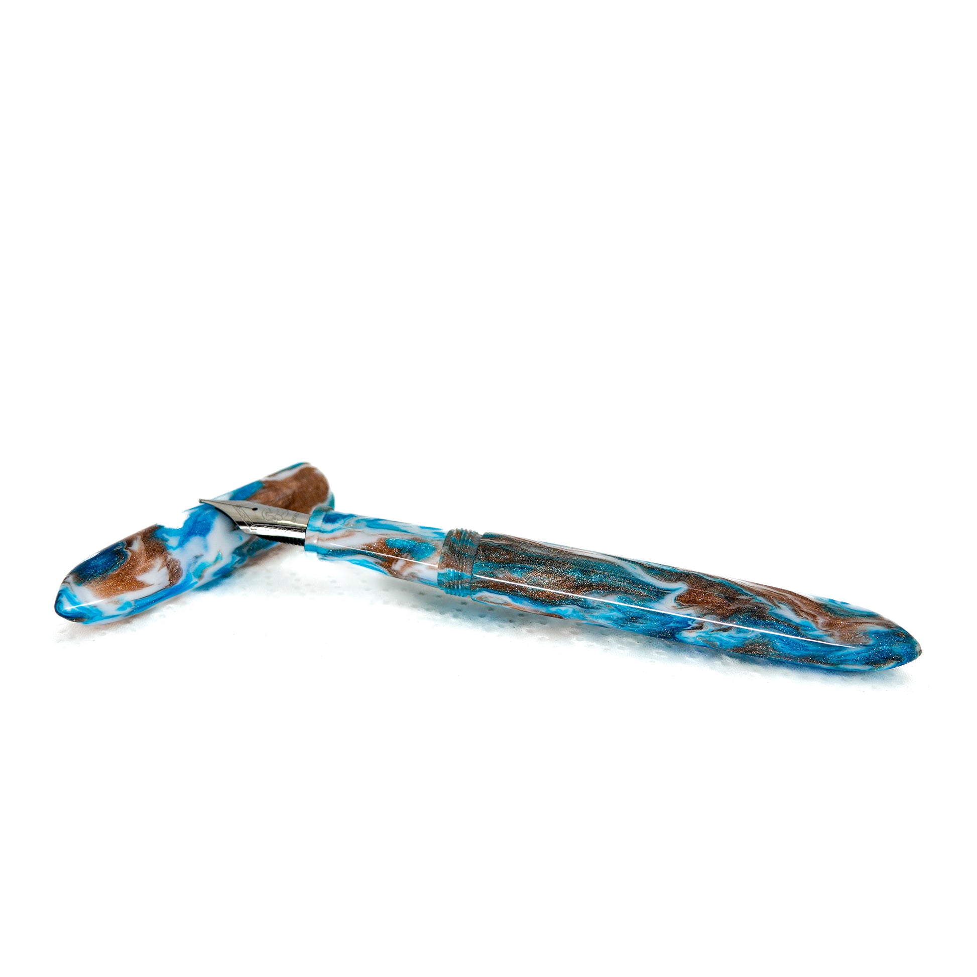 A totally unique fountain pen made with Alumilite resin, this pen is a one of a kind, completely hand turned and polished to an ultra fine finish to show the amazing lustre achievable with this adorable material, all done by myself in my small home workshop. No pen kit used. The level of craftmanship, time involved and quality is reflected in the price. I never make two pens the same.