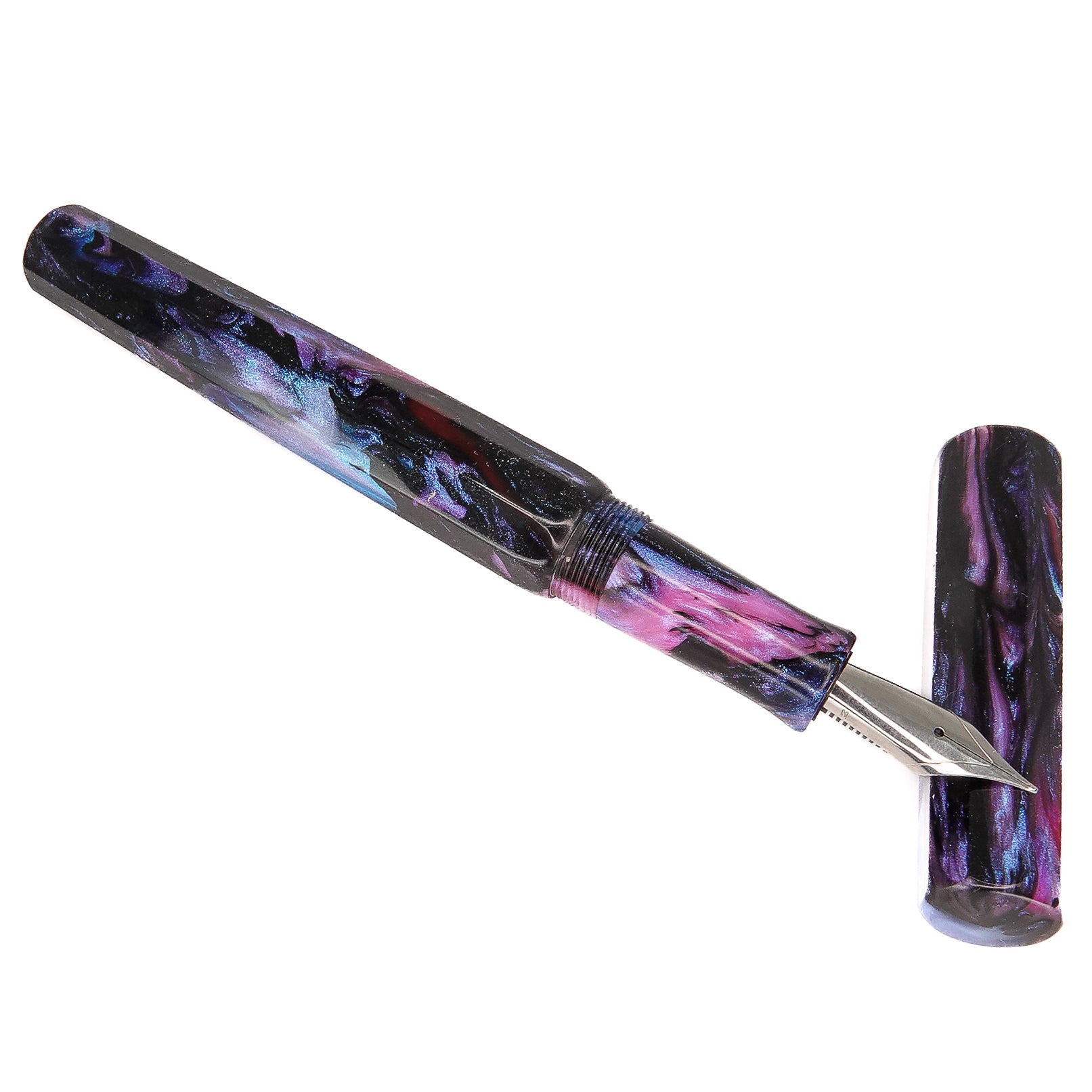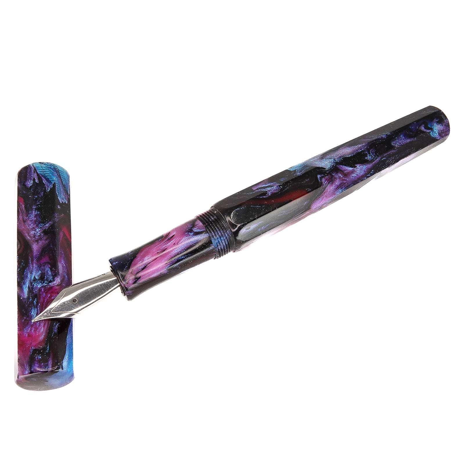 Our Cotton Candy Abalone pen is a true work of art, with all the silver work done by hand. Each pen is unique and adds a touch of elegance to any writing experience. Contact john@silverburlpens.com for alternative nib options and prices, and we will be happy to assist you in finding the perfect fit for your writing style.