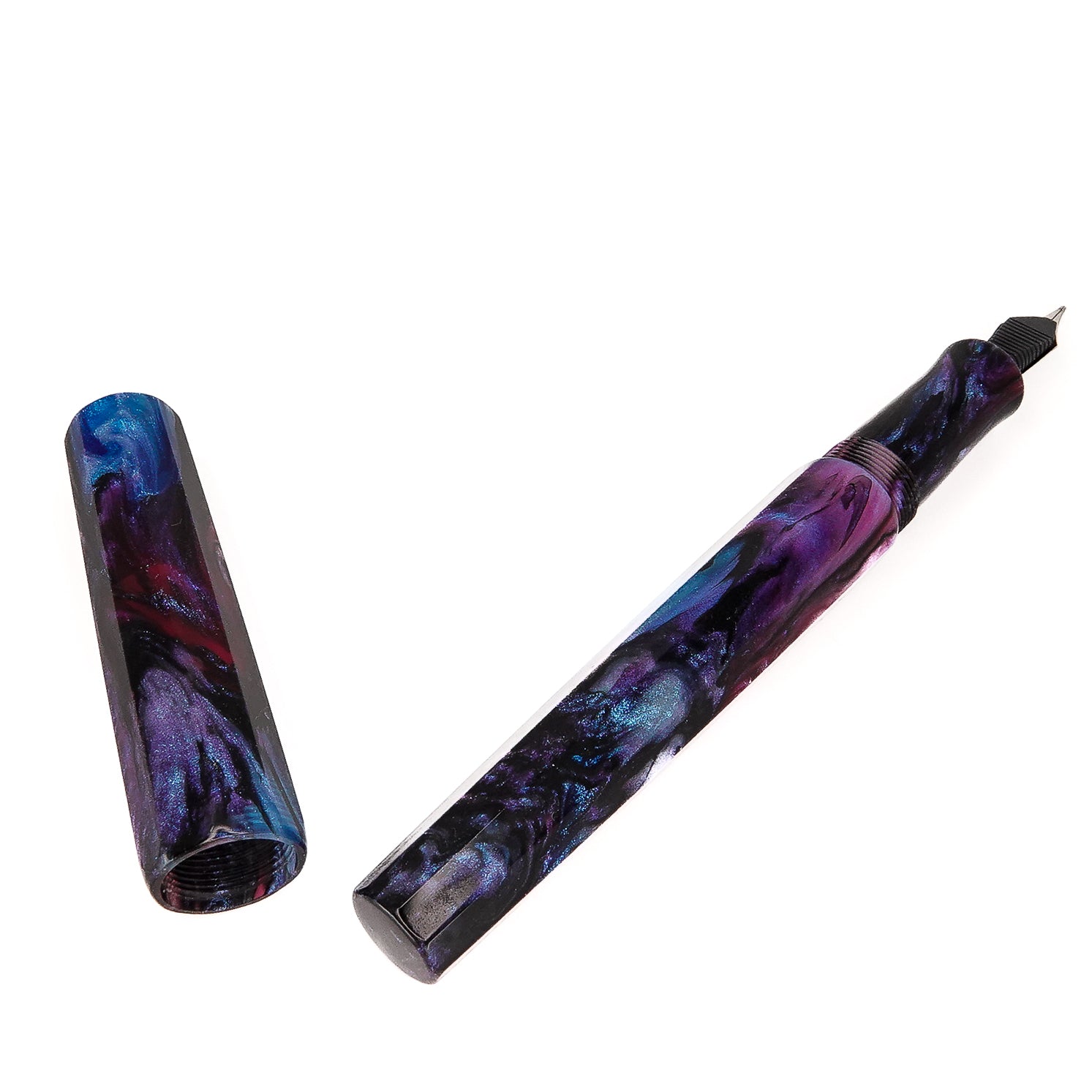 Indulge in the sweet and delicate beauty of our Cotton Candy Abalone pen. This exquisite writing instrument features an Inca Rose Hexagon design with complimentary finials, all handcrafted with precision and care. The pen is fitted with a polished steel Jowo nib size 6, providing a smooth and effortless writing experience.