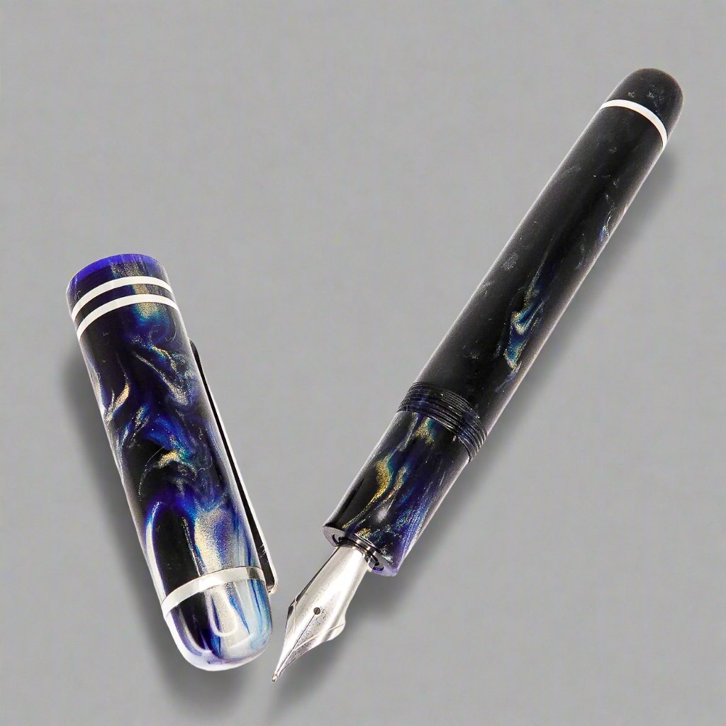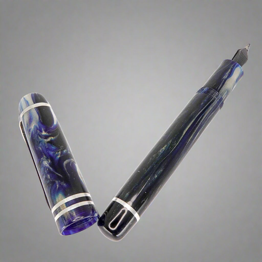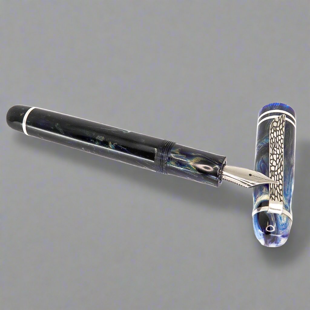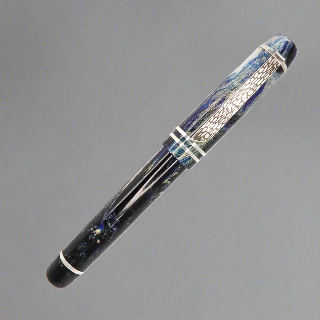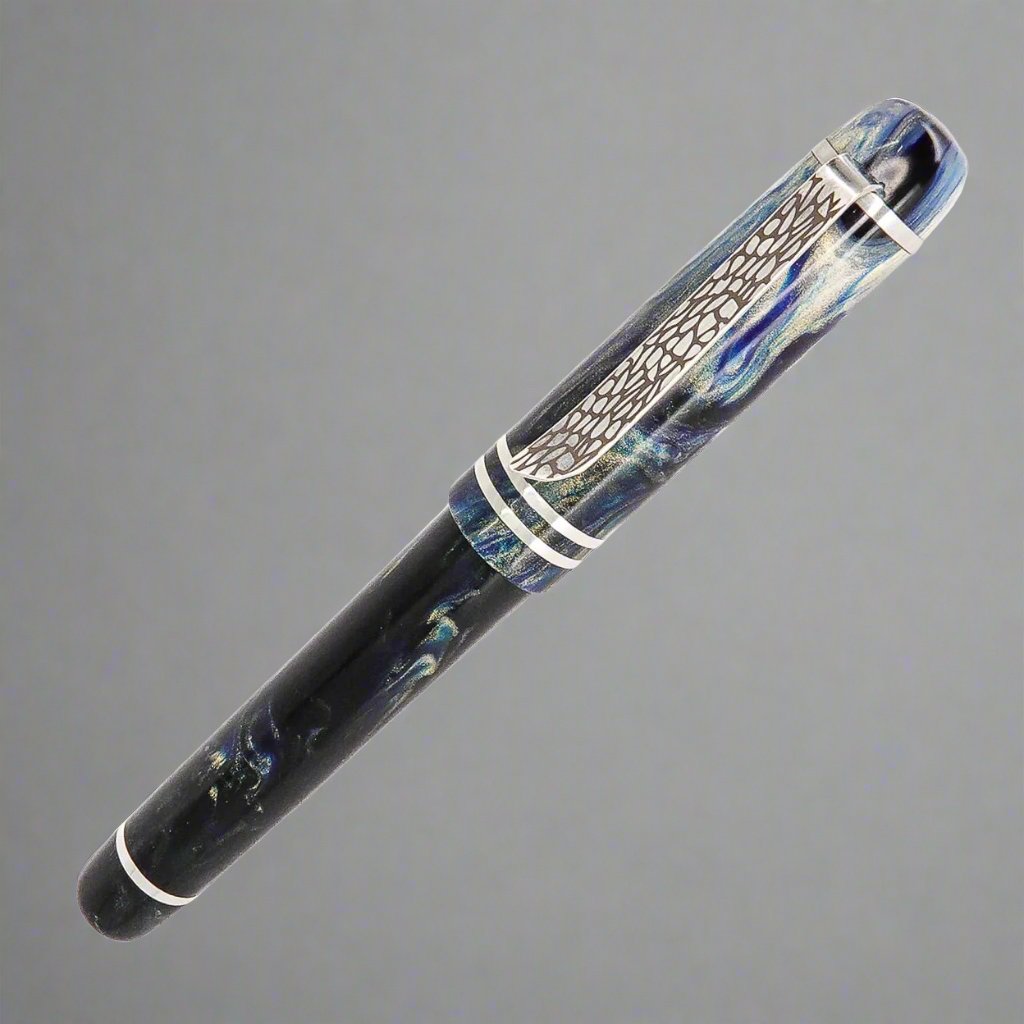 Indulge in the exquisite handcrafted pen from Silverburlpens. Featuring a polished steel Jowo nib size 6 and a Schmidt K5 ink converter, this pen is truly a masterpiece. Want a custom nib size? We've got you covered. At approximately 145m/m long including the cap, with a body diameter of 15m/m and a cap diameter of 16m/m, this pen boasts of elegance and precision. Made with Argentium .940 silver, known for its luminous hue and superior durability, this pen is a cut above the rest. Its hypoallergenic, antibacterial properties make it a top choice for discerning buyers. Get ready to elevate your writing experience with the premium Storm Force Sea pen, where style meets reliability. Available in a range of nib sizes to suit your writing needs.