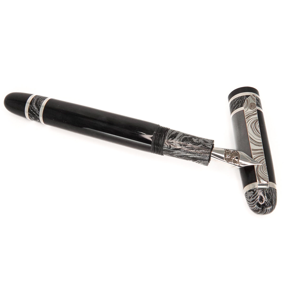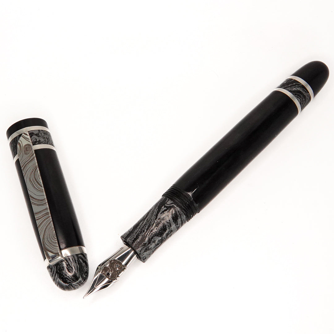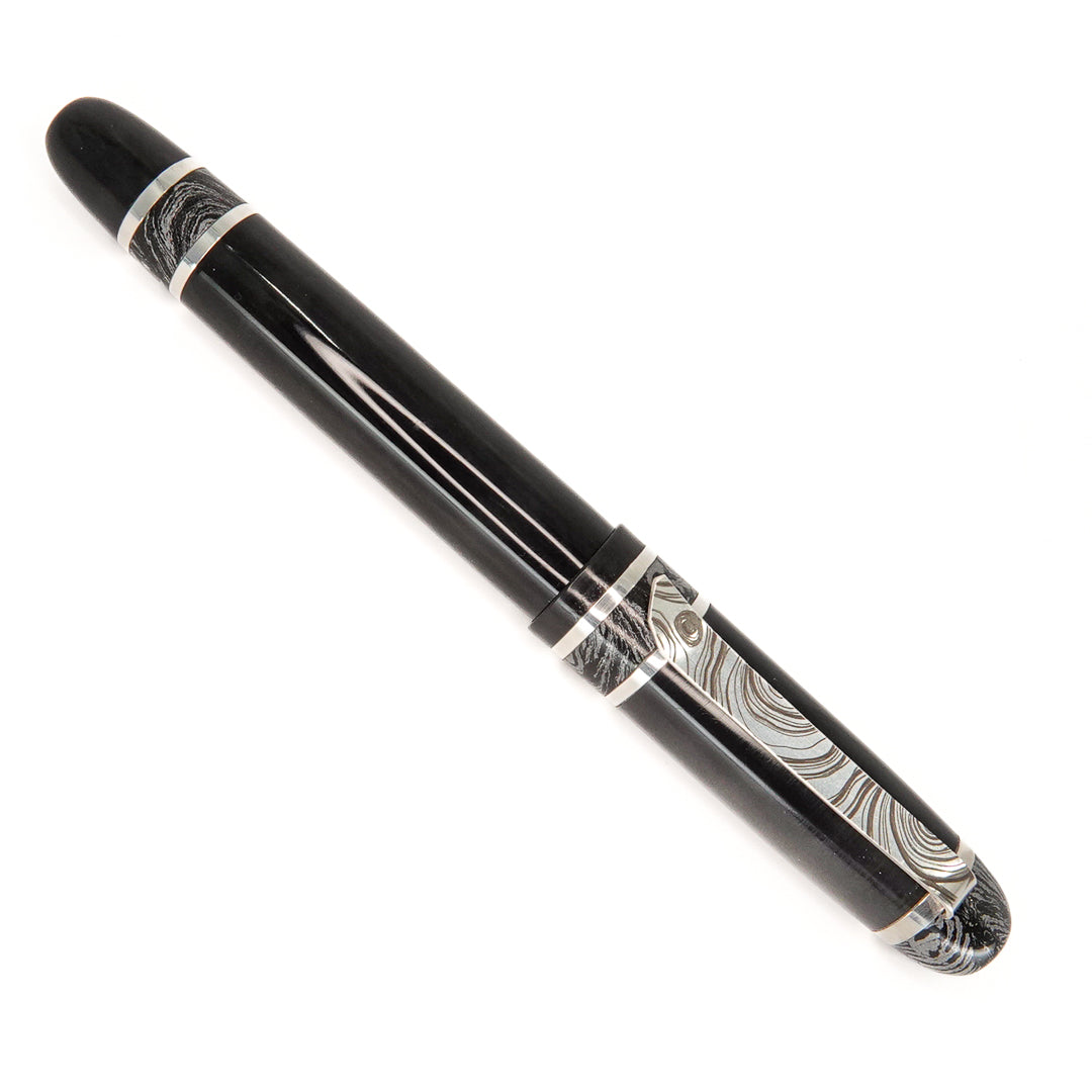 Experience the beauty and craftsmanship of our totally handcrafted Damascus Metal pen. Each pen is fitted with a polished steel Jowo nib size 6 and Schmidt K5 ink converter, with the option to request other nib sizes. The pen measures approximately 150m/m long including the cap, 130m/m from nib to body end, and has a body diameter of 15.2m/m with a 14m/m thread. The cap diameter is 16.2m/m.