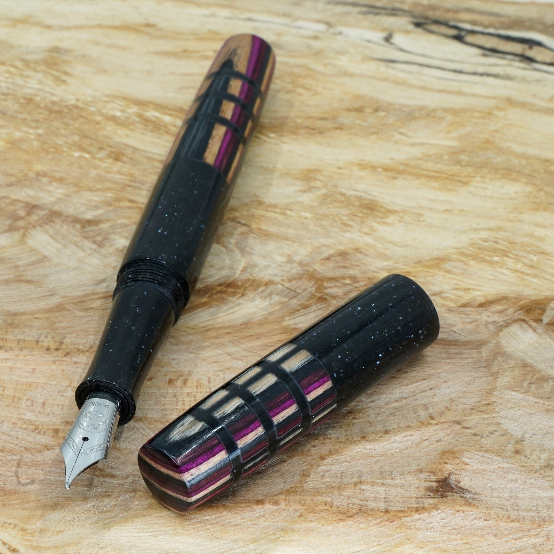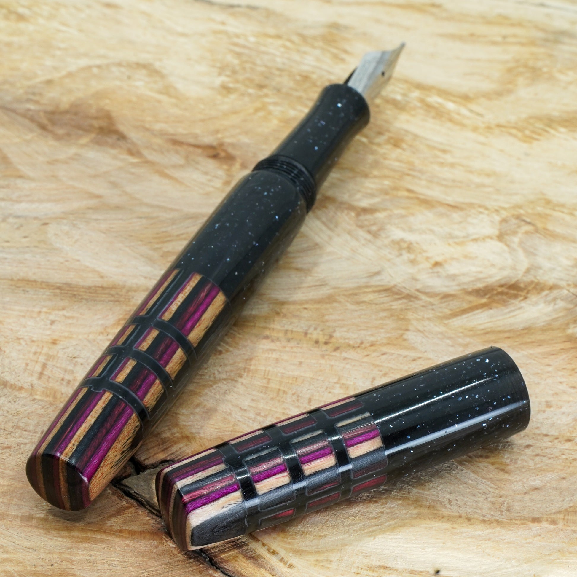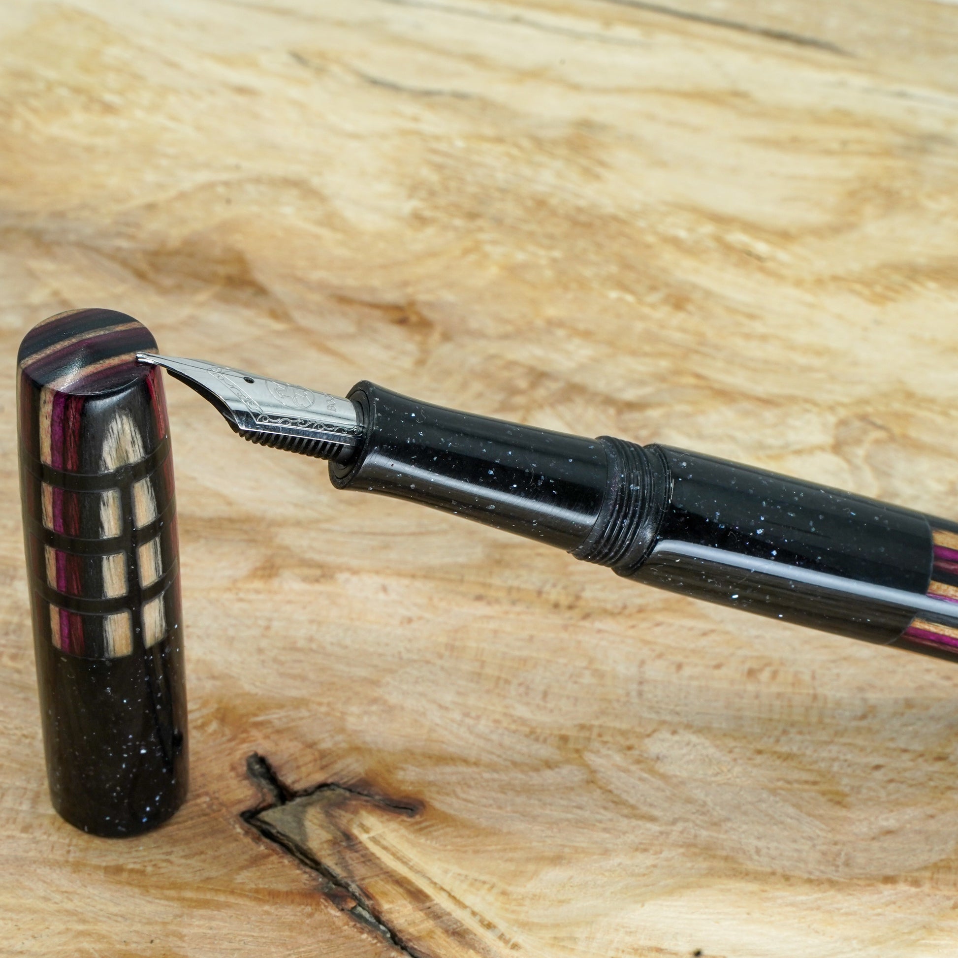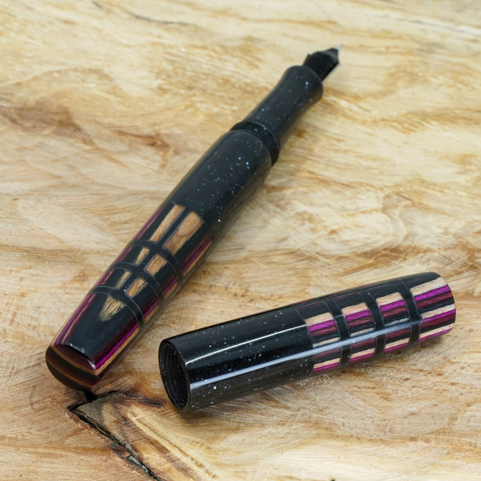 Darkest night, this beautiful wood offers a completely unique and impressive appearance, each pen incorporates the woods natural identity and features with no two ever the same. This pen is one of a kind, completely hand turned, including the grip / nib section and triple start thread, all done by myself in my workshop. No pen kit has been used. The level of craftmanship, time involved and quality is reflected in the price. I never make two pens the same.
