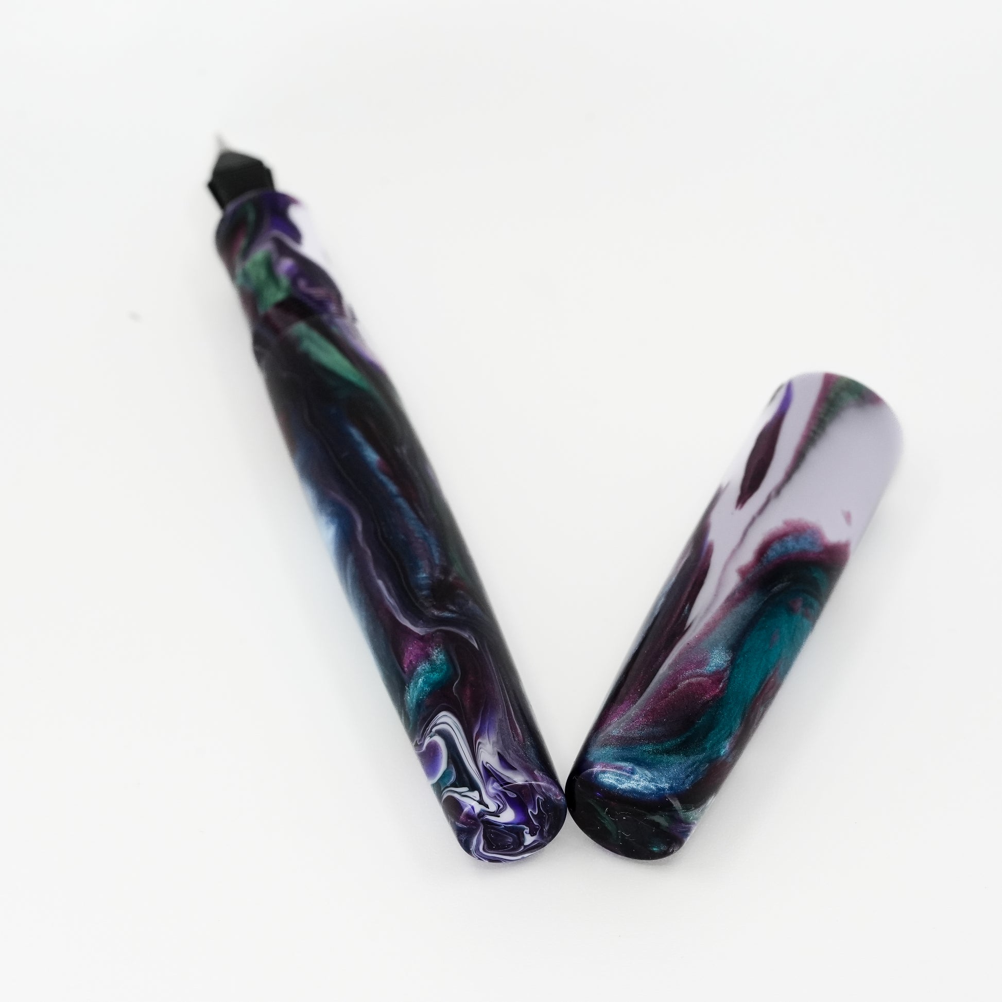 IntroducingEnglish Garden Stepless 14mm pen from Silver Burl Pens. This pen is part of the Simply Elegant series, designed for the discerning writer who values both comfort and style. With its sleek design, this pen is perfect for slipping into a pocket or bag, or for displaying on a desk. Each pen is meticulously crafted to the highest standard and comes with a size six Jowo nib and Schmidt K5 ink converter. The polished steel nib is available in various tip sizes, and alternative nibs can be requested by contacting john@silverburlpens.com.