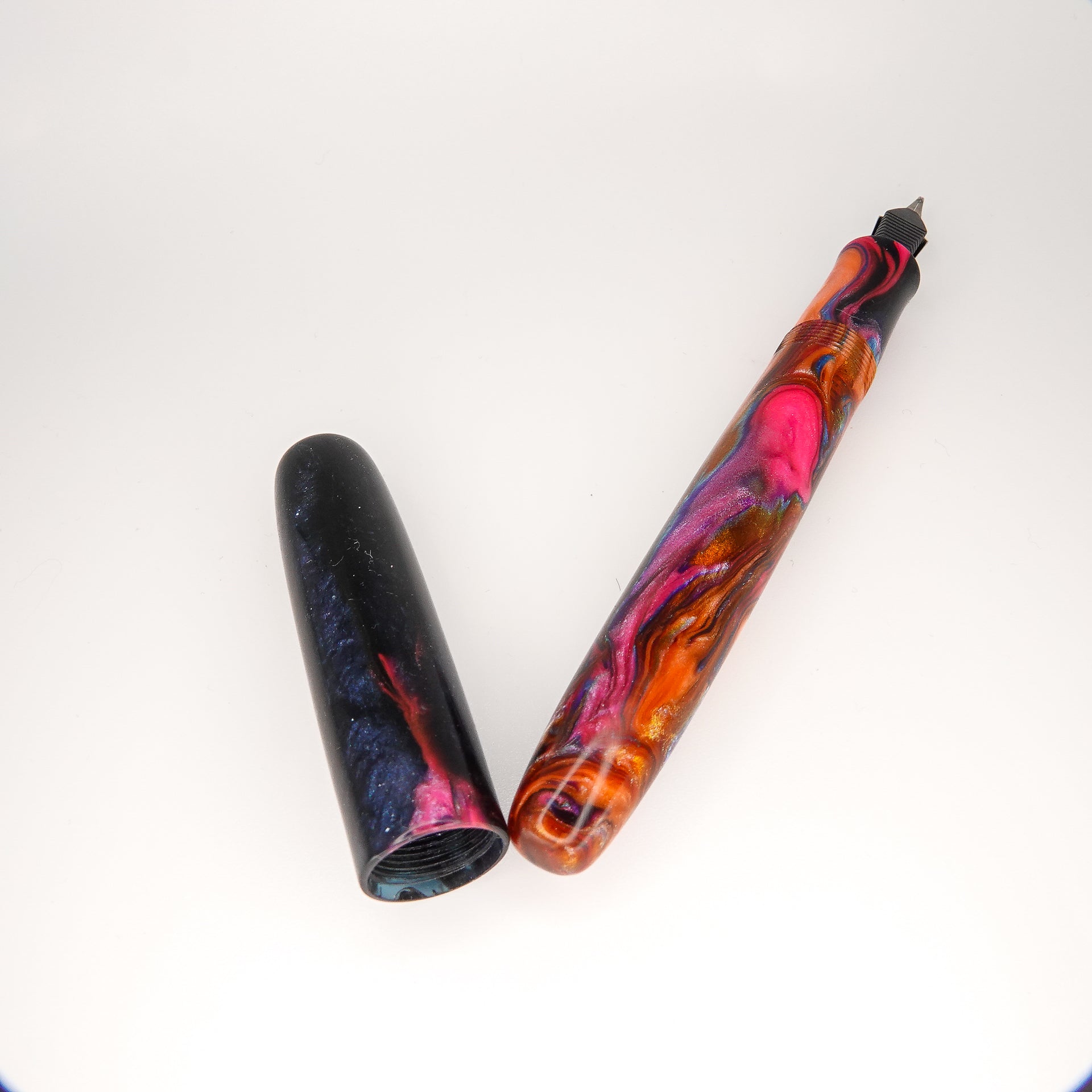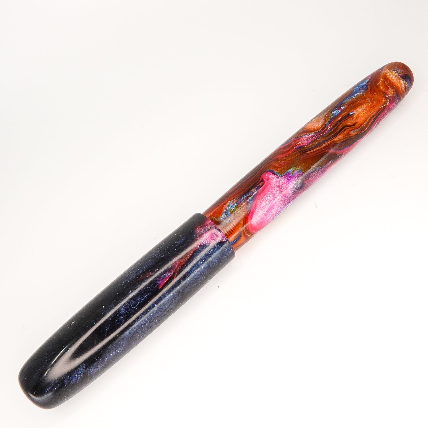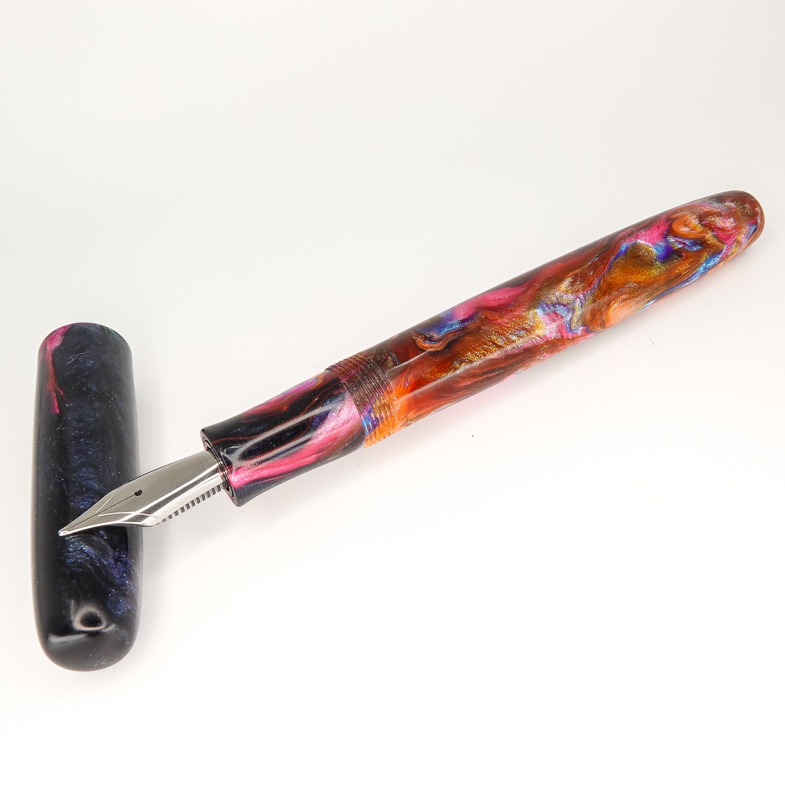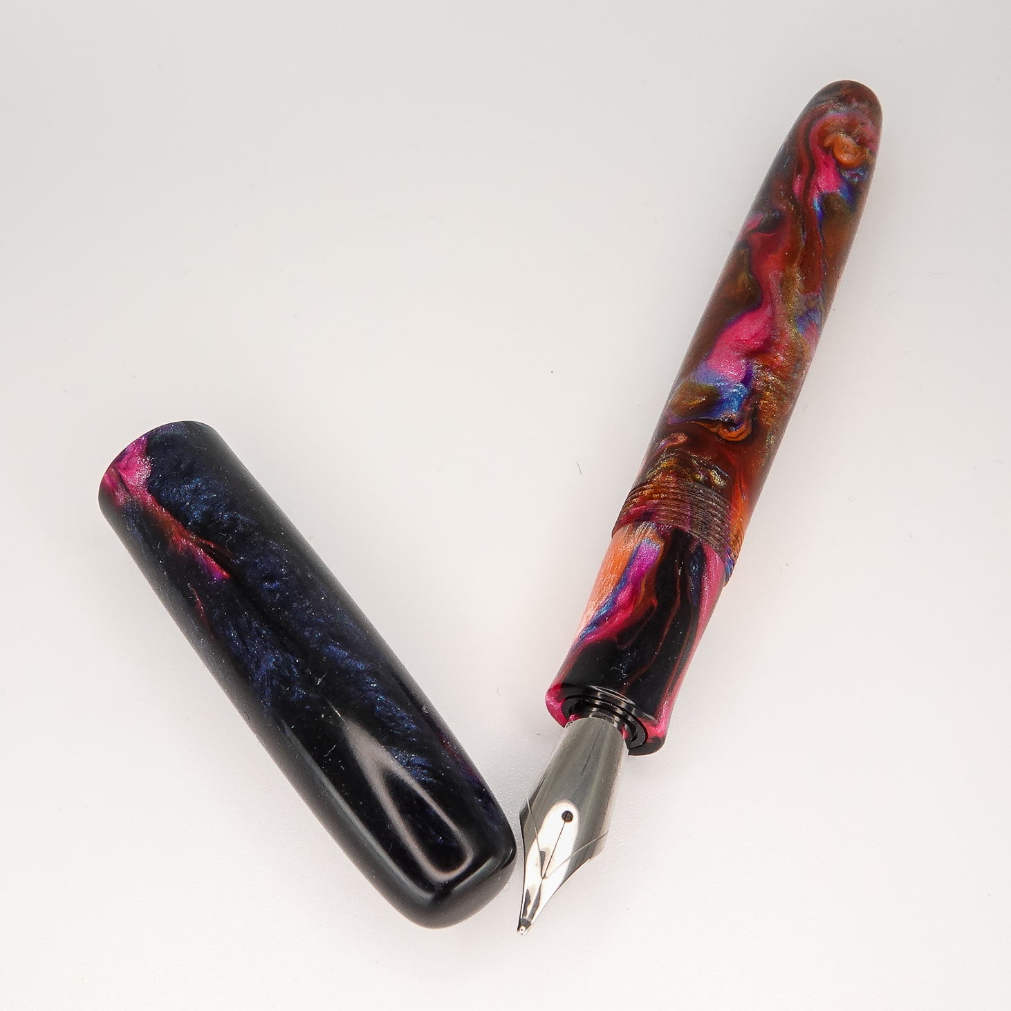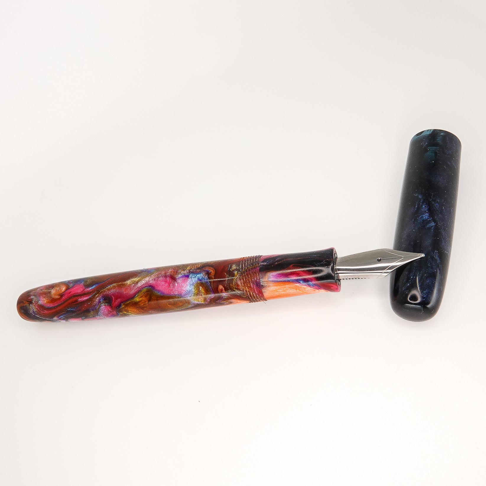 First Light is a stepless 14mm.My Simply Elegant series of pens were created to satisfy the discerning writer with a no frills pen that is not only comfortable in the hand but is also easy to slip into a pocket or bag but is equally at home sat on a desk, this range of pens come in various shapes and sizes all finished to a very high standard this, fitted with a size six Jowo nib and Schmidt K5 ink converter. Comes standard with a polished steel nib in the tip size of your choosing. Other nibs are available; please contact john@silverburlpens.com to discuss alternatives and prices. I`ll be pleased to offer advice.