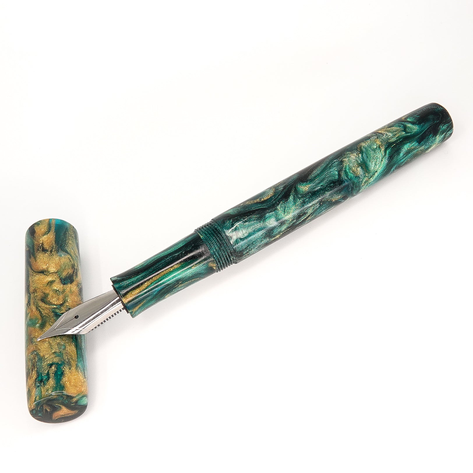 My Simply Elegant series of pens were created to satisfy the discerning writer with a no frills pen that is not only comfortable in the hand but is also easy to slip into a pocket or bag but is equally at home sat on a desk, this range of pens come in various shapes and sizes all finished to a very high standard this Golden Shine is fitted with a size six Jowo nib and Schmidt K5 ink converter. Comes standard with a polished steel nib in the tip size of your choosing. Other nibs are available; please contact john@silverburlpens.com to discuss alternatives and prices. I`ll be pleased to offer advice.