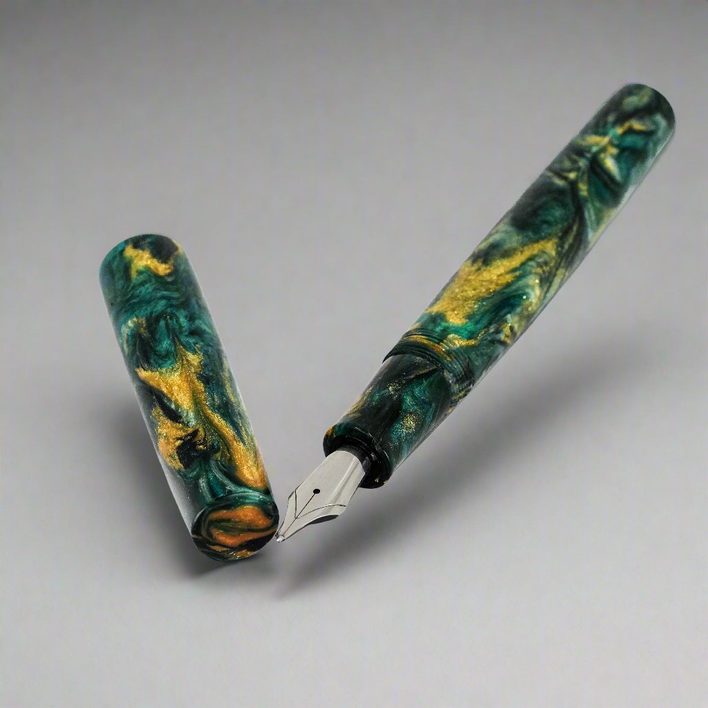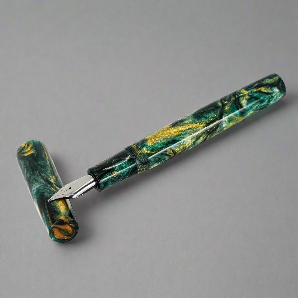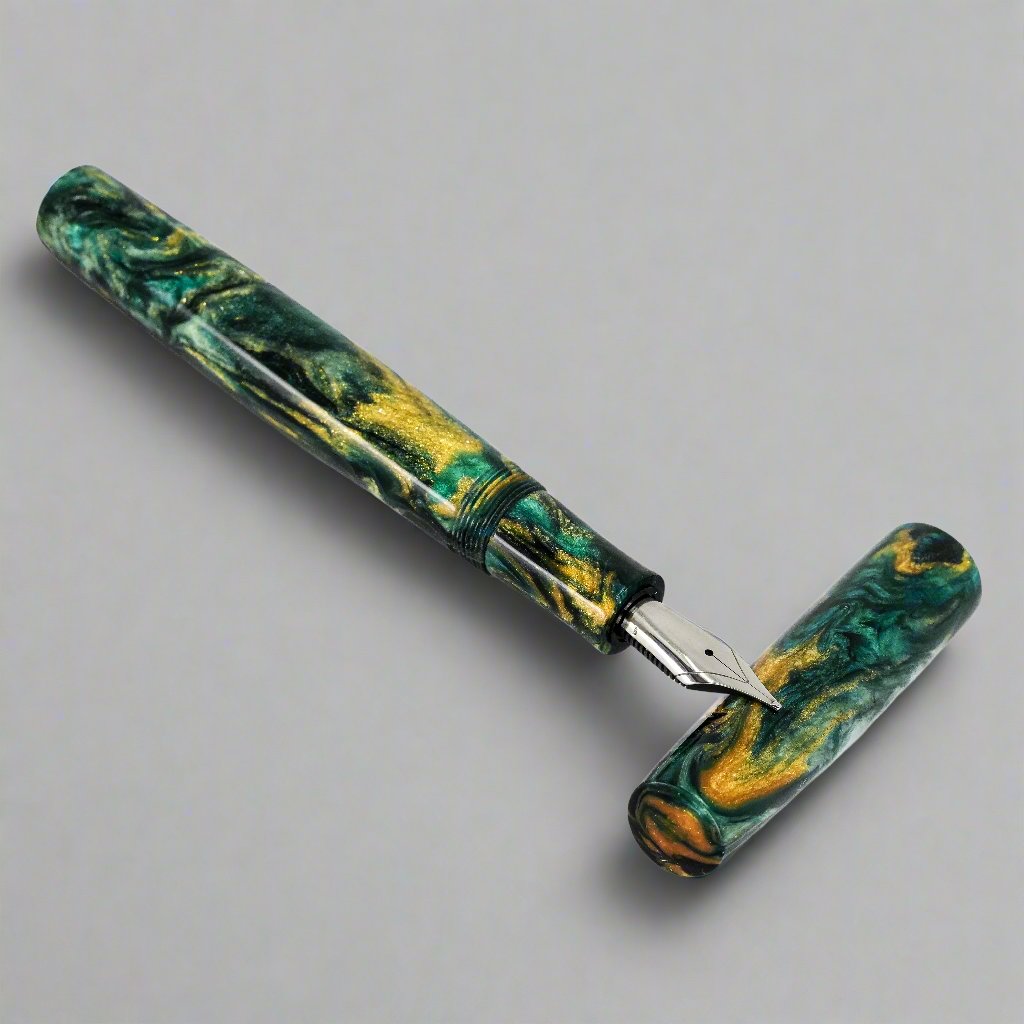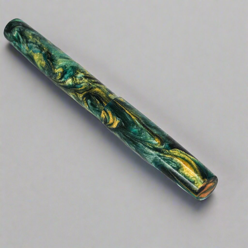 Presenting the stunning Stepless 14mm pen from Silver Burl Pens. Part of the Simply Elegant series, this pen is made for writers who appreciate both comfort and style. Its sleek design is perfect for carrying in a pocket or bag, or displaying on a desk. Each pen is carefully crafted to the highest standards and includes a size six Jowo nib and Schmidt K5 ink converter. The polished steel nib is offered in different tip sizes, and other nib options are available by contacting john@silverburlpens.com.