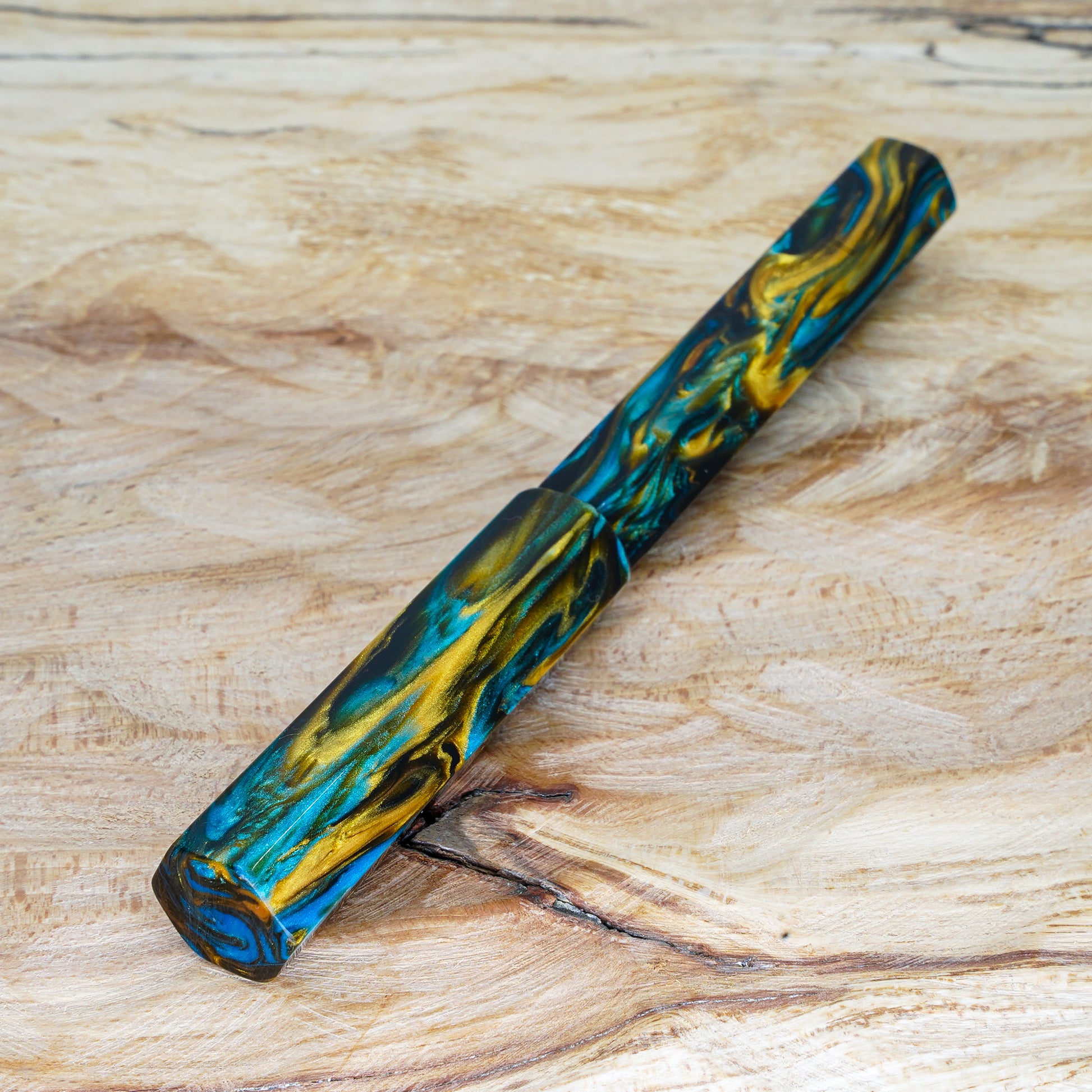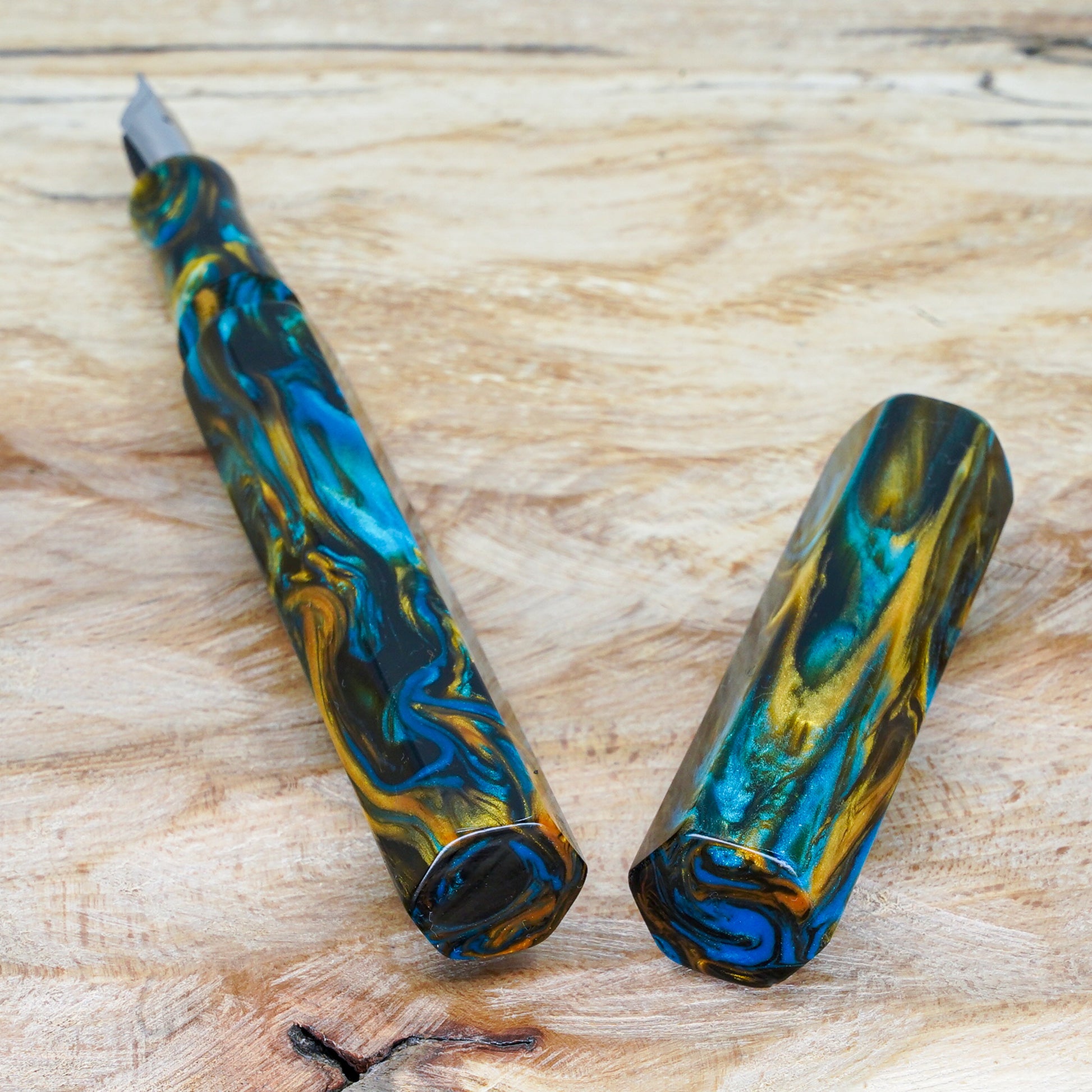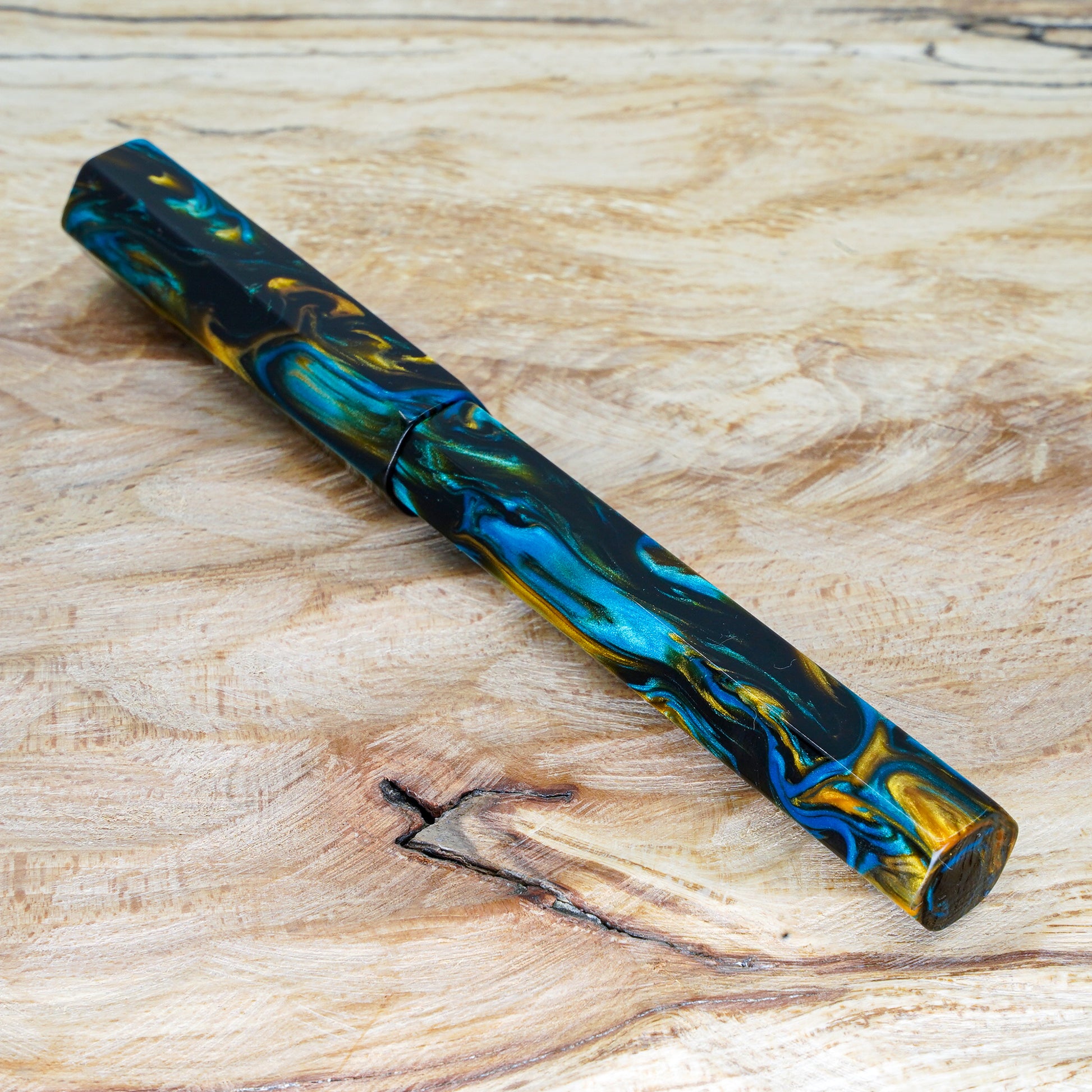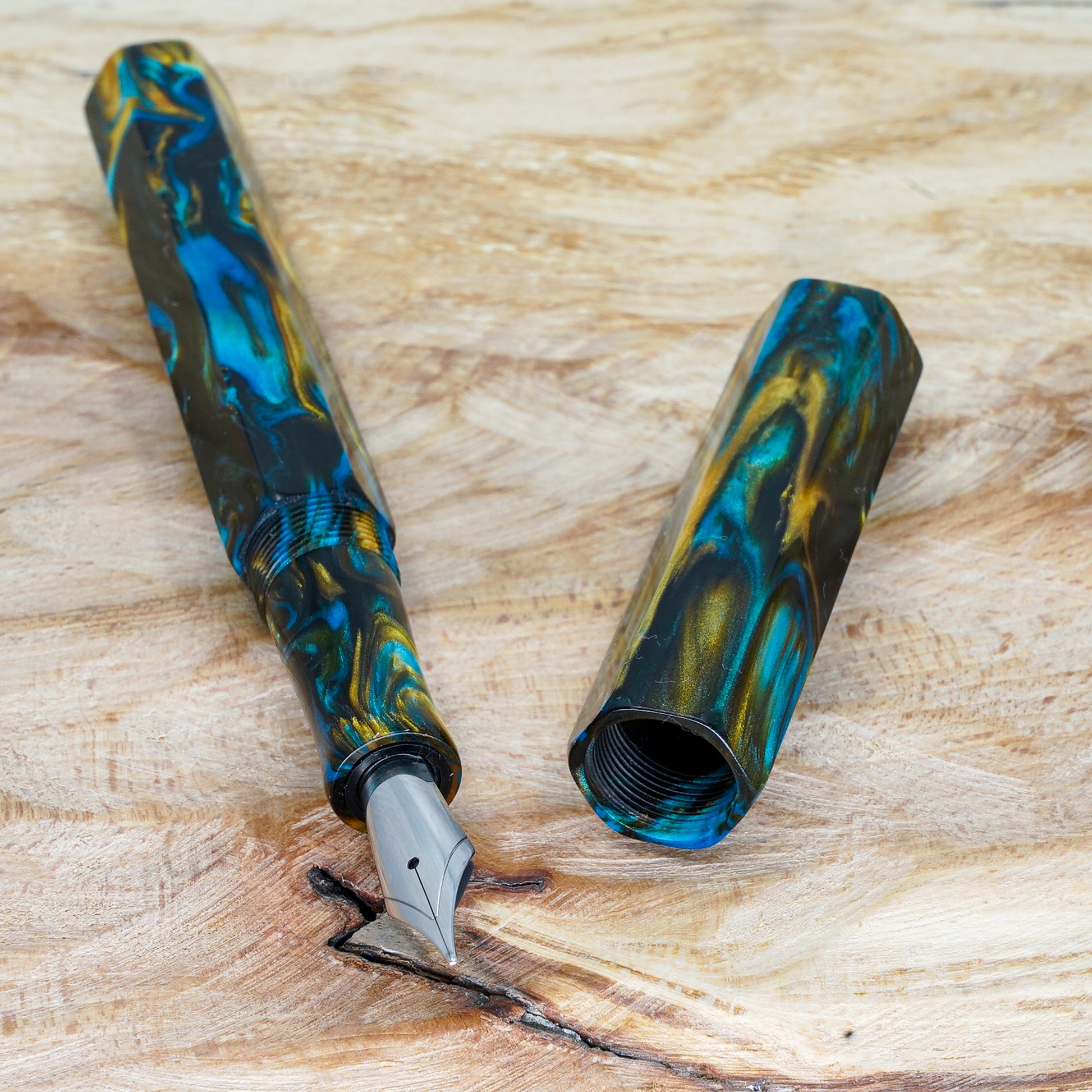 The Hexagon Carson XXIX is a handcrafted pen with a polished steel Jowo nib size 6. It measures 145mm long including the cap, 135mm from the nib to the body end, and has a body diameter of 15mm with a 13mm thread. The cap diameter is 16mm. It comes with a Schmidt K5 ink converter and any nib tip size. Other nibs are available, please contact for alternatives and prices.