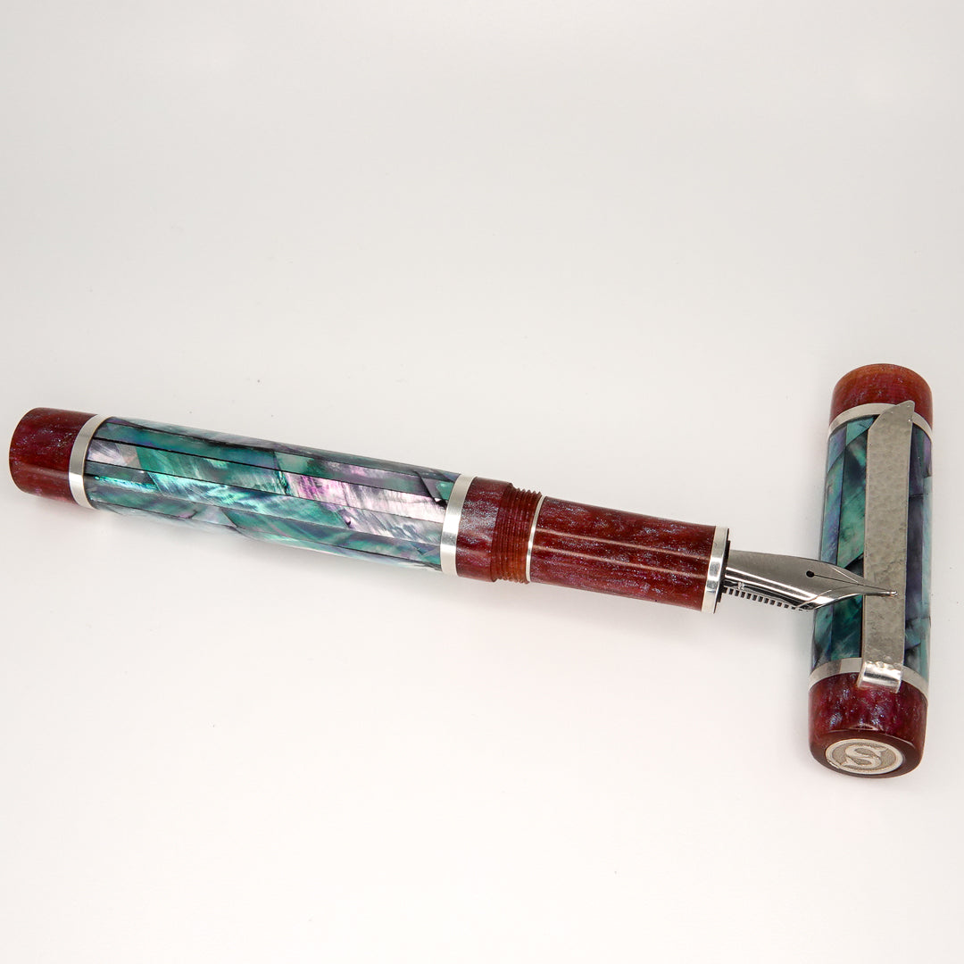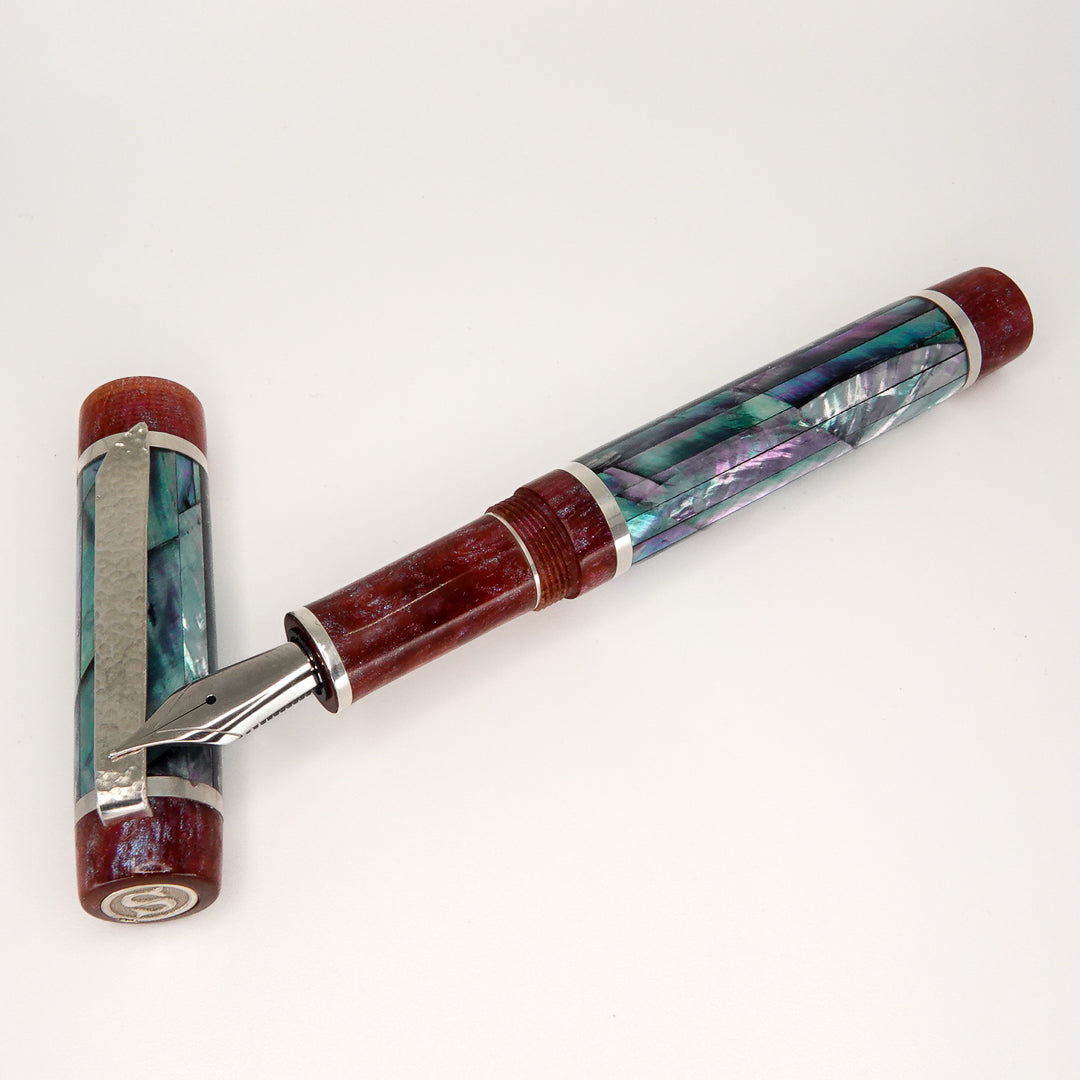 This exquisite fountain pen is a true work of art, meticulously handcrafted with inspiration from the stunning beauty of Cornwall's St Ives Bamaluz Beach. Made with real sea shell and Argentium silver, this pen is part of the Bamaluz series and offers a unique writing experience.