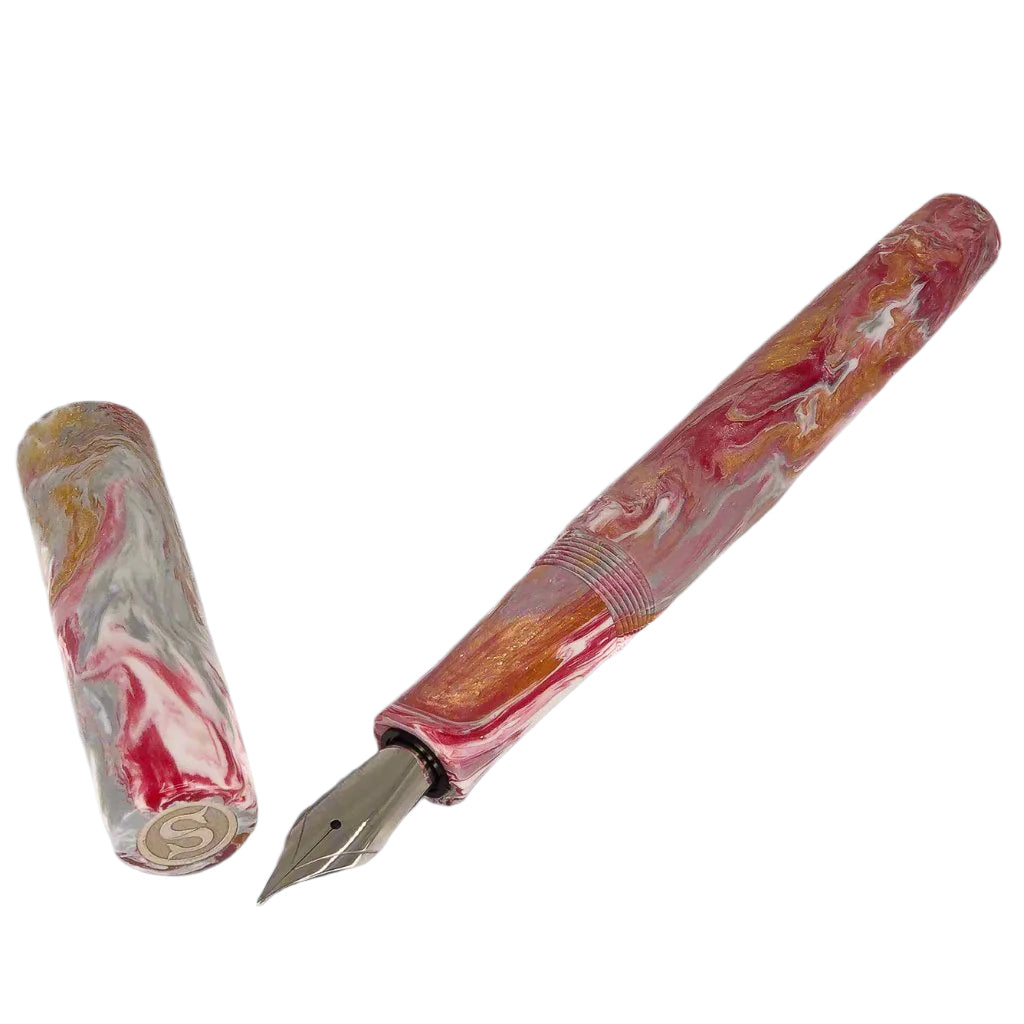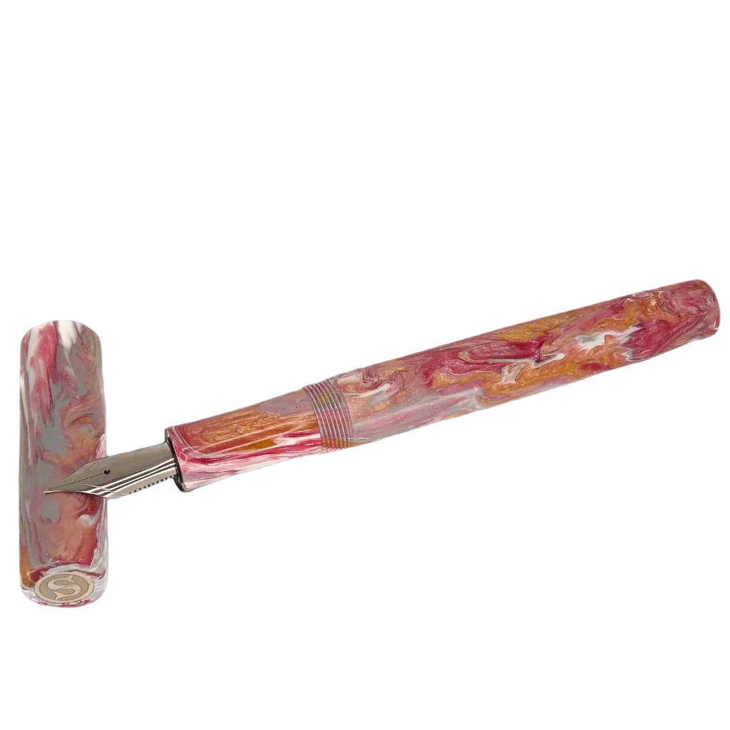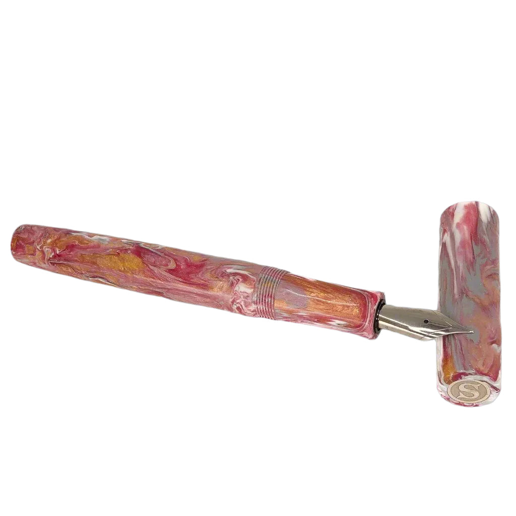 Presenting the stunning Stepless 14mm pen from Silver Burl Pens. Part of the Simply Elegant series, this pen is made for writers who appreciate both comfort and style. Its sleek design is perfect for carrying in a pocket or bag, or displaying on a desk. Each pen is carefully crafted to the highest standards and includes a size six Jowo nib and Schmidt K5 ink converter. The polished steel nib is offered in different tip sizes, and other nib options are available by contacting john@silverburlpens.com.