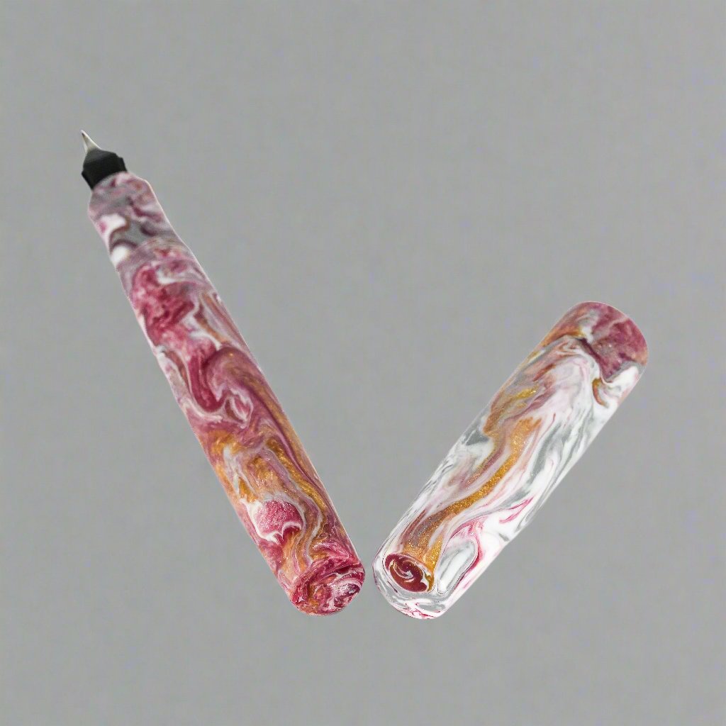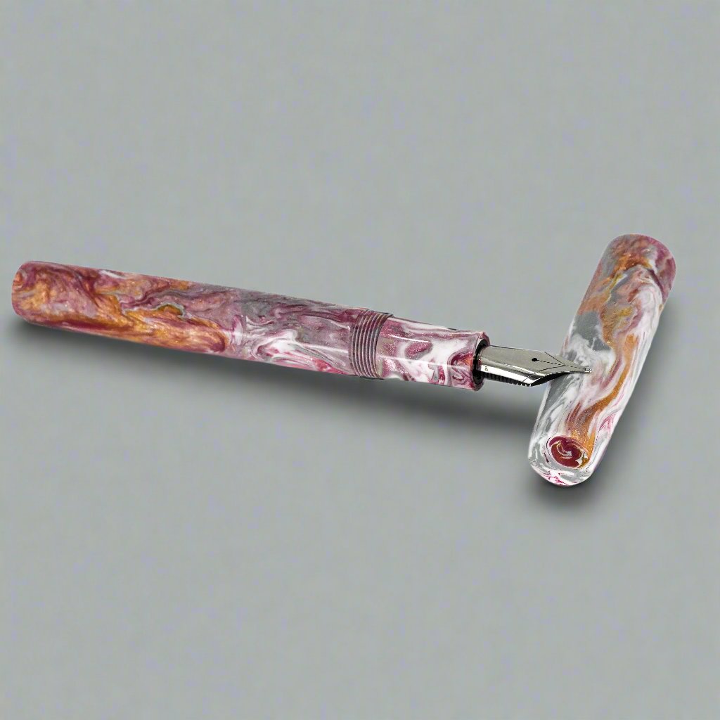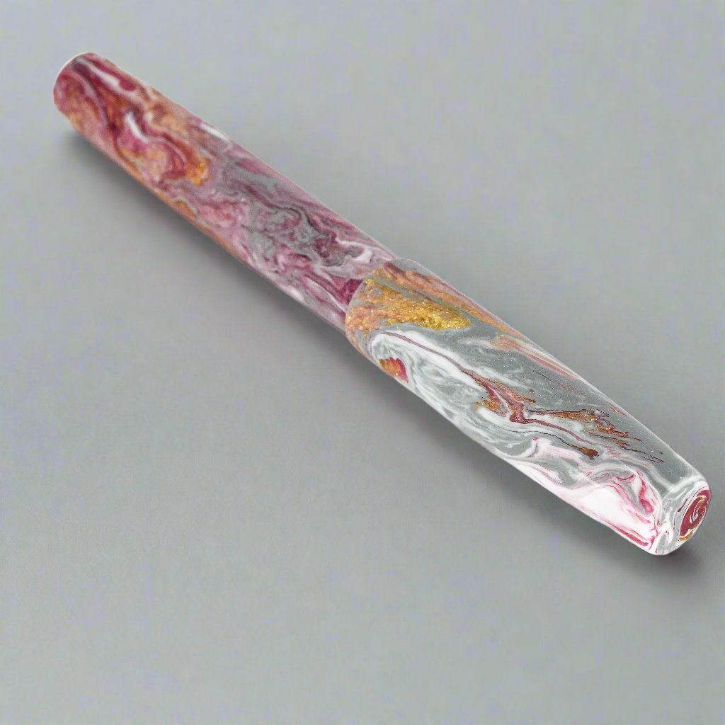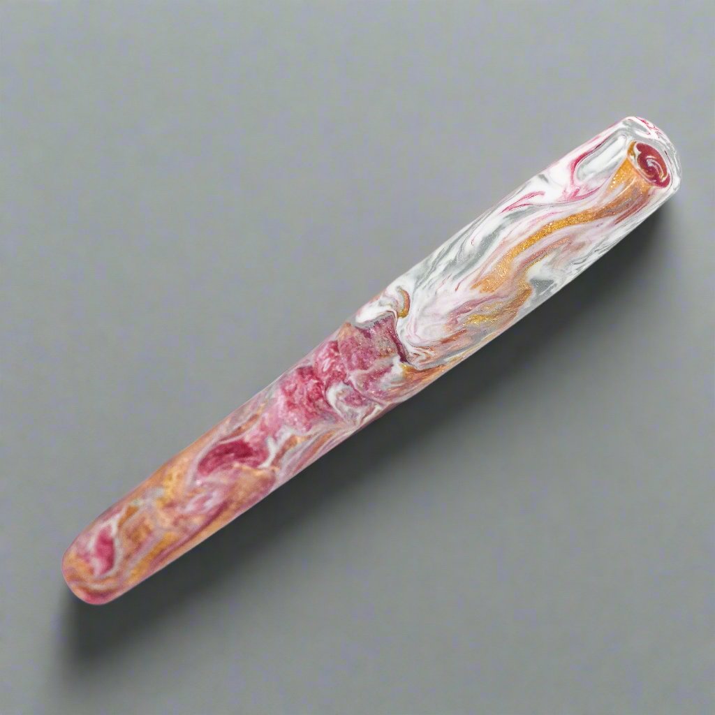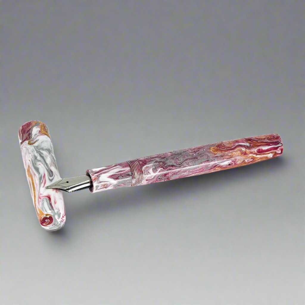 Presenting the stunning Stepless 14mm pen from Silver Burl Pens. Part of the Simply Elegant series, this pen is made for writers who appreciate both comfort and style. Its sleek design is perfect for carrying in a pocket or bag, or displaying on a desk. Each pen is carefully crafted to the highest standards and includes a size six Jowo nib and Schmidt K5 ink converter. The polished steel nib is offered in different tip sizes, and other nib options are available by contacting john@silverburlpens.com.