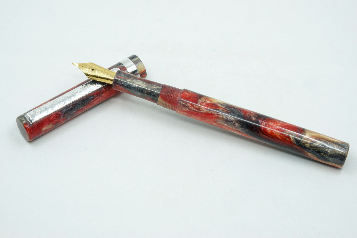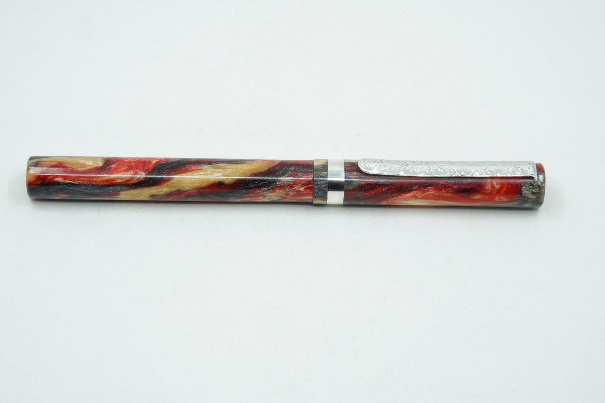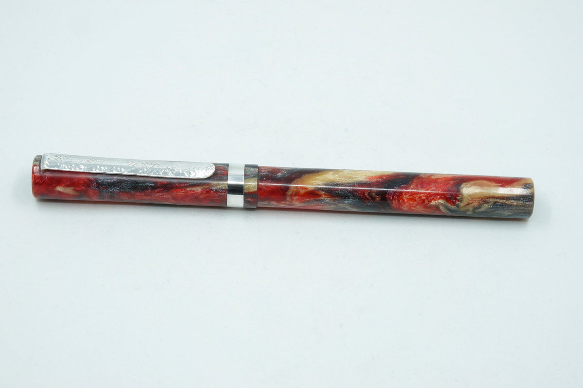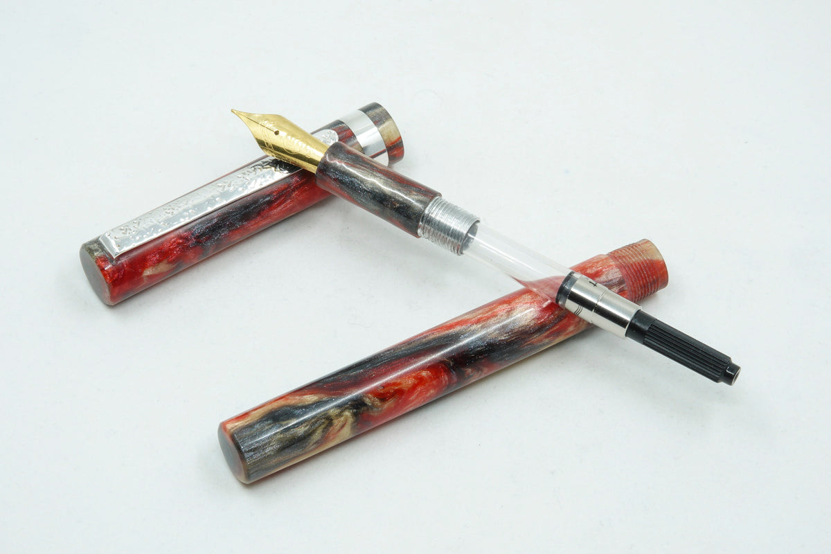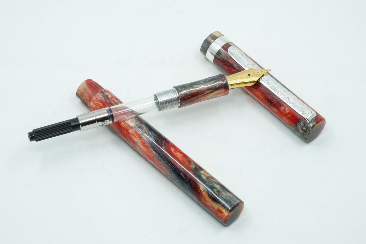Introducing the Red Dragon, a stunning hand made kittless fountain pen made with a Diamond cast resin. This material is made using real Diamonds and is fitted with .925 solid silver handmade pen clip and accent ring.