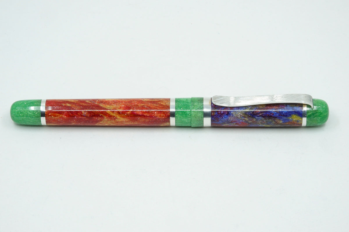 Bright and Beautiful is a totally unique fountain pen made with solid not plated Argentium silver parts. It has increased tarnish resistance, a whiter colour, antibacterial and hypoallergenic properties. The pen clip and accent rings including the nib section are all made from this superior silver.