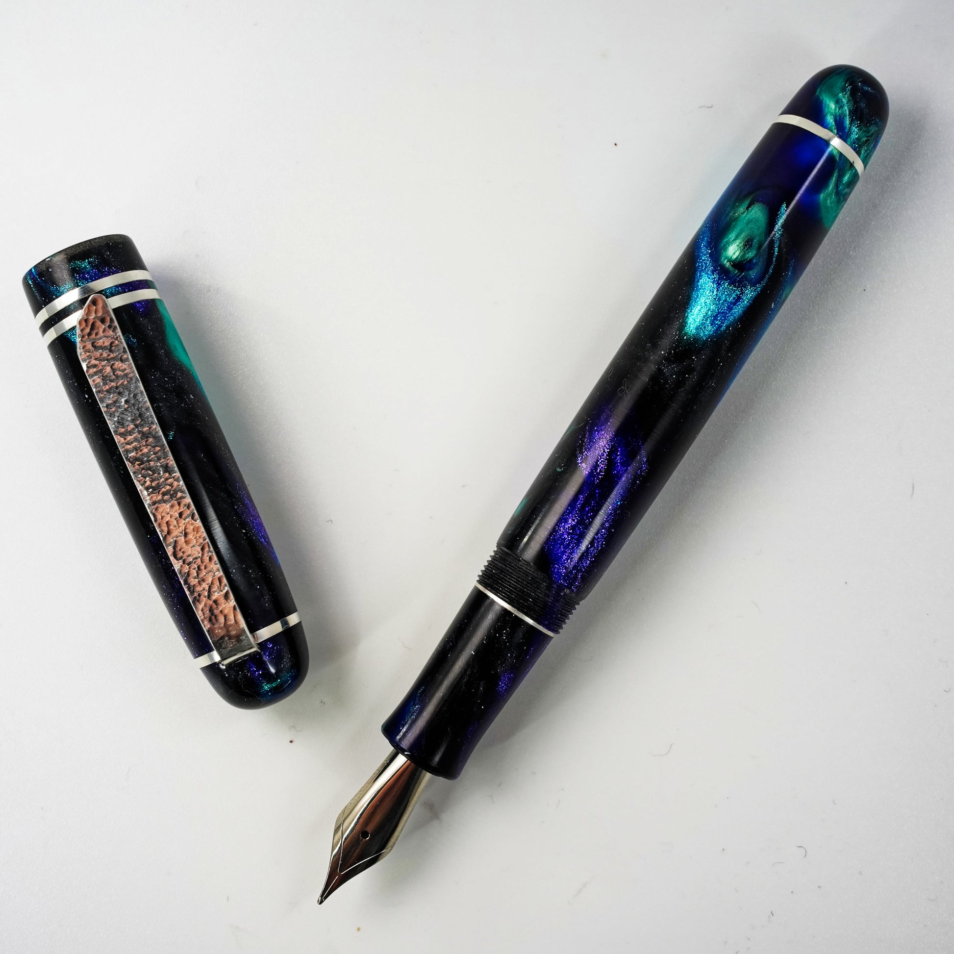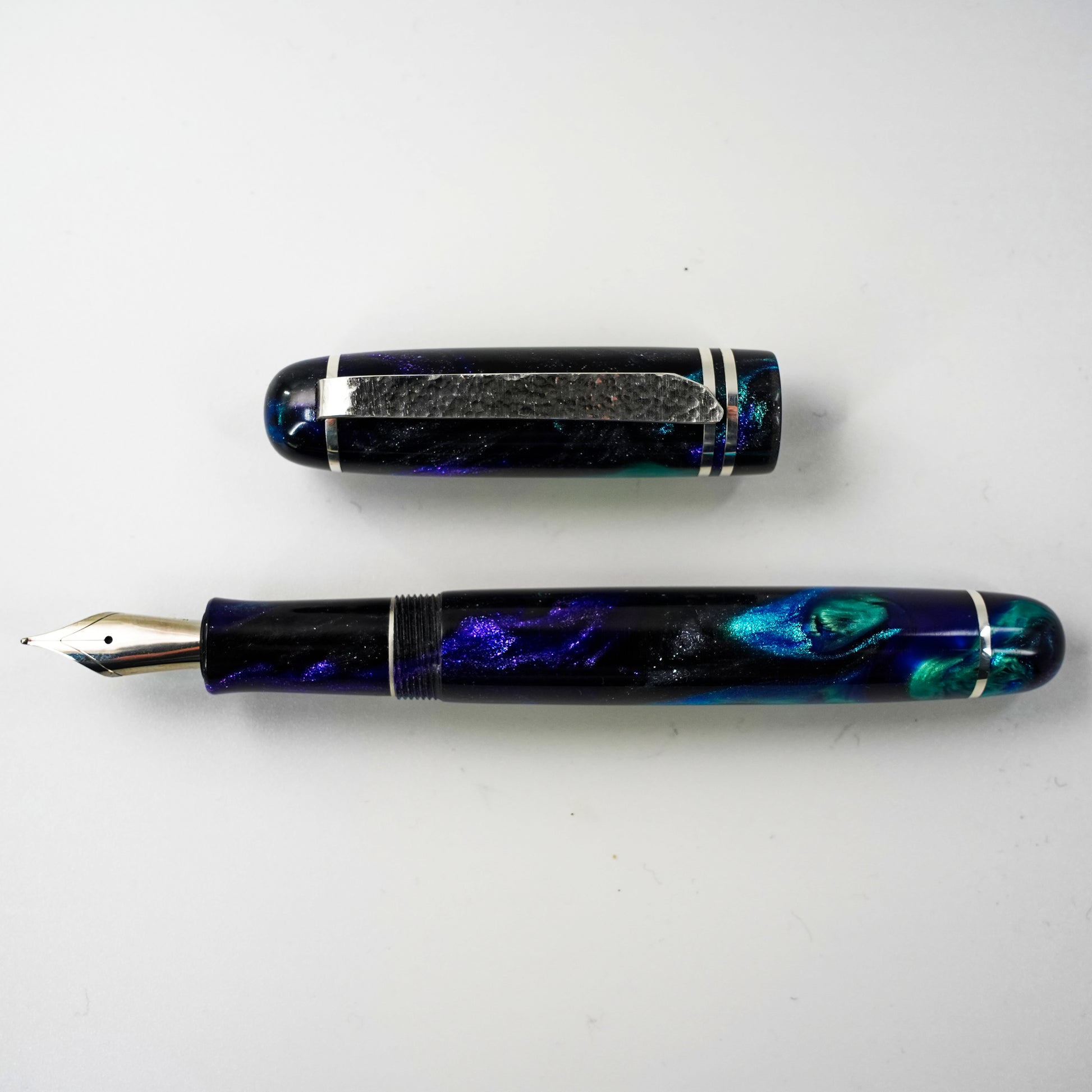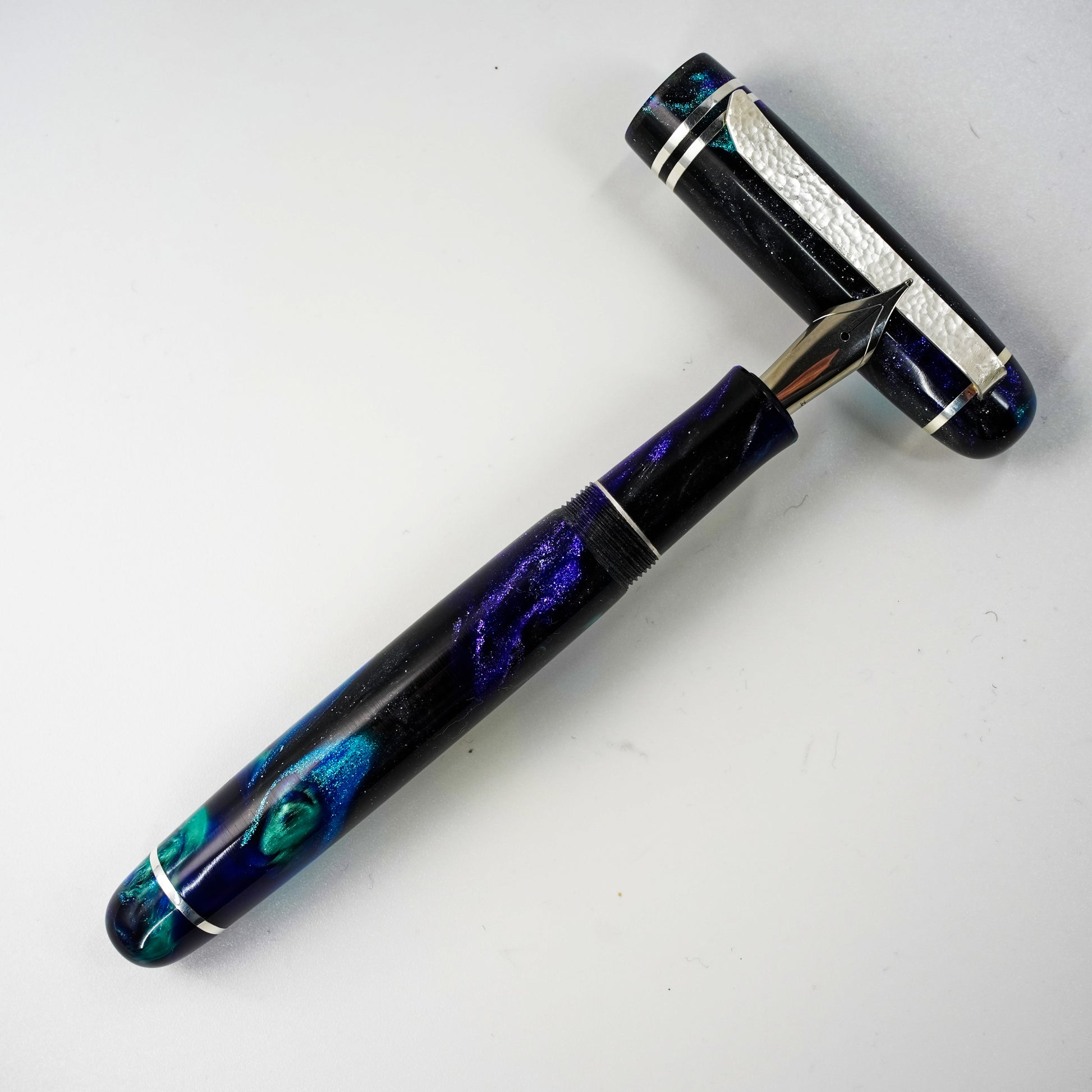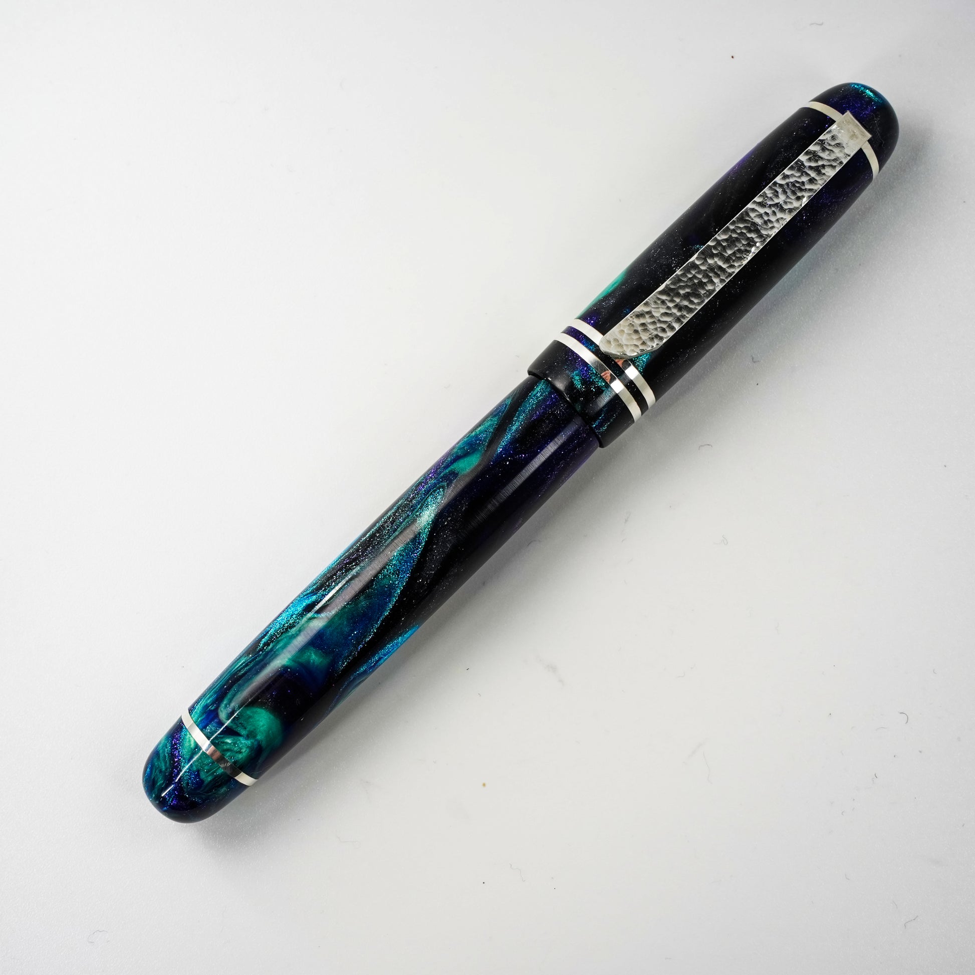 Experience unparalleled craftsmanship with the Silver Series 14  by Silverburl Pens. Meticulously handmade, this fountain pen features a polished steel Jowo size 6 nib, available in multiple tip sizes to suit your writing style. Measuring 145mm including the cap, with a balanced diameter for comfortable, extended use, it combines functional design with elegance. The pen is crafted from premium Argentium .940 silver, prized for its exceptional brightness, enhanced durability, and superior tarnish resistance compared to traditional sterling silver. Its natural antibacterial properties and nickel-free composition make it ideal for users with sensitive skin or allergies. The Silver Series 14  redefines luxury writing, merging aesthetic refinement with lasting performance.