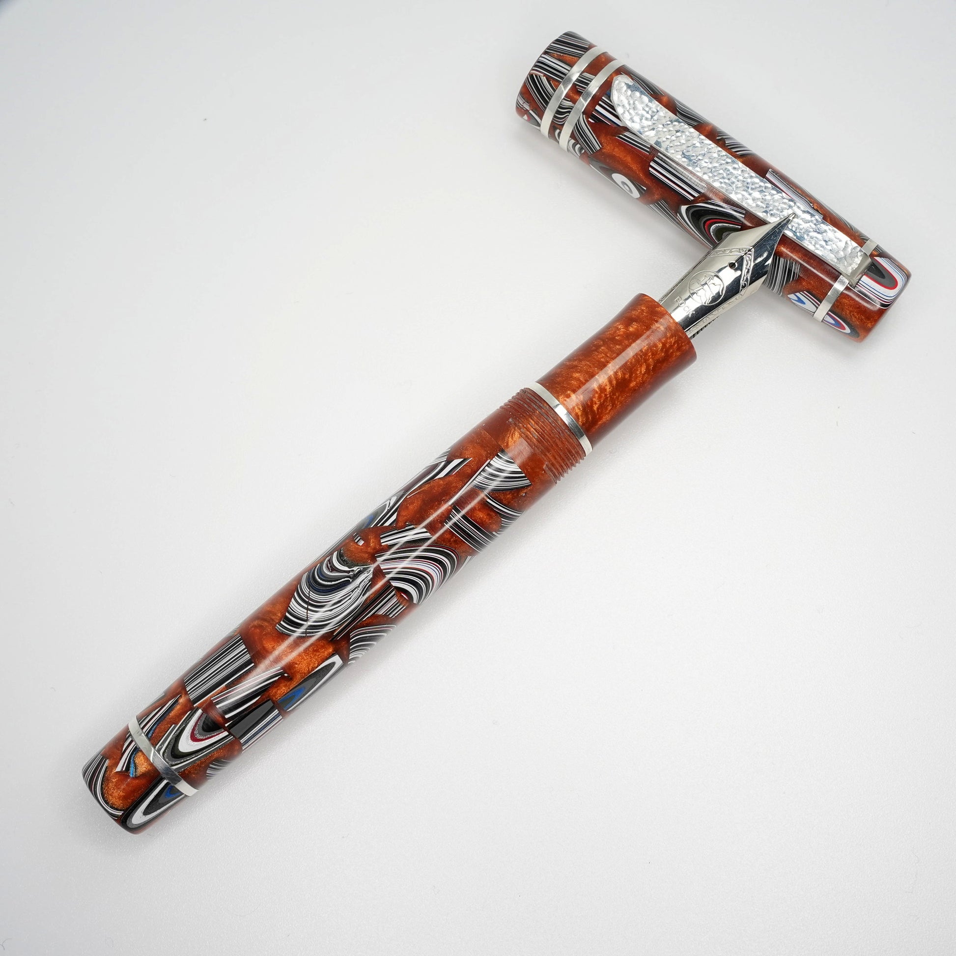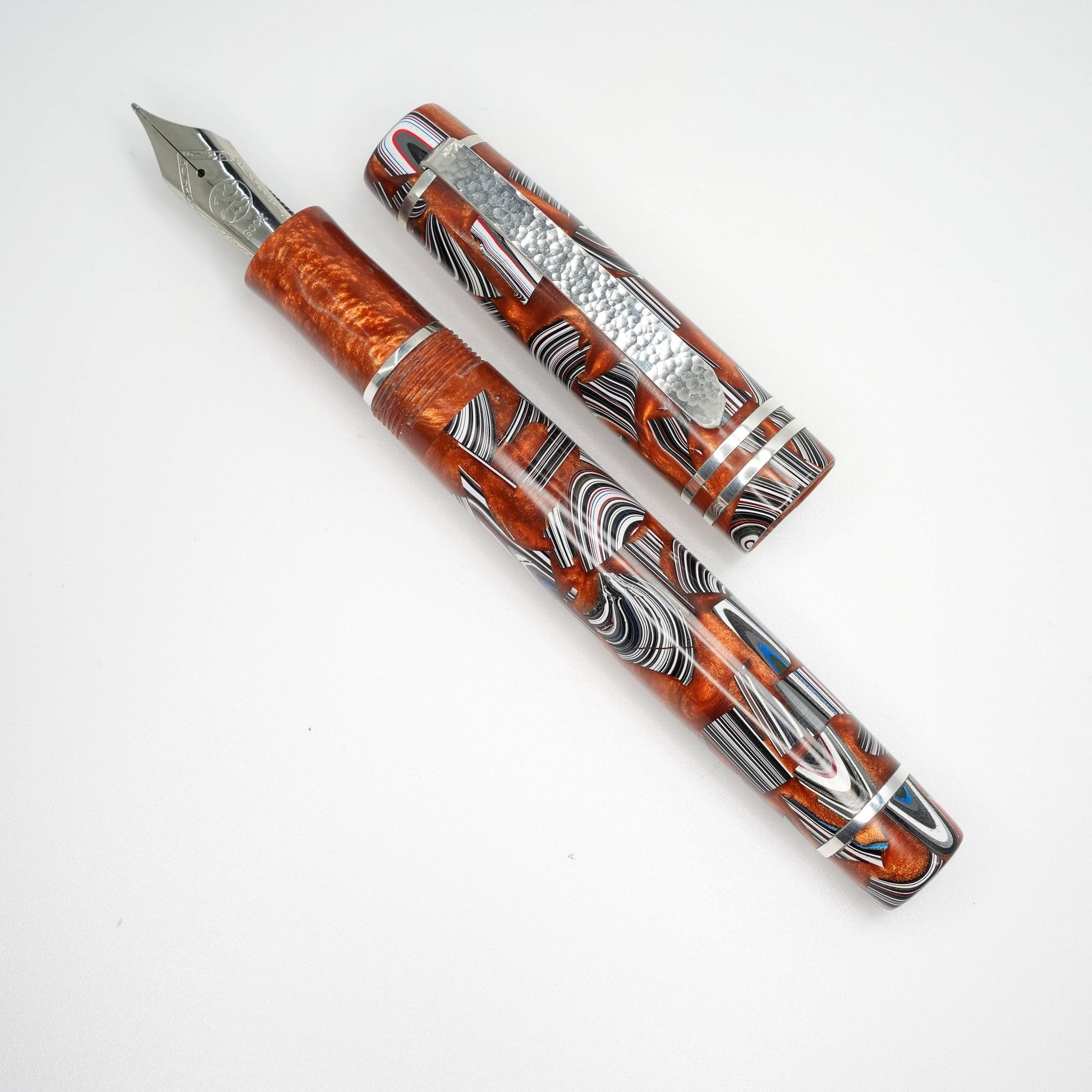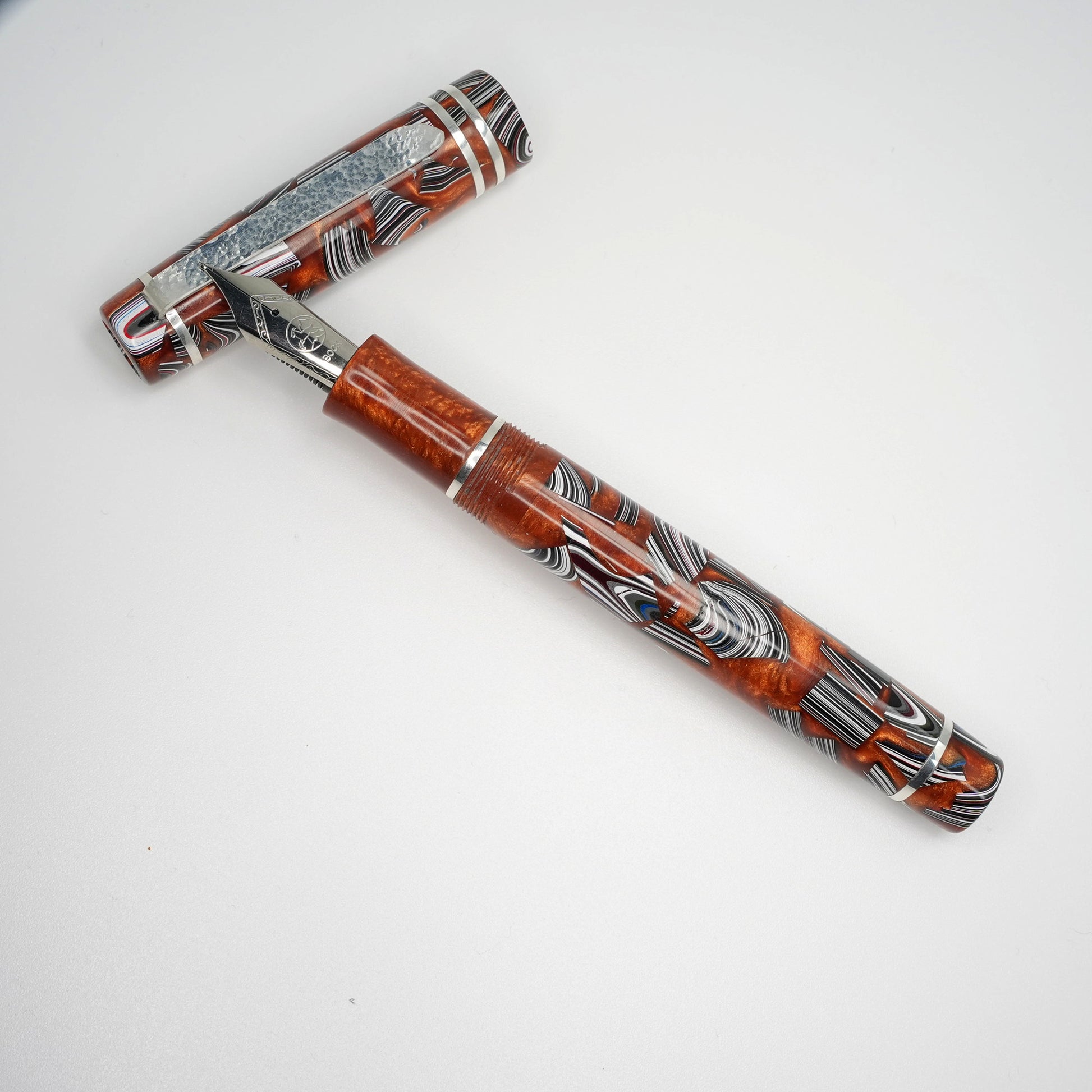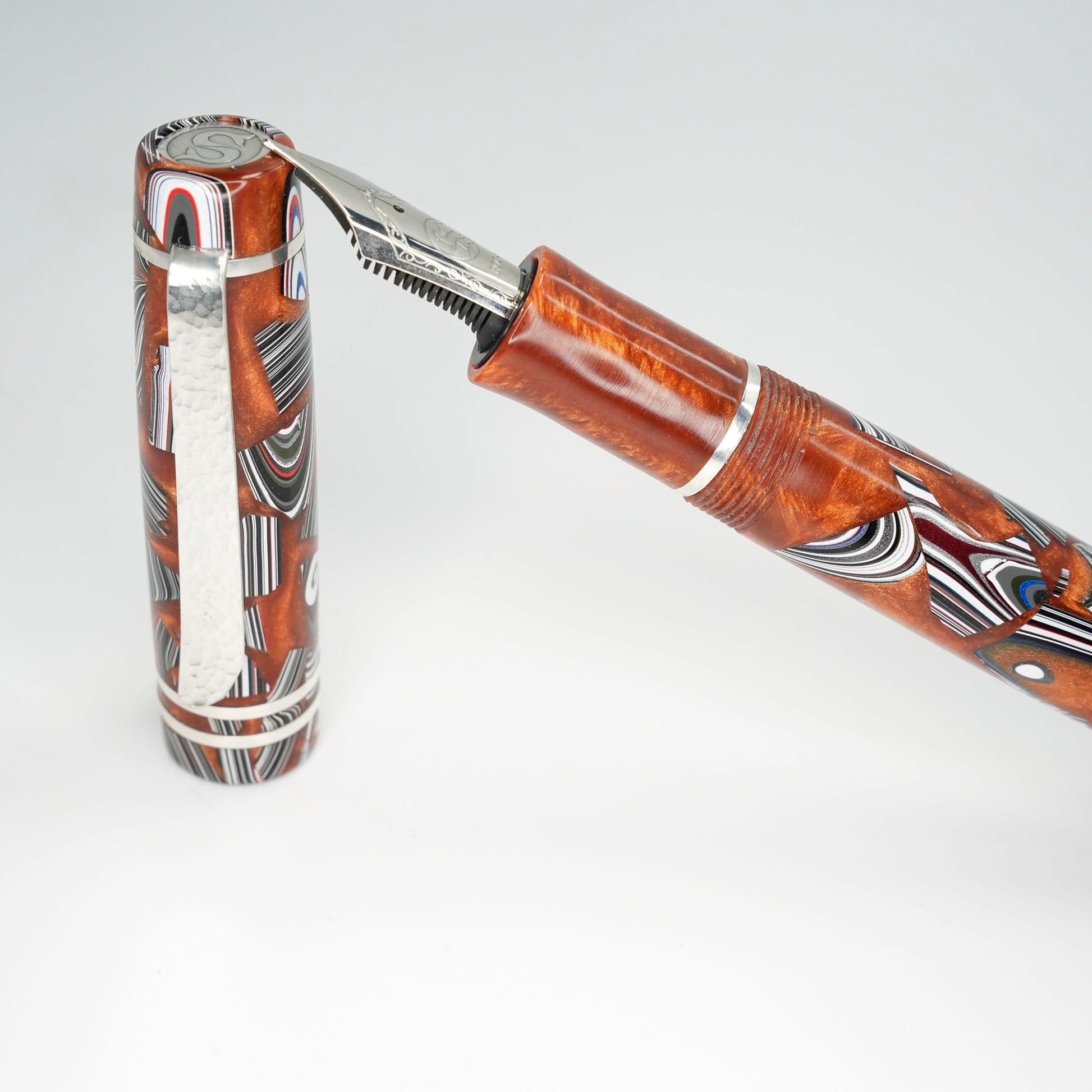 Made and cast in house using vintage fordite, this size eight nib fountain pen is a dream to hold and use. The pen from the Silver series is made using .940 argentium silver throughout designed for the discerning writer who appreciates both style and functionality. this pen is perfect for slipping into your pocket or bag, or displaying on your desk. The pen is fitted with a size 8 nib, medium tip size Polished steel Bock nib and large capacity TWSBI ink converter, ensuring a smooth and effortless writing experience. The nib fitted is a polished steel Bock Medium but please contact for alternatives Contact john@silverburlpens.com for more information and pricing of other nibs. Pen Size: Overall length including cap 150m/m, nib tip to body end 138m/m, body diameter 15.5m/m, body to cap thread 15m/m triple start, cap diameter 16.5m/m, section diameter at narrowest point 12.5m/m. Indulge in the art of writing with our luxury Silver series pen. The sleek 15mm body is designed for ease and elegance with a superior writing experience. Fine-tuned for the discerning writer, this pen is available in various nib sizes. Contact us for more information and pricing options. Pen size: overall length including cap 145m/m, nib tip to body end 135m/m, body diameter 16m/m, body to cap thread 15m/m triple start, cap diameter 16.5m/m, section diameter at narrowest point 13.5m/mPLEASE NOTE THIS PEN IS FITTED WITH A NIB TIP SIZE IN THE DECRYPTION CONTACT IF YOU NEED A DIFFERENT NIB OR TIP SIZE!!!!