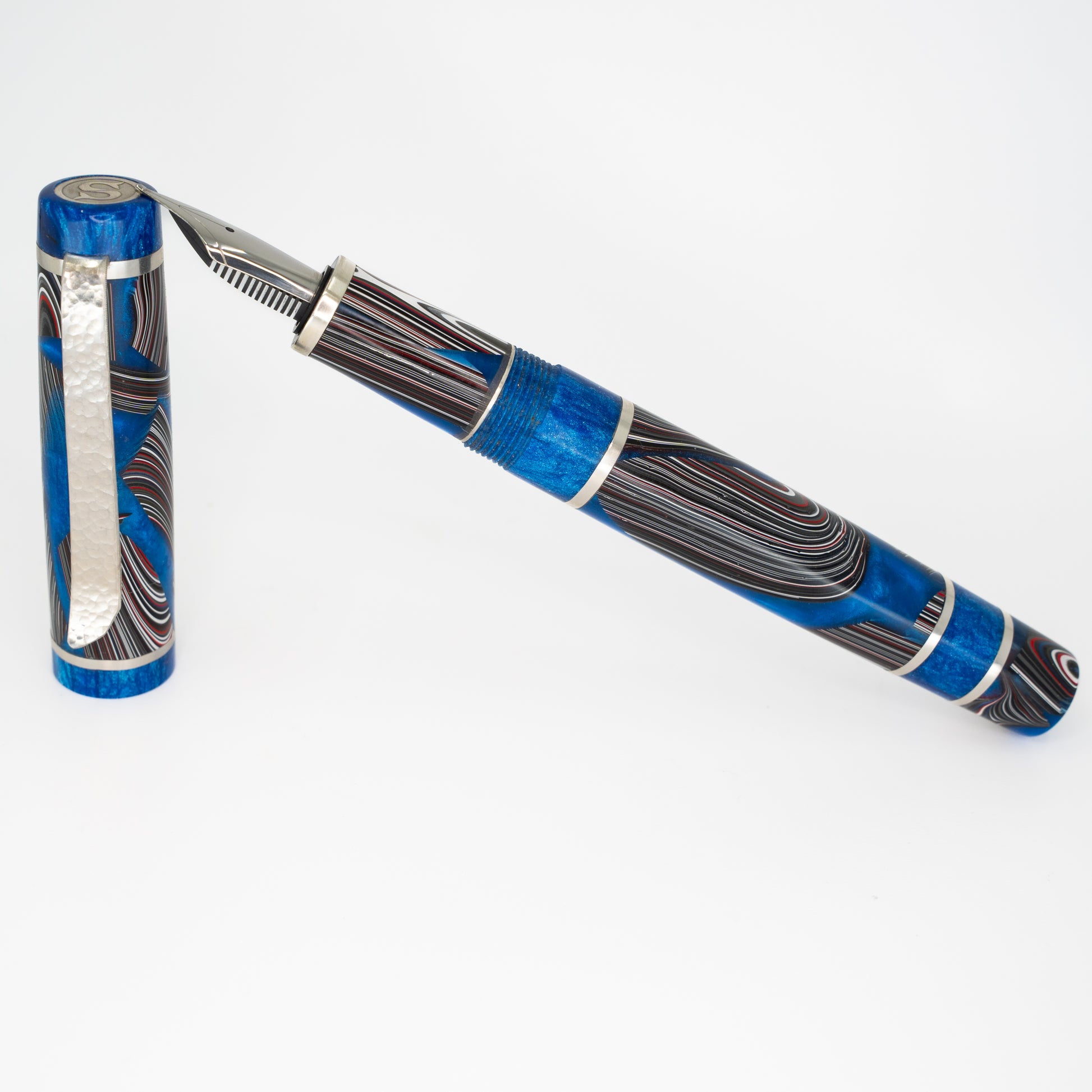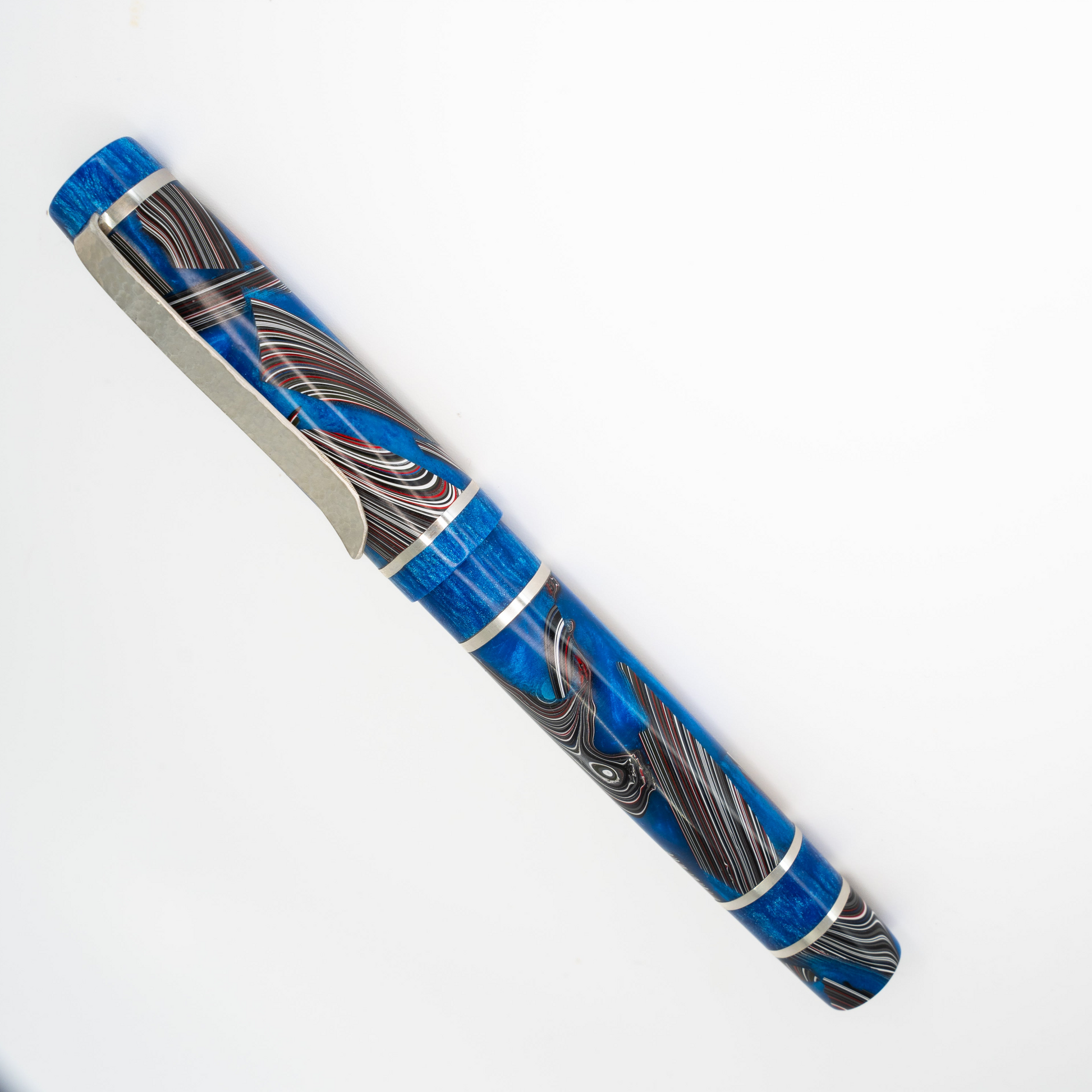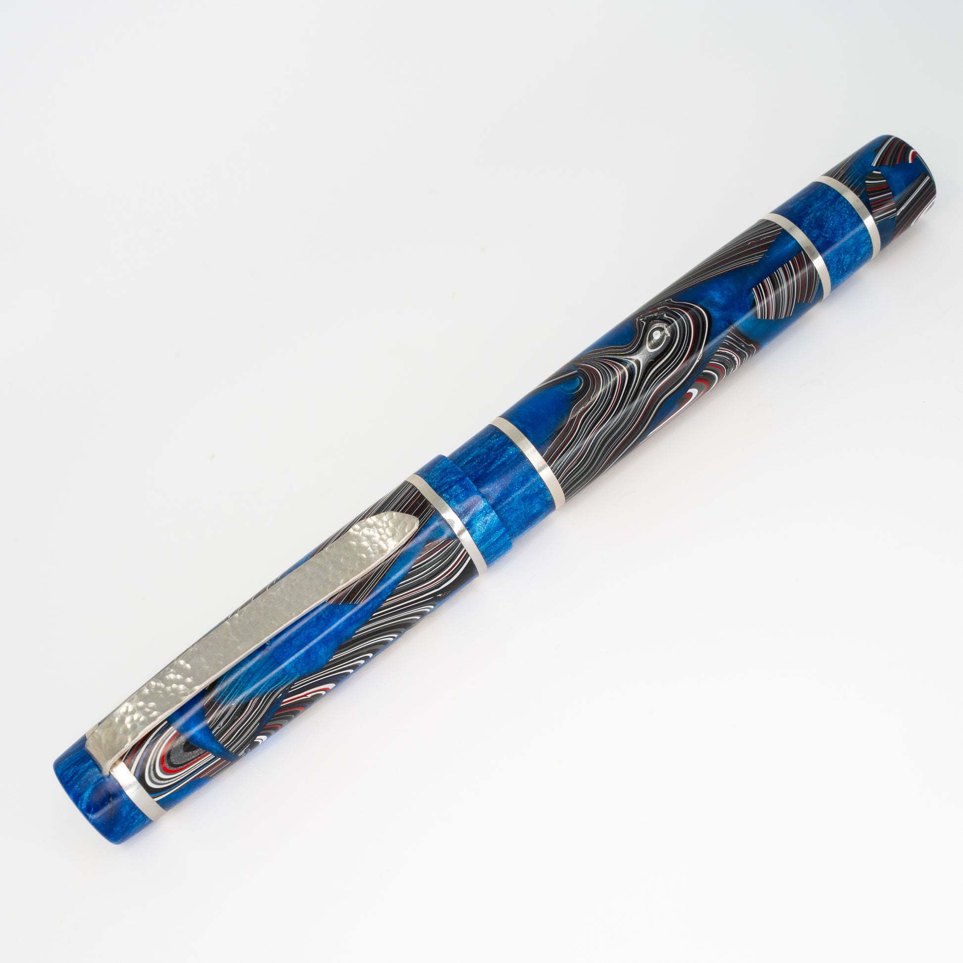 This Jeep Fordite is carefully handcrafted and preserved in resin, showcasing the stunning layers of automotive paint slag from decades ago. Made with .940 argentium silver bands and pocket clip, a size six Jowo nib, this pen is both durable and stylish. Indulge in the rich history and unique beauty of a byproduct that was once discarded, and add this remarkable piece to your collection. Choose your preferred nib size before checkout and enjoy the smooth ink filling system with a Schmidt K5 converter. Don't miss out on the opportunity to own a piece of automotive history