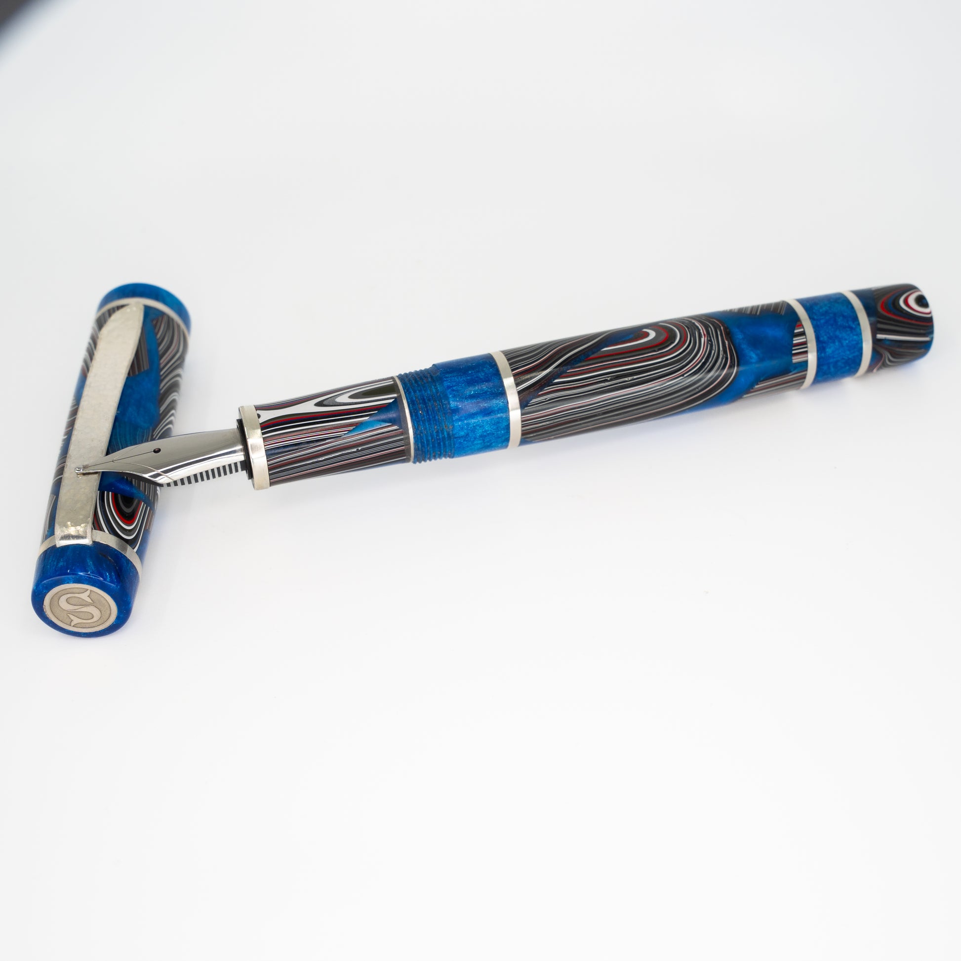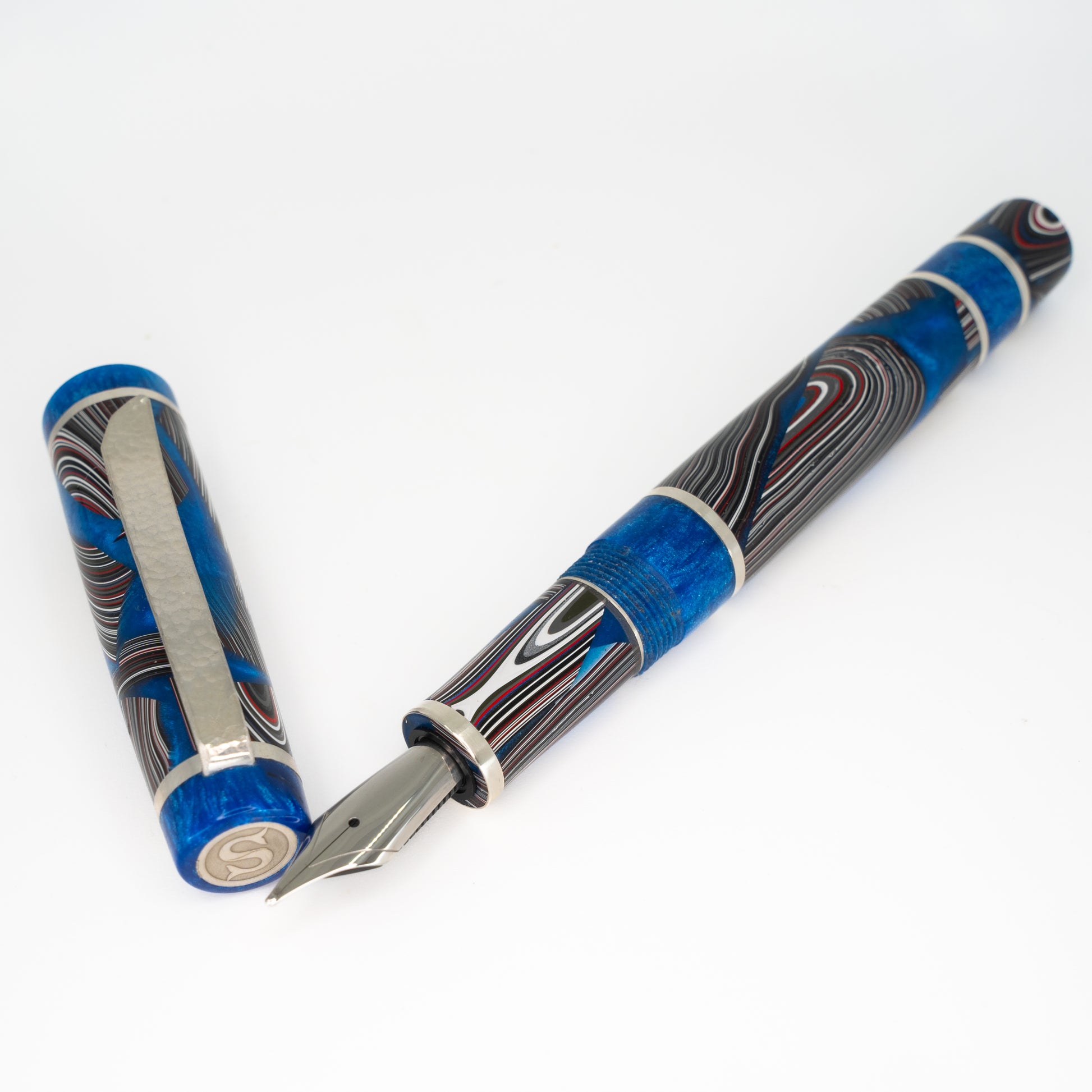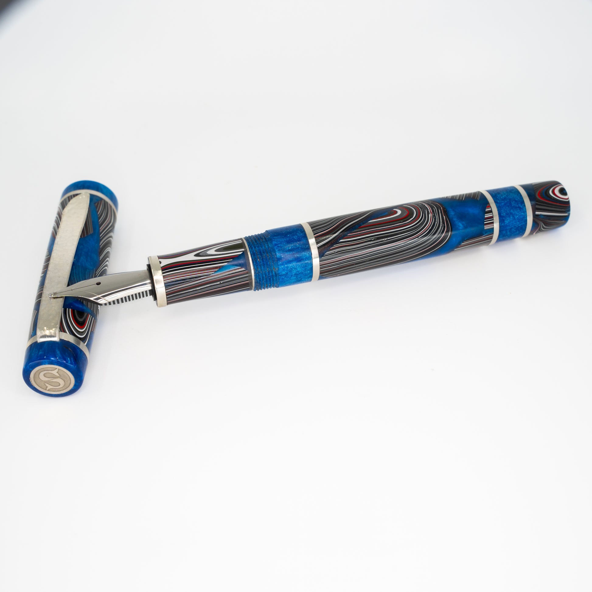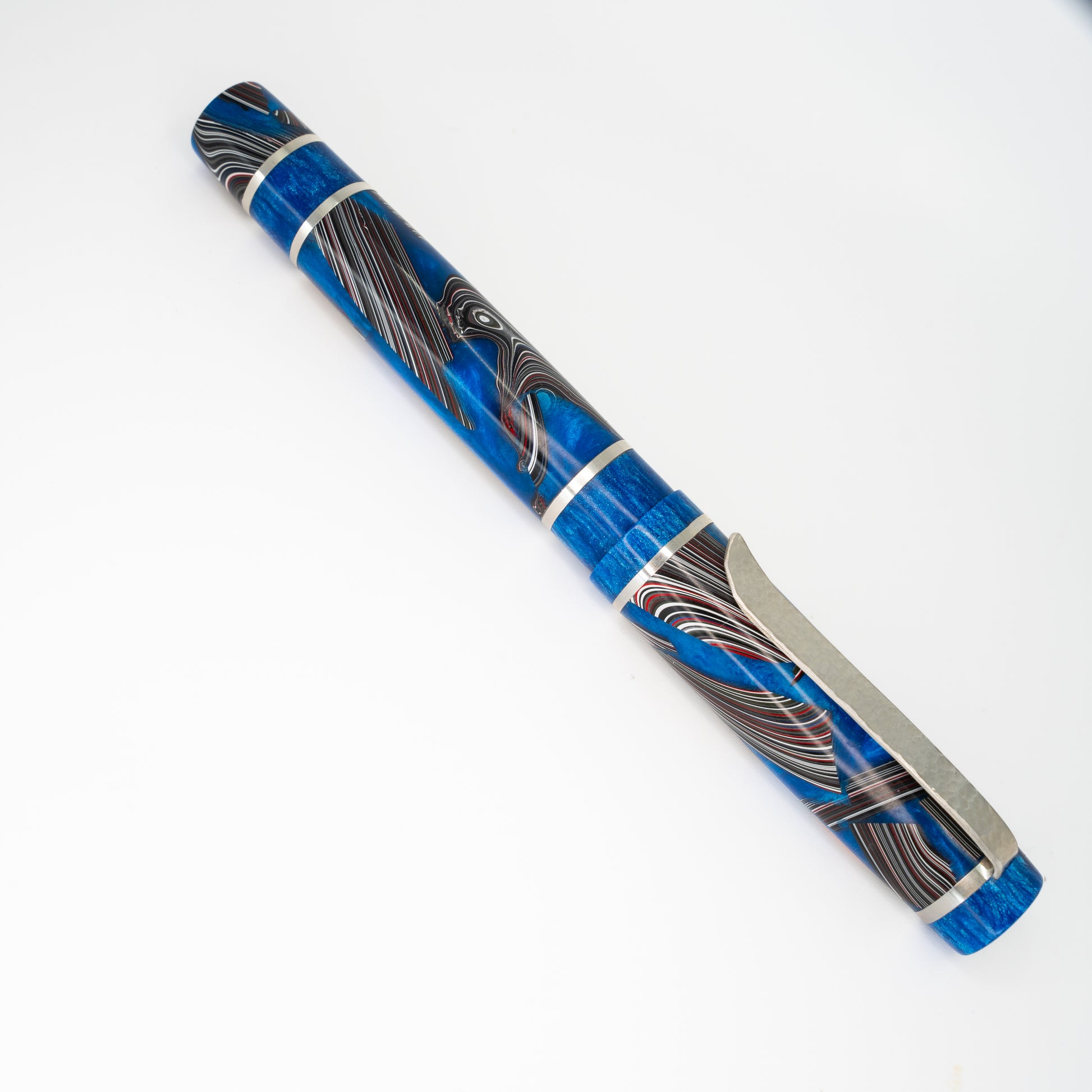 This Jeep Fordite is carefully handcrafted and preserved in resin, showcasing the stunning layers of automotive paint slag from decades ago. Made with .940 argentium silver bands and pocket clip, a size six Jowo nib, this pen is both durable and stylish. Indulge in the rich history and unique beauty of a byproduct that was once discarded, and add this remarkable piece to your collection. Choose your preferred nib size before checkout and enjoy the smooth ink filling system with a Schmidt K5 converter. Don't miss out on the opportunity to own a piece of automotive history