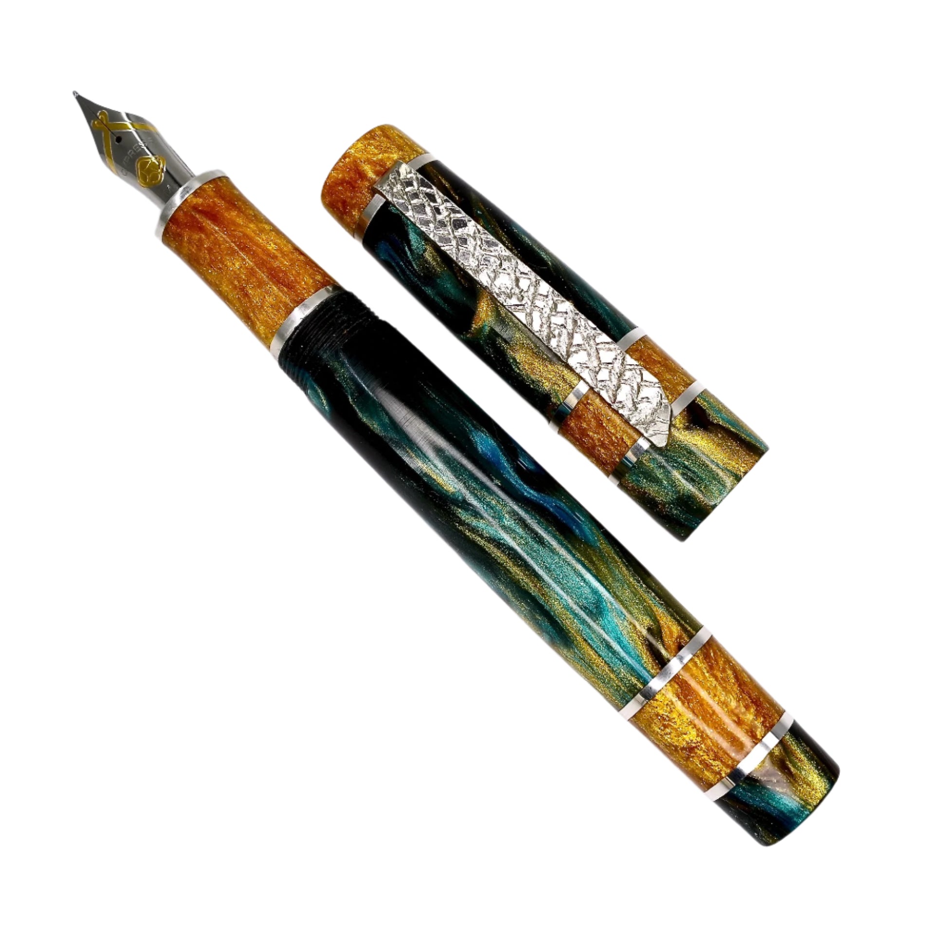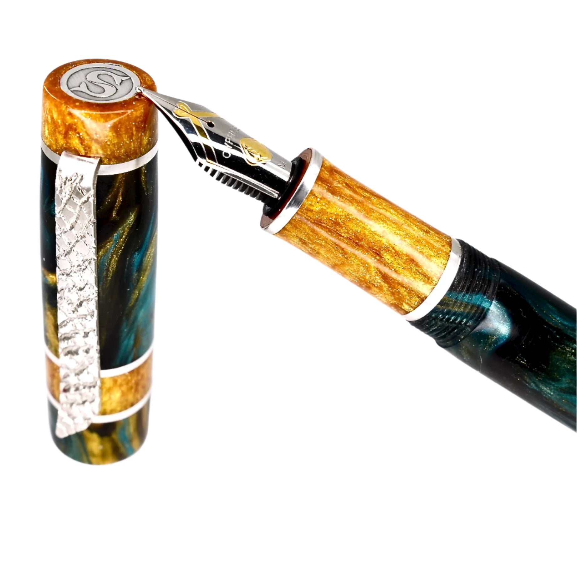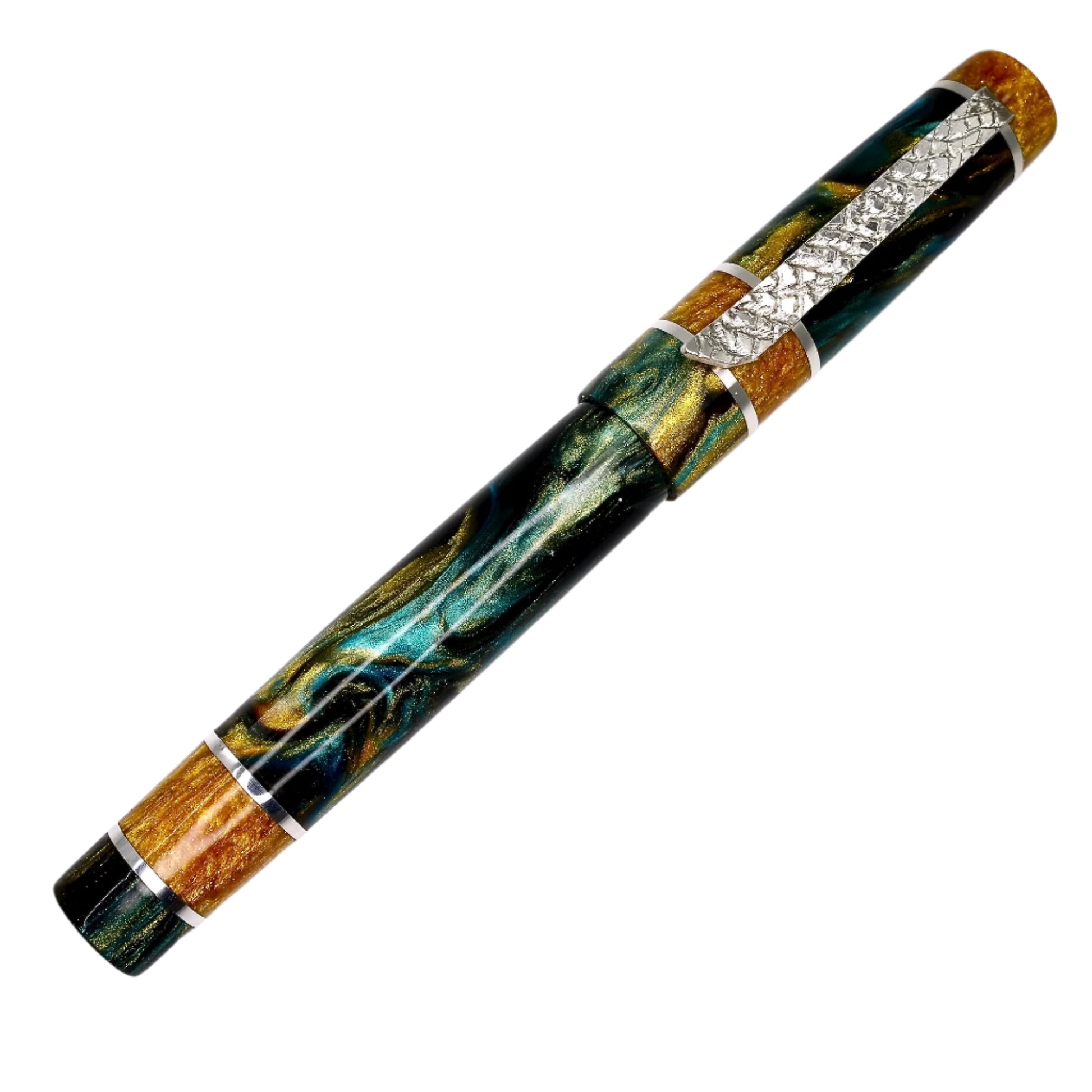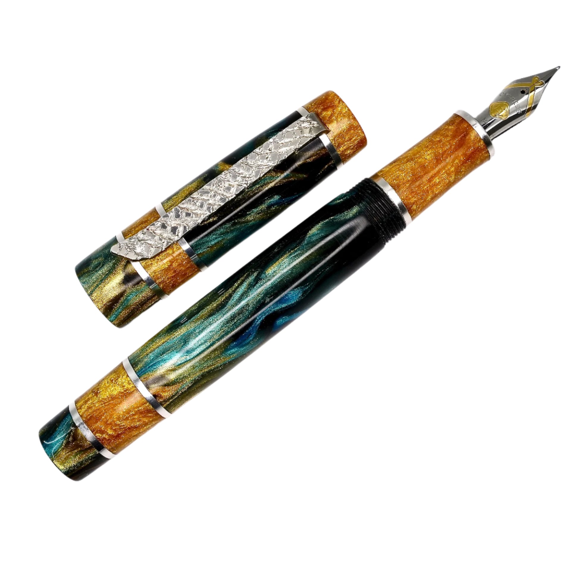 Indulge in the luxurious elegance and impeccable craftsmanship of Silverburl pens. Our unparalleled commitment to excellence and longevity is evident in every detail of this writing instrument, from the sophisticated polished steel Jowo nib size 6 to the array of nib tip options available. Measuring 145m/m in length with the cap, and 135m/m from nib to body end, with a body diameter of 15m/m and a 14m/m thread, and a cap diameter of 16m/m, this pen offers a perfectly comfortable writing experience. But what truly sets this pen apart is the use of Argentium .940 silver, renowned for its superior luster and durability compared to traditional .925 sterling silver. In addition to being highly resistant to tarnishing, it also boasts antibacterial properties and is free of nickel, making it a perfect choice for those with allergies or sensitive skin. Elevate your writing to a whole new level with this exceptional fountain pen.