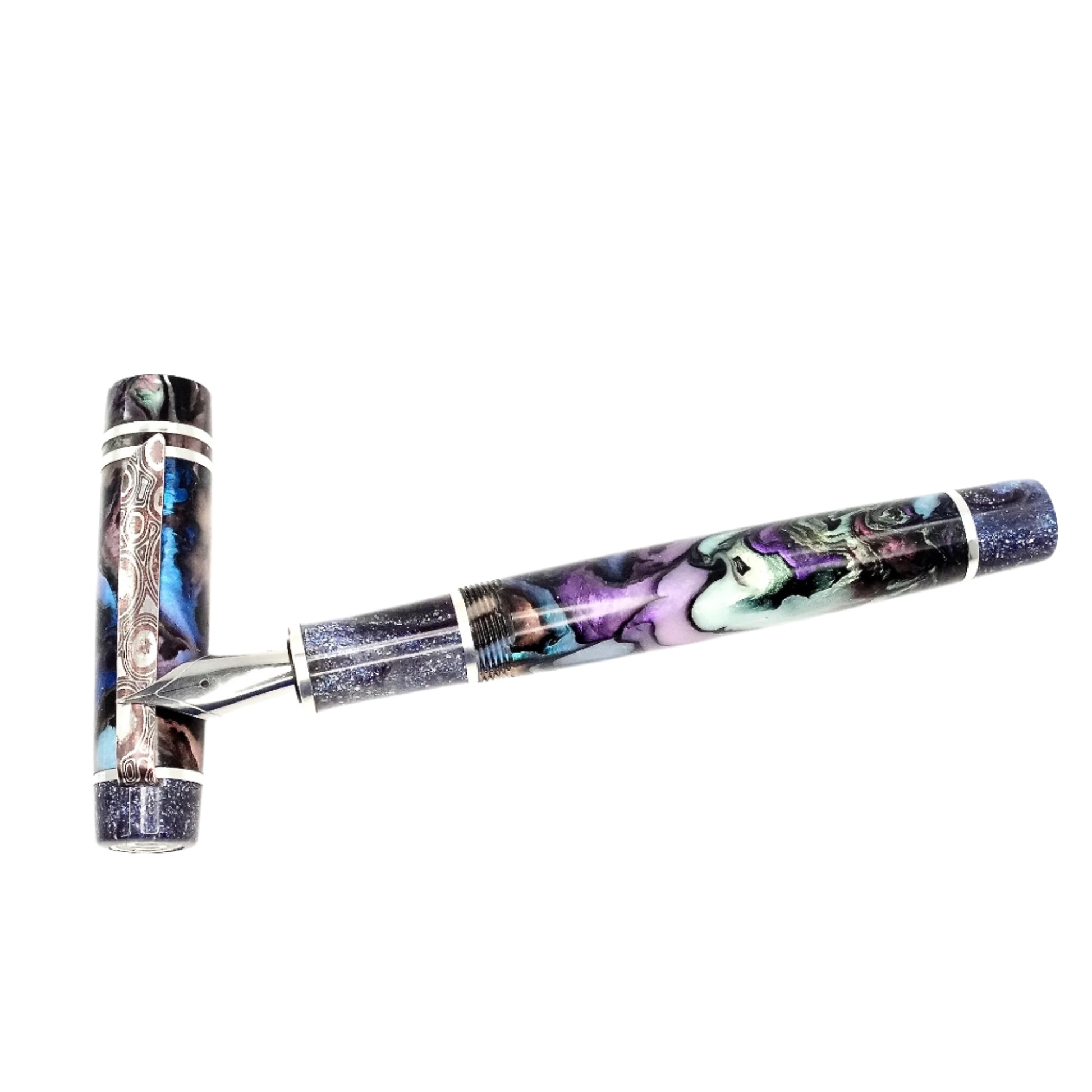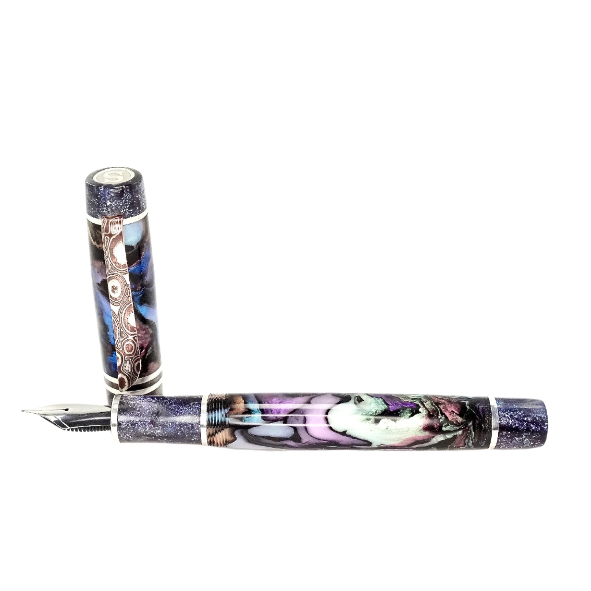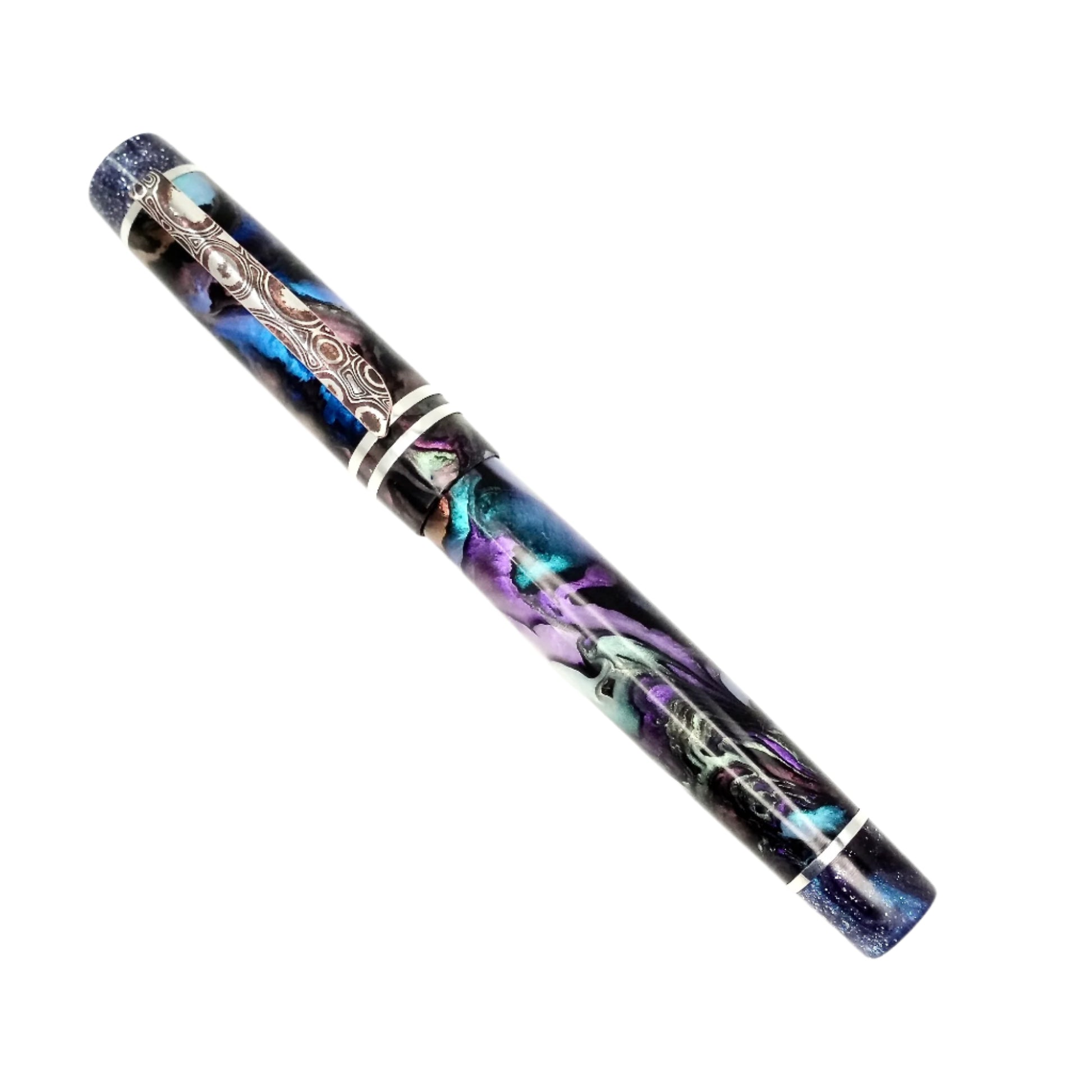Experience the exquisite beauty and exceptional craftsmanship with Silverburl pens. Our commitment to quality and durability is reflected in every aspect of this pen, from the elegant polished steel Jowo nib size 6 to the option to choose from various nib tip sizes. At 145m/m long including the cap and 135m/m from nib to body end, with a body diameter of 15m/m and a 14m/m thread, and a cap diameter of 16m/m, this pen is perfectly sized for comfortable writing. However, what truly makes this pen stand out is the use of Argentium .940 silver, known for its superior brightness and durability compared to traditional .925 sterling silver. Not only is it highly tarnish resistant, but it also has antibacterial properties and is free from nickel, making it an ideal choice for those with allergies or sensitive skin, this pen is fitted with an Argentium Mokume gain pocket clip.