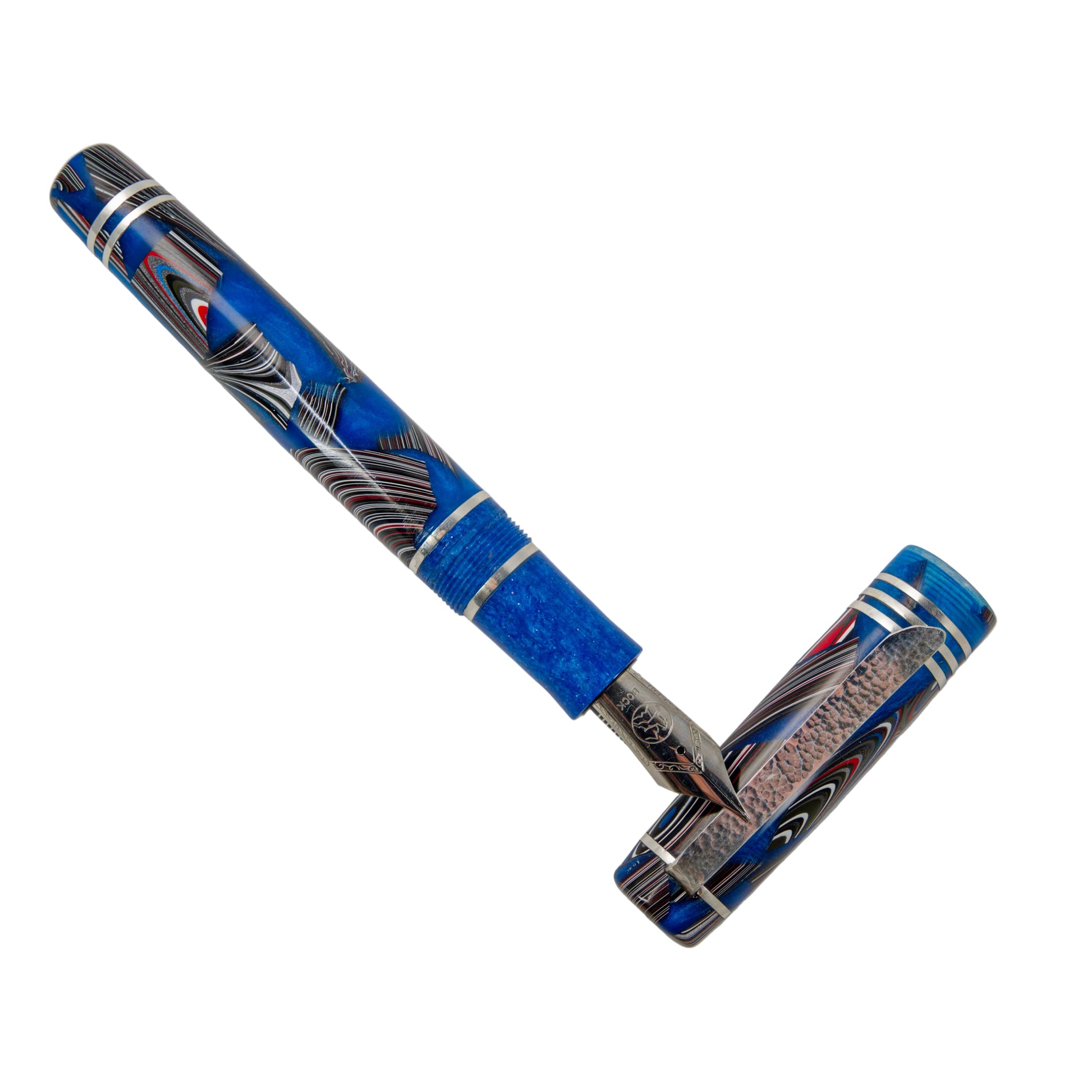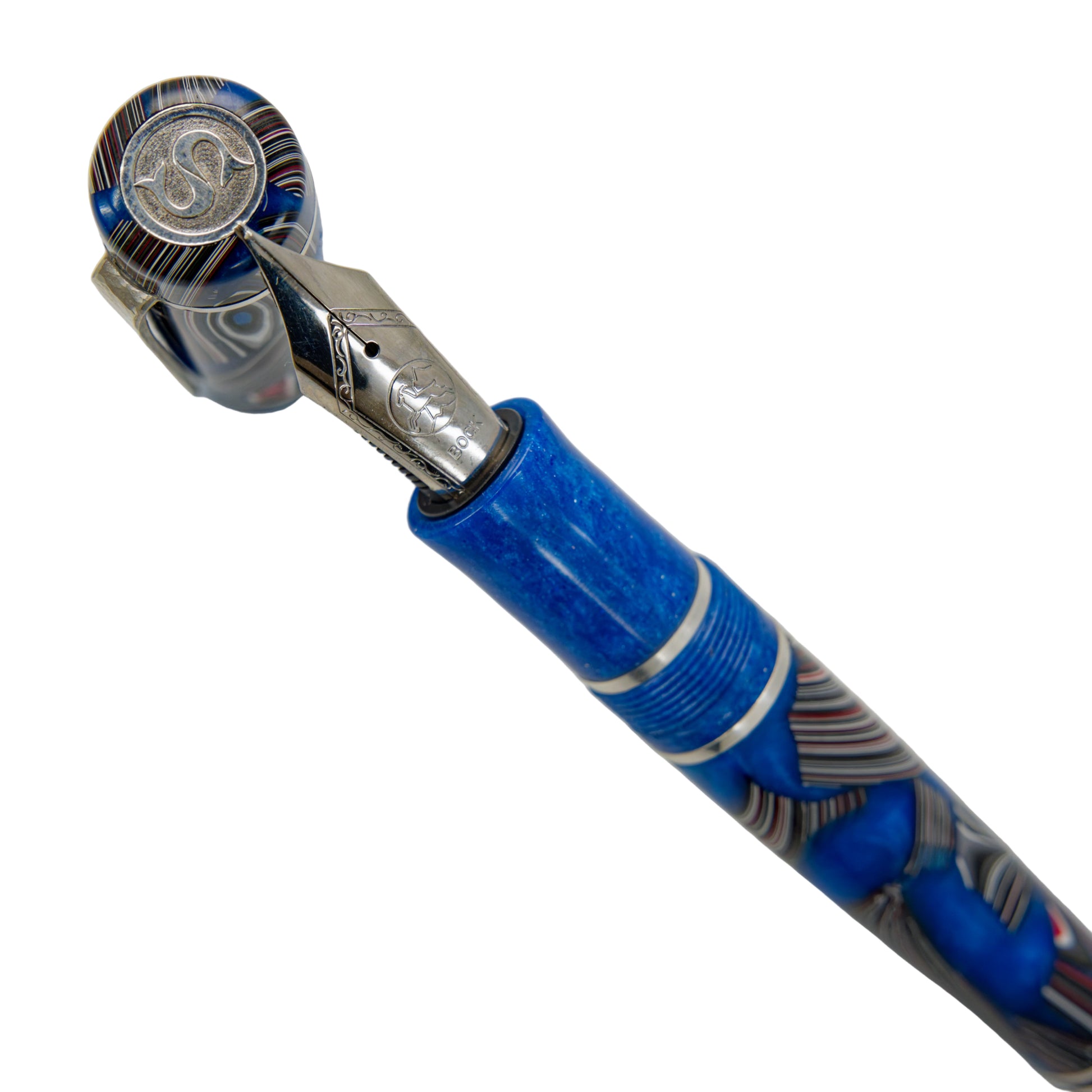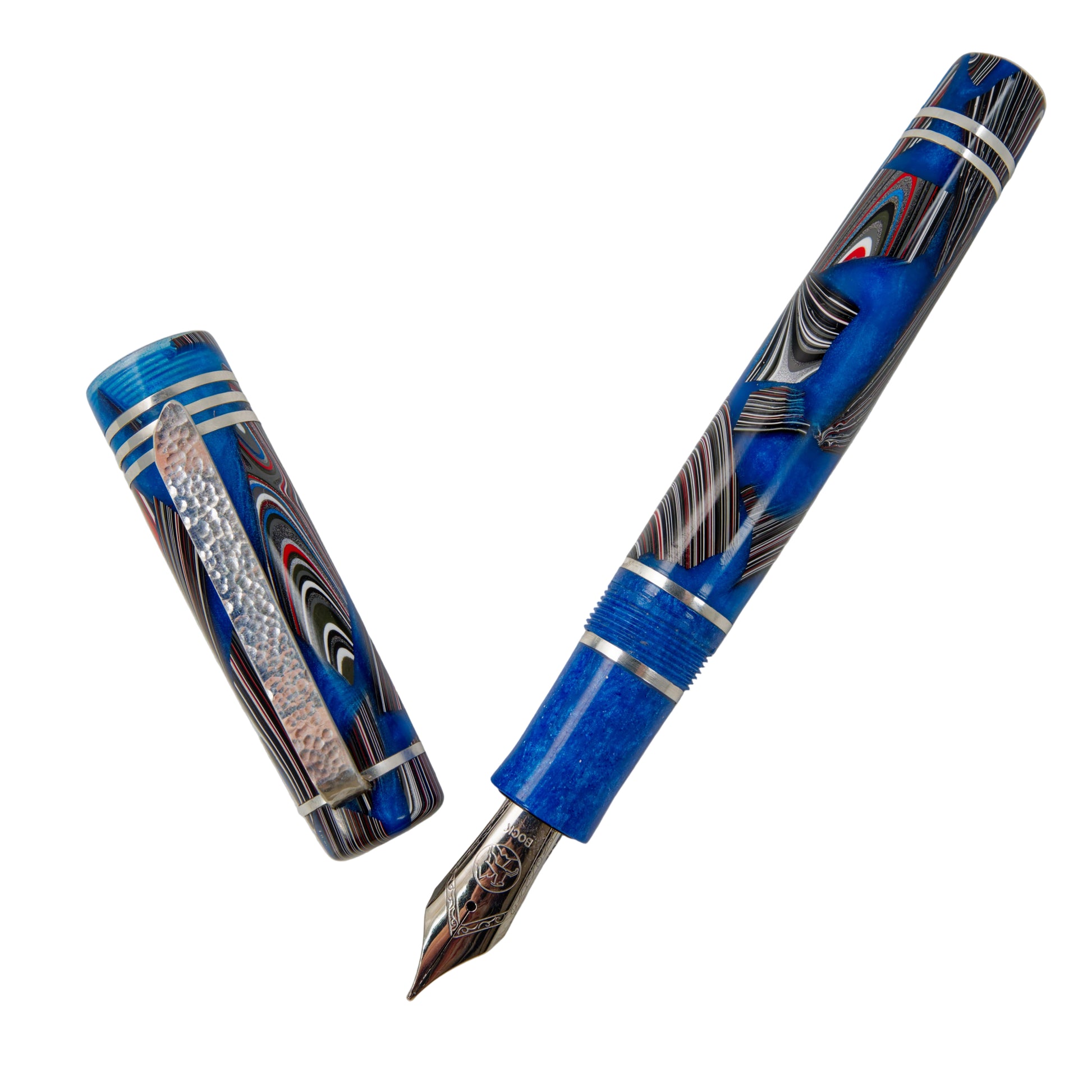 This vintage Fordite is carefully handcrafted and preserved in resin, showcasing the stunning layers of automotive paint slag from decades ago. Made with .940 argentium silver, this pen is both durable and stylish. Indulge in the rich history and unique beauty of a byproduct that was once discarded, and add this remarkable piece to your collection. This pen is fitted with a size eight nib, please contact for available option. Don't miss out on the opportunity to own a piece of automotive history.