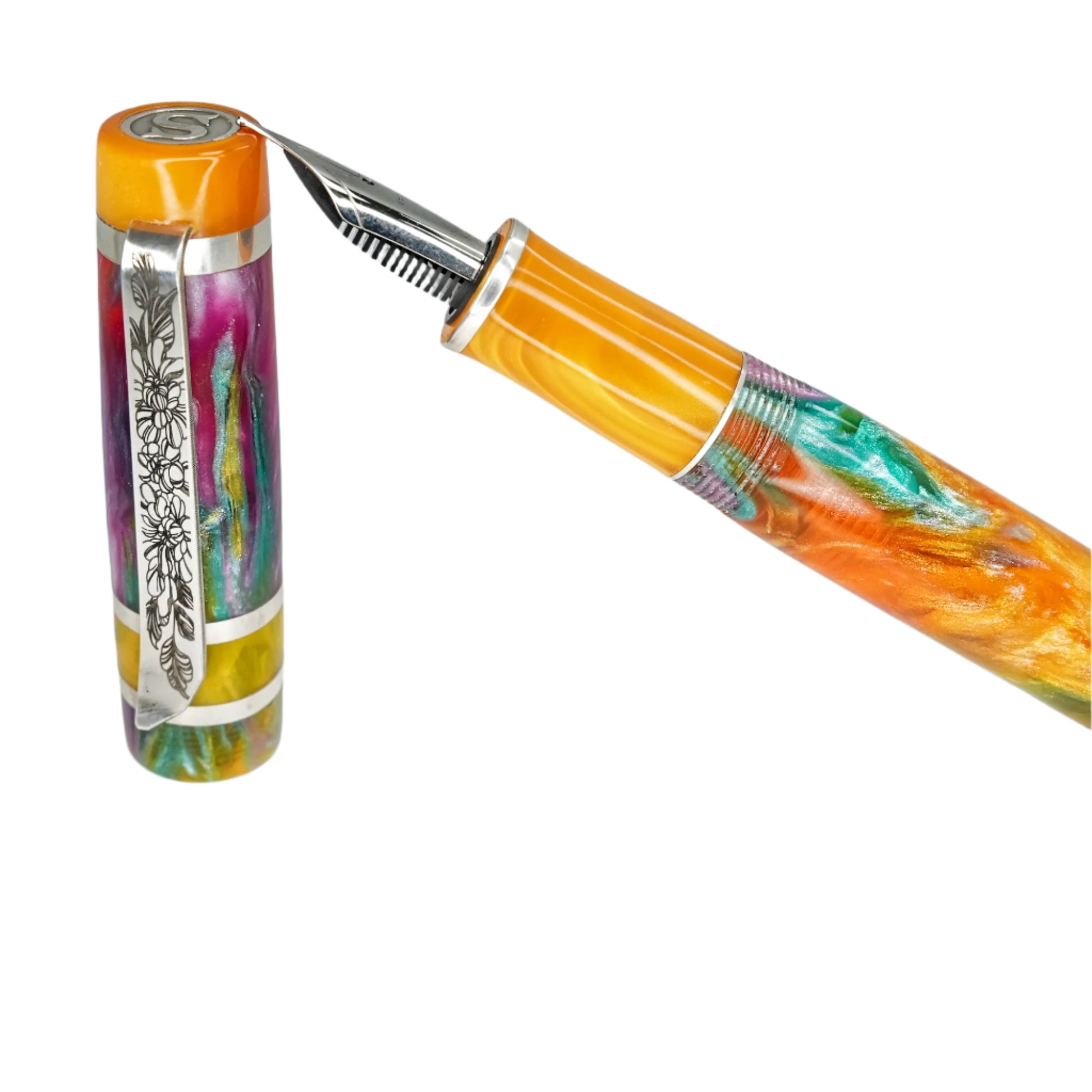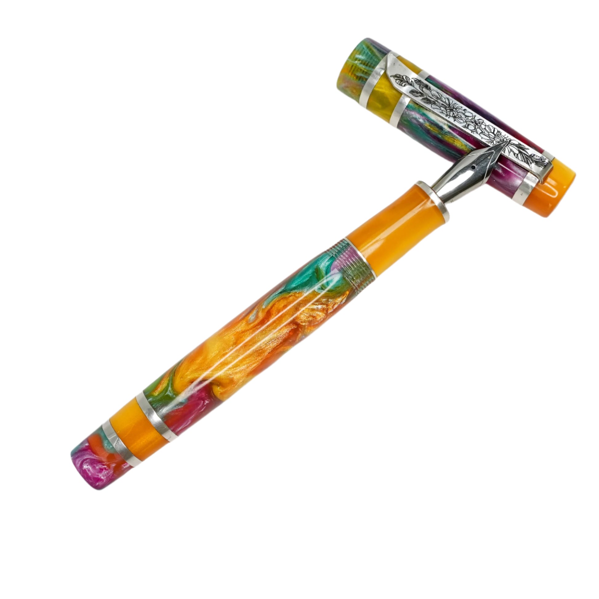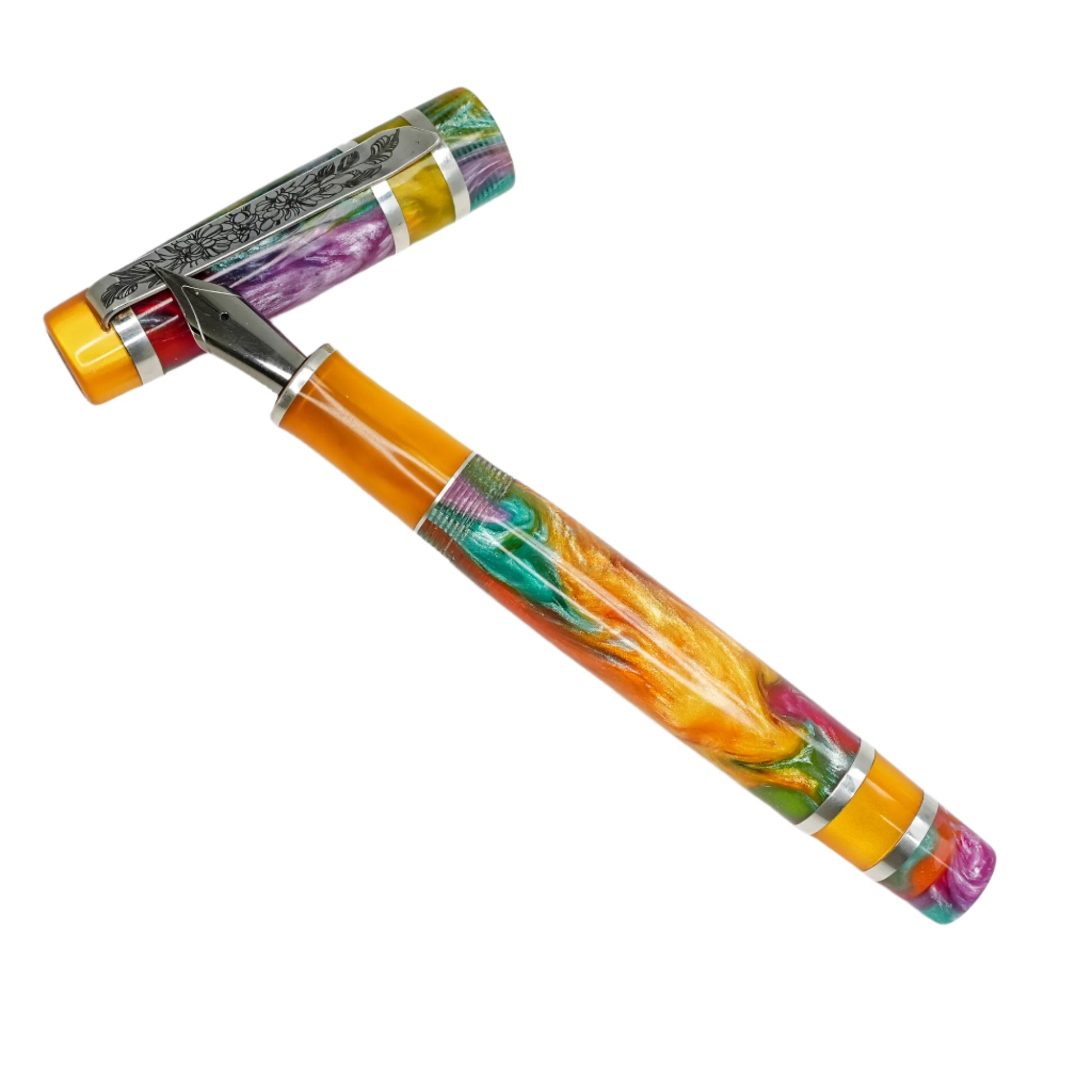 Experience the exquisite beauty and exceptional craftsmanship with Silverburl pens. Our commitment to quality and durability is reflected in every aspect of this pen, from the elegant polished steel Jowo nib size 6 to the option to choose from various nib tip sizes. At 145m/m long including the cap and 135m/m from nib to body end, with a body diameter of 15m/m and a 14m/m thread, and a cap diameter of 16m/m, this pen is perfectly sized for comfortable writing. However, what truly makes this pen stand out is the use of Argentium .940 silver, known for its superior brightness and durability compared to traditional .925 sterling silver. Not only is it highly tarnish resistant, but it also has antibacterial properties and is free from nickel, making it an ideal choice for those with allergies or sensitive skin. Elevate your writing experience with this superior fountain pen.