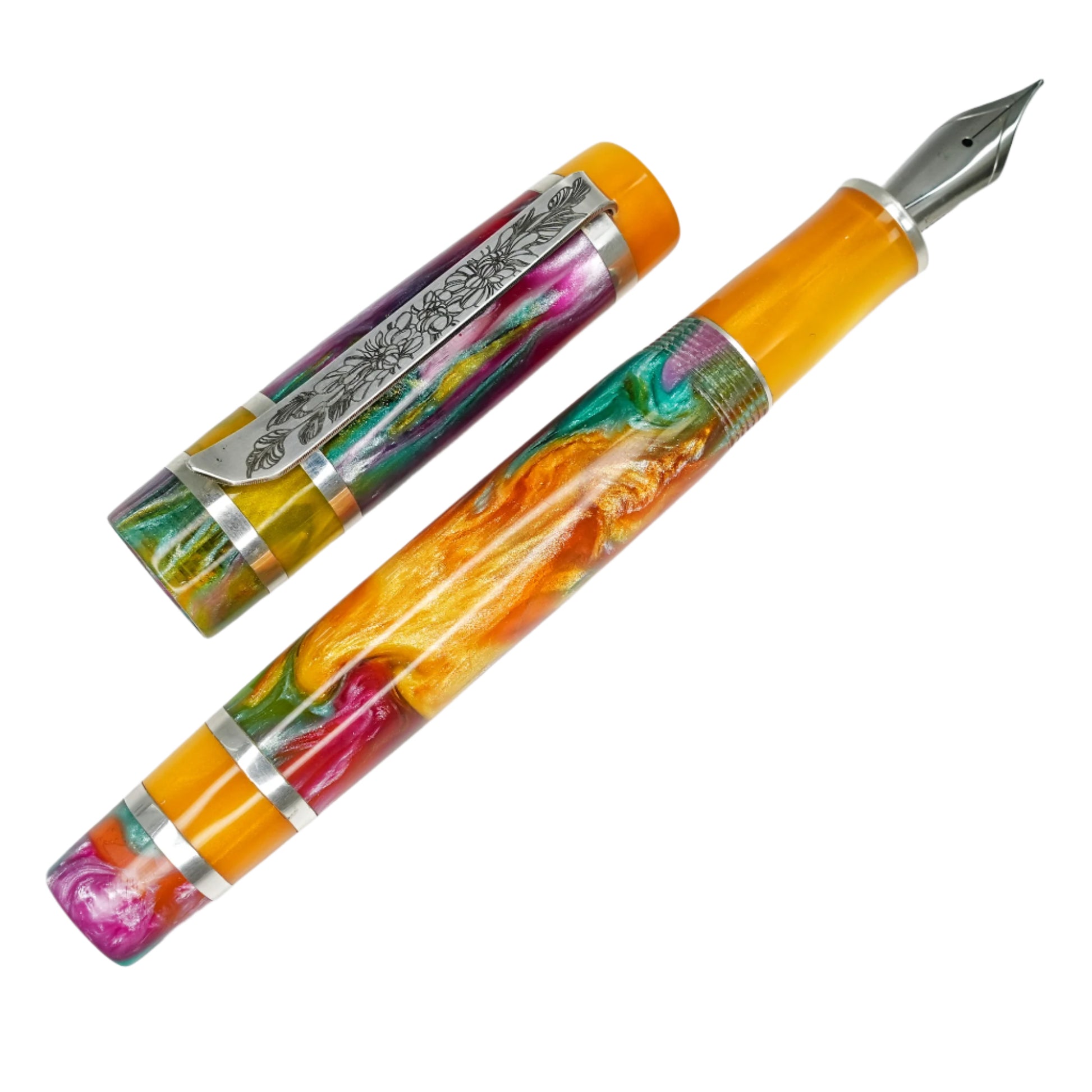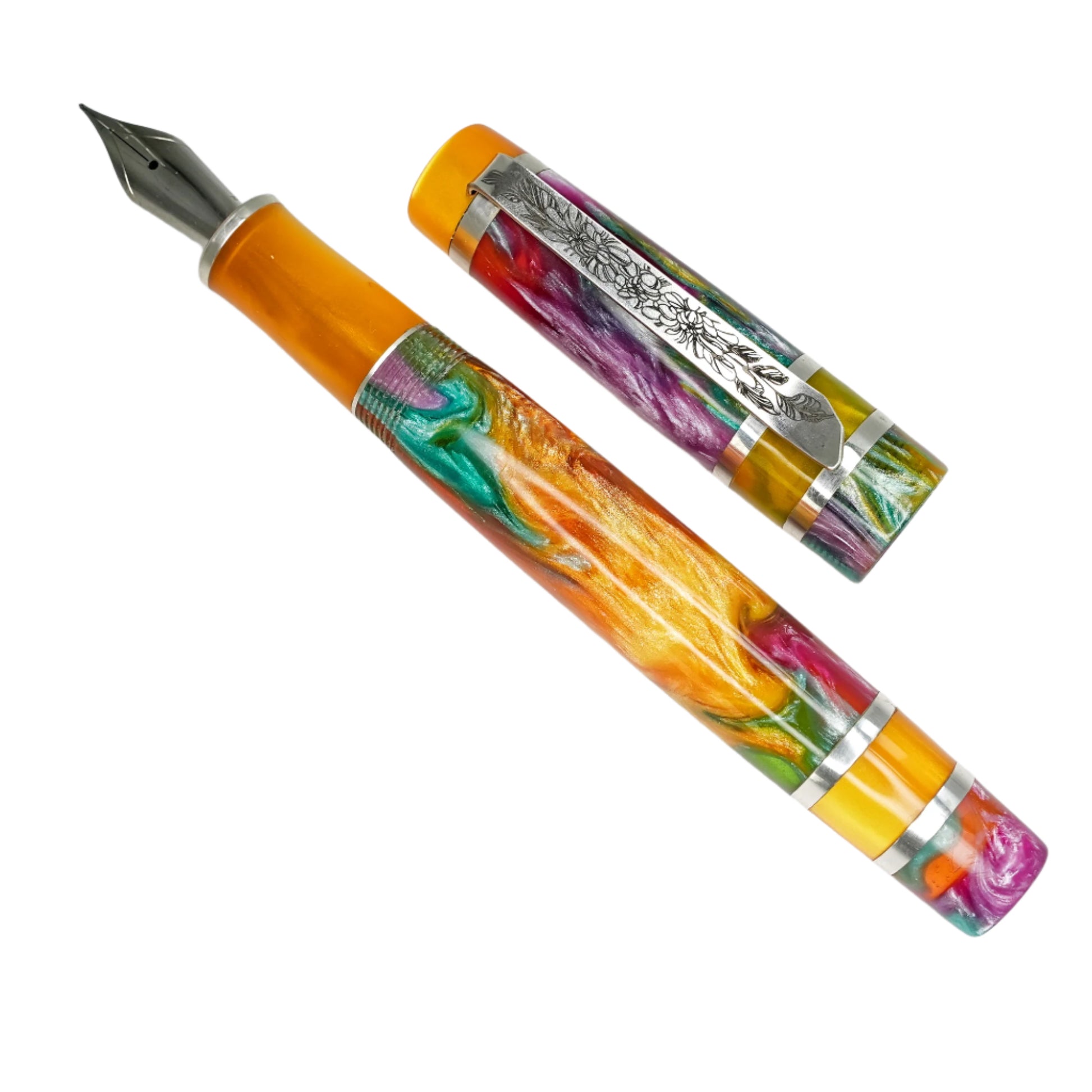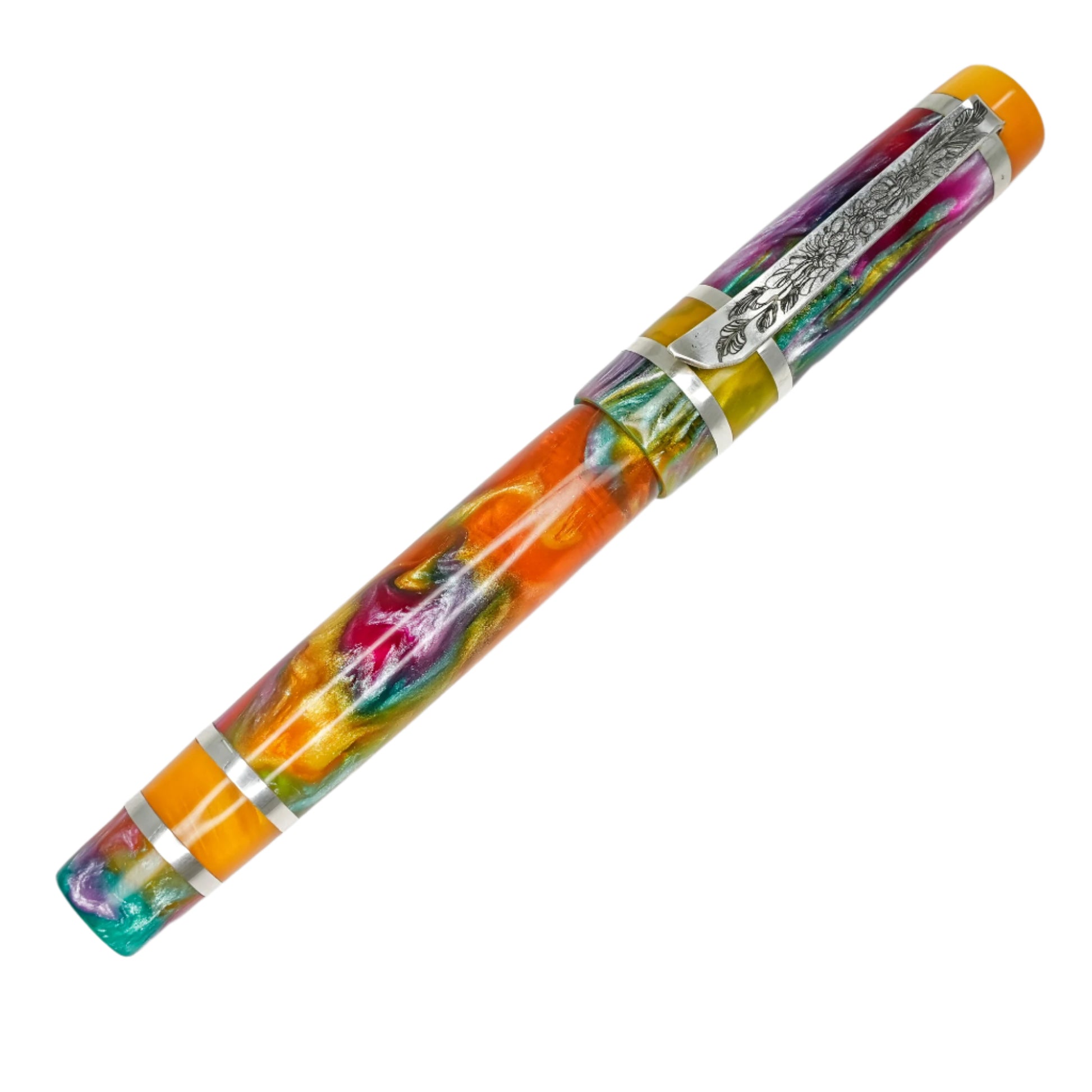 Experience the exquisite beauty and exceptional craftsmanship with Silverburl pens. Our commitment to quality and durability is reflected in every aspect of this pen, from the elegant polished steel Jowo nib size 6 to the option to choose from various nib tip sizes. At 145m/m long including the cap and 135m/m from nib to body end, with a body diameter of 15m/m and a 14m/m thread, and a cap diameter of 16m/m, this pen is perfectly sized for comfortable writing. However, what truly makes this pen stand out is the use of Argentium .940 silver, known for its superior brightness and durability compared to traditional .925 sterling silver. Not only is it highly tarnish resistant, but it also has antibacterial properties and is free from nickel, making it an ideal choice for those with allergies or sensitive skin. Elevate your writing experience with this superior fountain pen.
