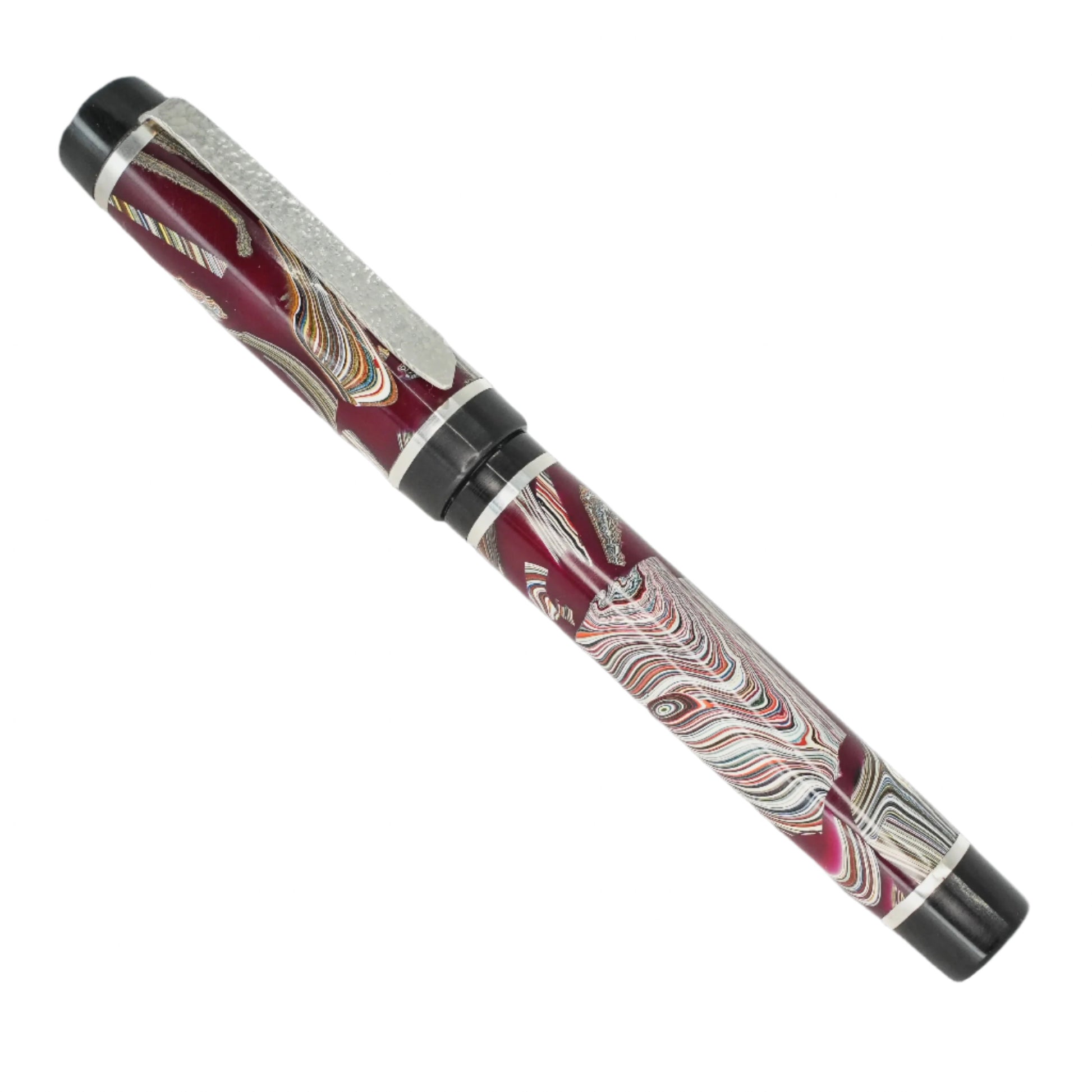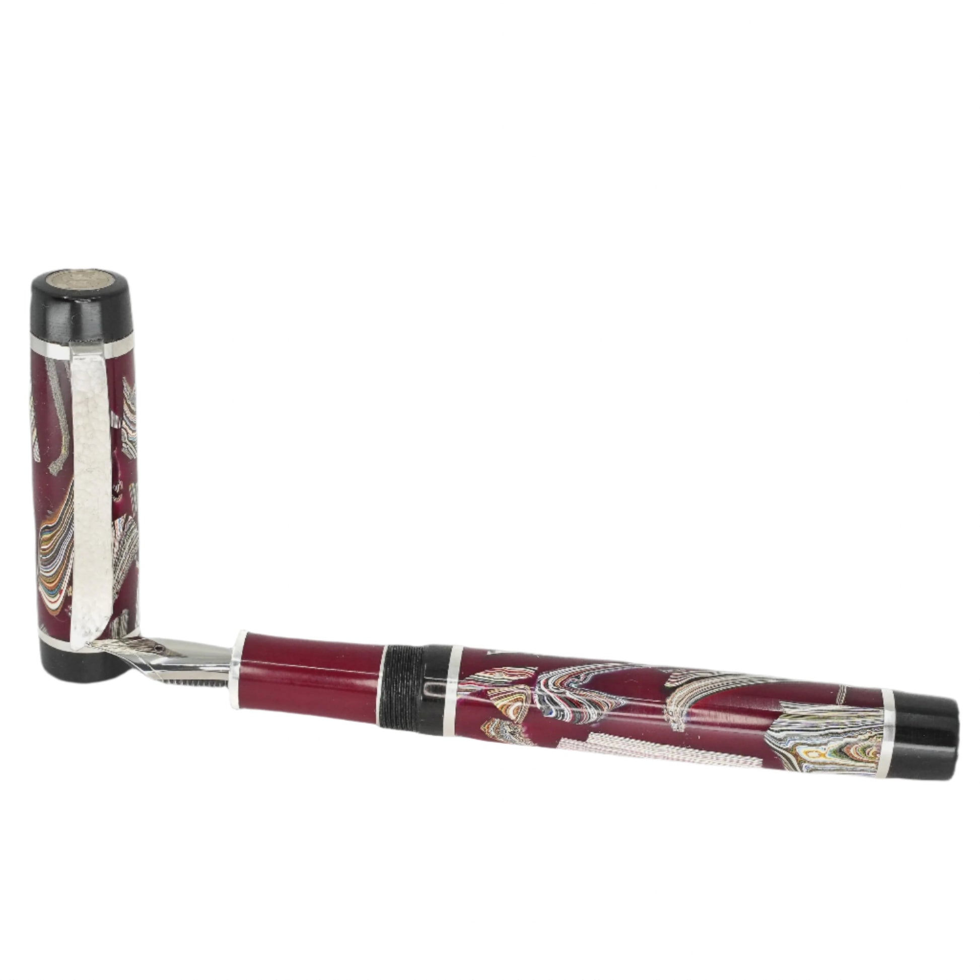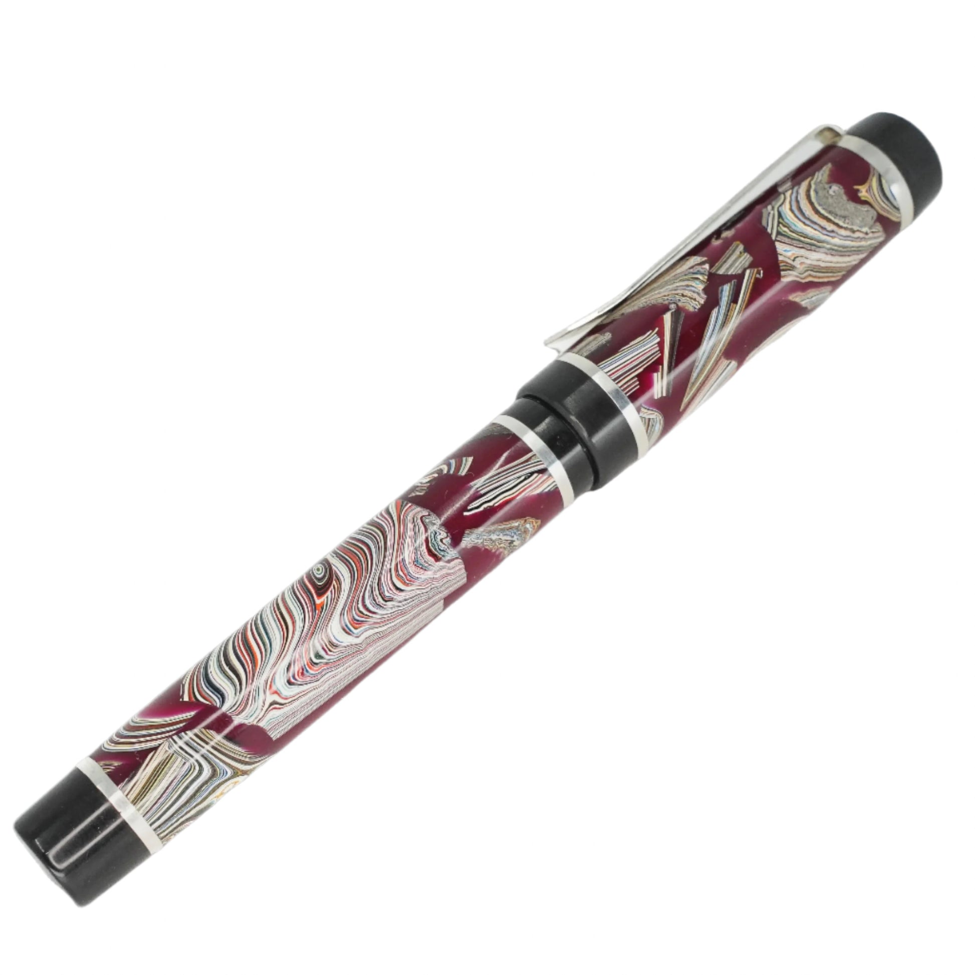 This vintage Fordite is carefully handcrafted and preserved in resin, showcasing the stunning layers of automotive paint slag from decades ago. Made with .940 argentium silver and a size six Jowo nib, this pen is both durable and stylish. Indulge in the rich history and unique beauty of a byproduct that was once discarded, and add this remarkable piece to your collection. Choose your preferred nib size before checkout and enjoy the smooth ink filling system with a Schmidt K5 converter. Don't miss out on the opportunity to own a piece of automotive history
