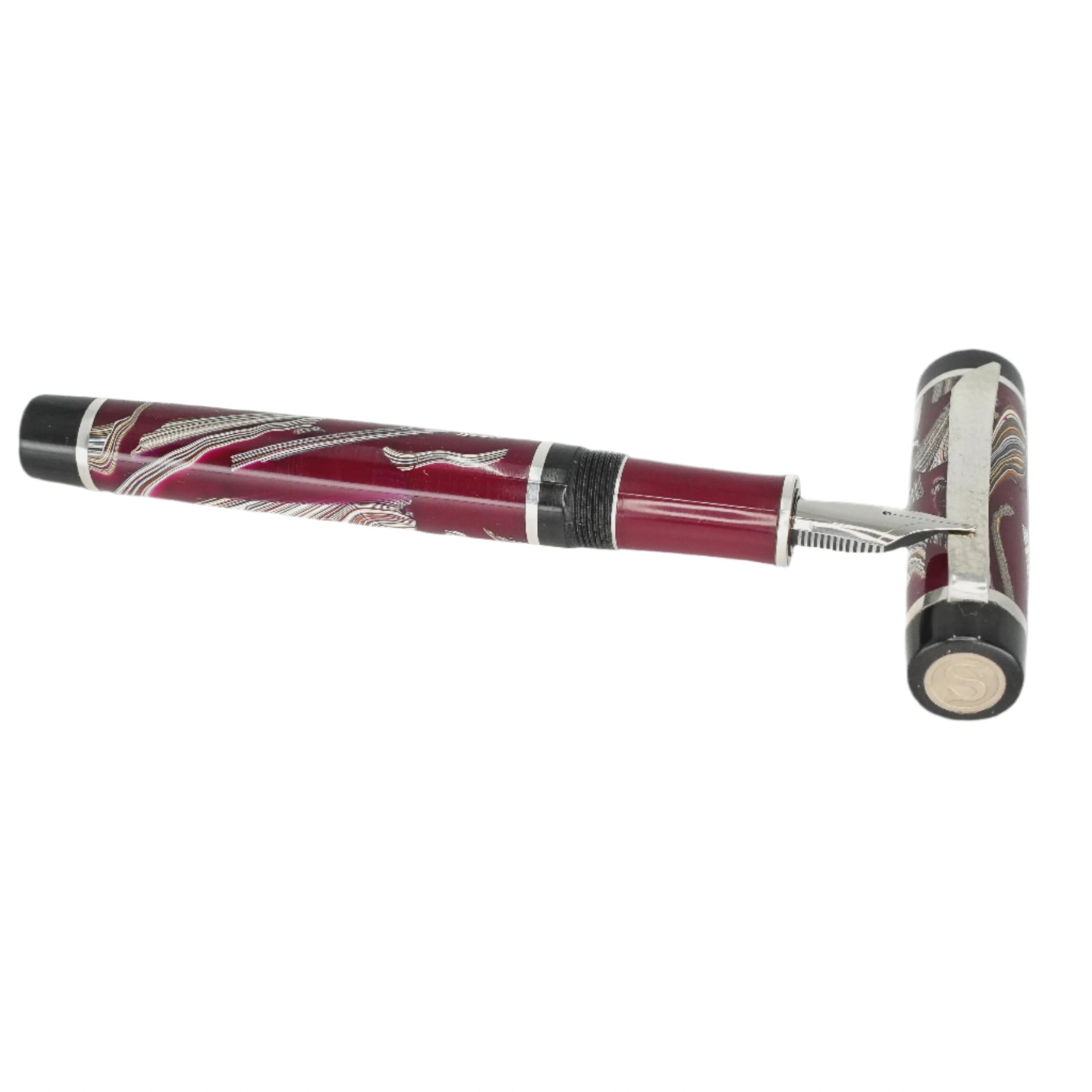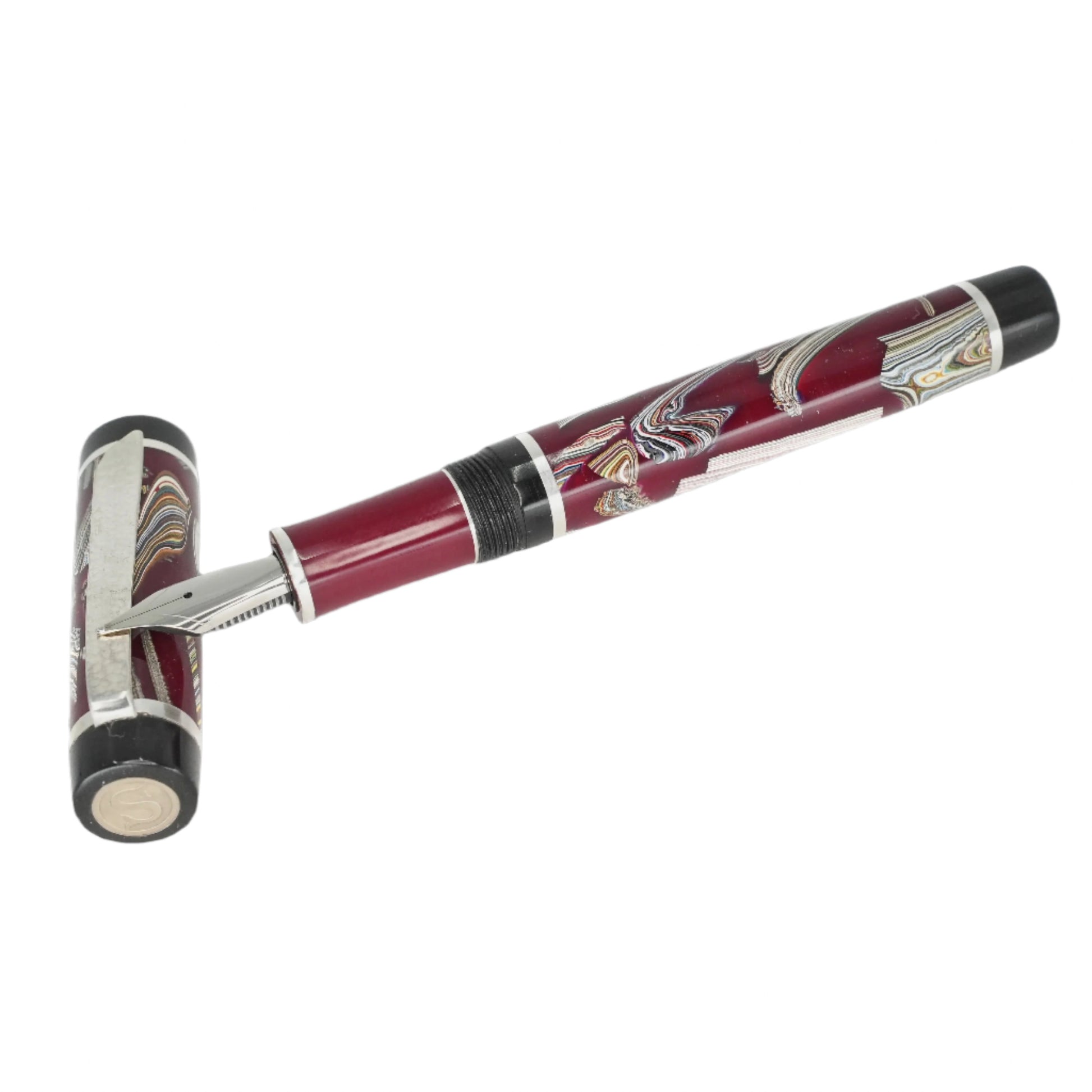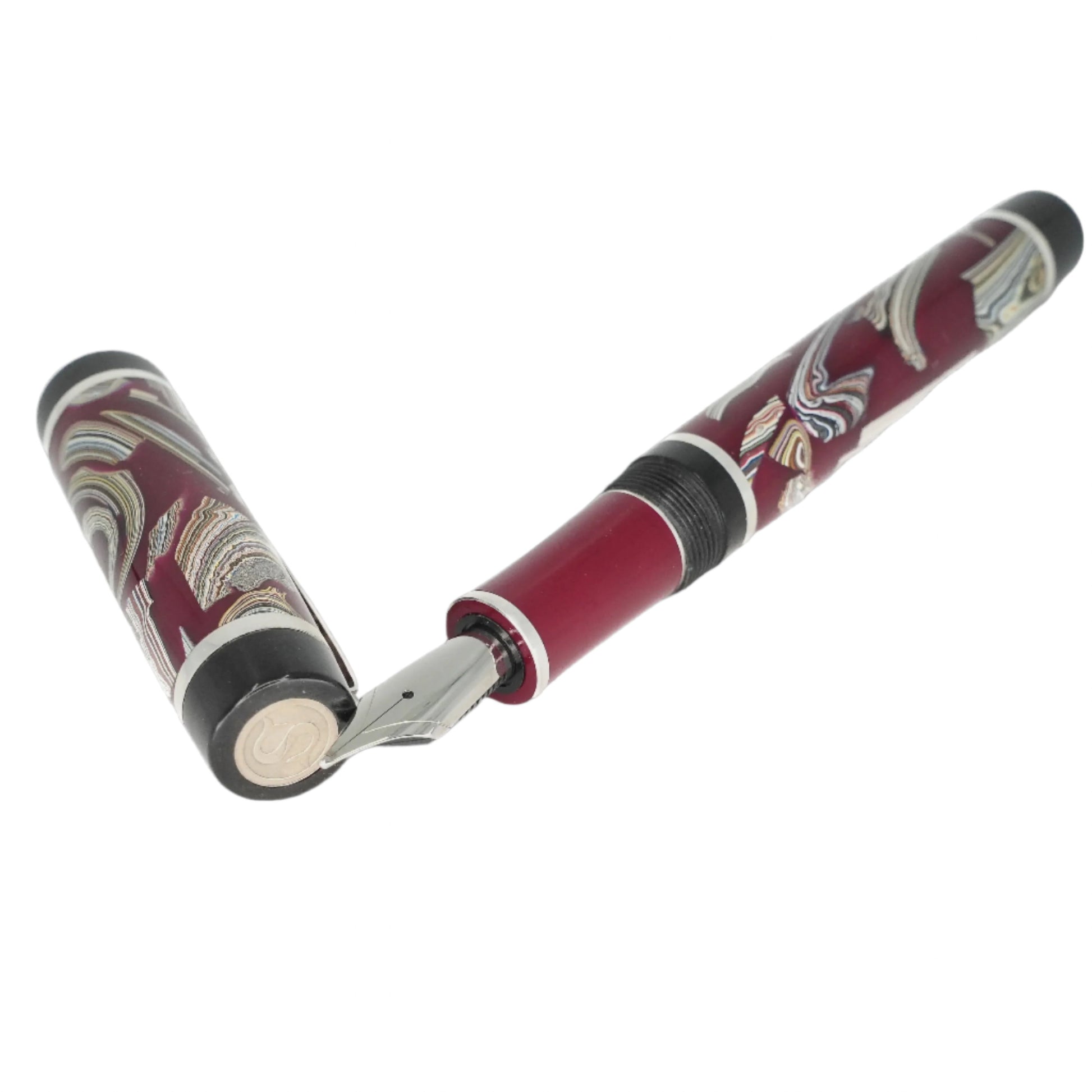This vintage Fordite is carefully handcrafted and preserved in resin, showcasing the stunning layers of automotive paint slag from decades ago. Made with .940 argentium silver and a size six Jowo nib, this pen is both durable and stylish. Indulge in the rich history and unique beauty of a byproduct that was once discarded, and add this remarkable piece to your collection. Choose your preferred nib size before checkout and enjoy the smooth ink filling system with a Schmidt K5 converter. Don't miss out on the opportunity to own a piece of automotive history