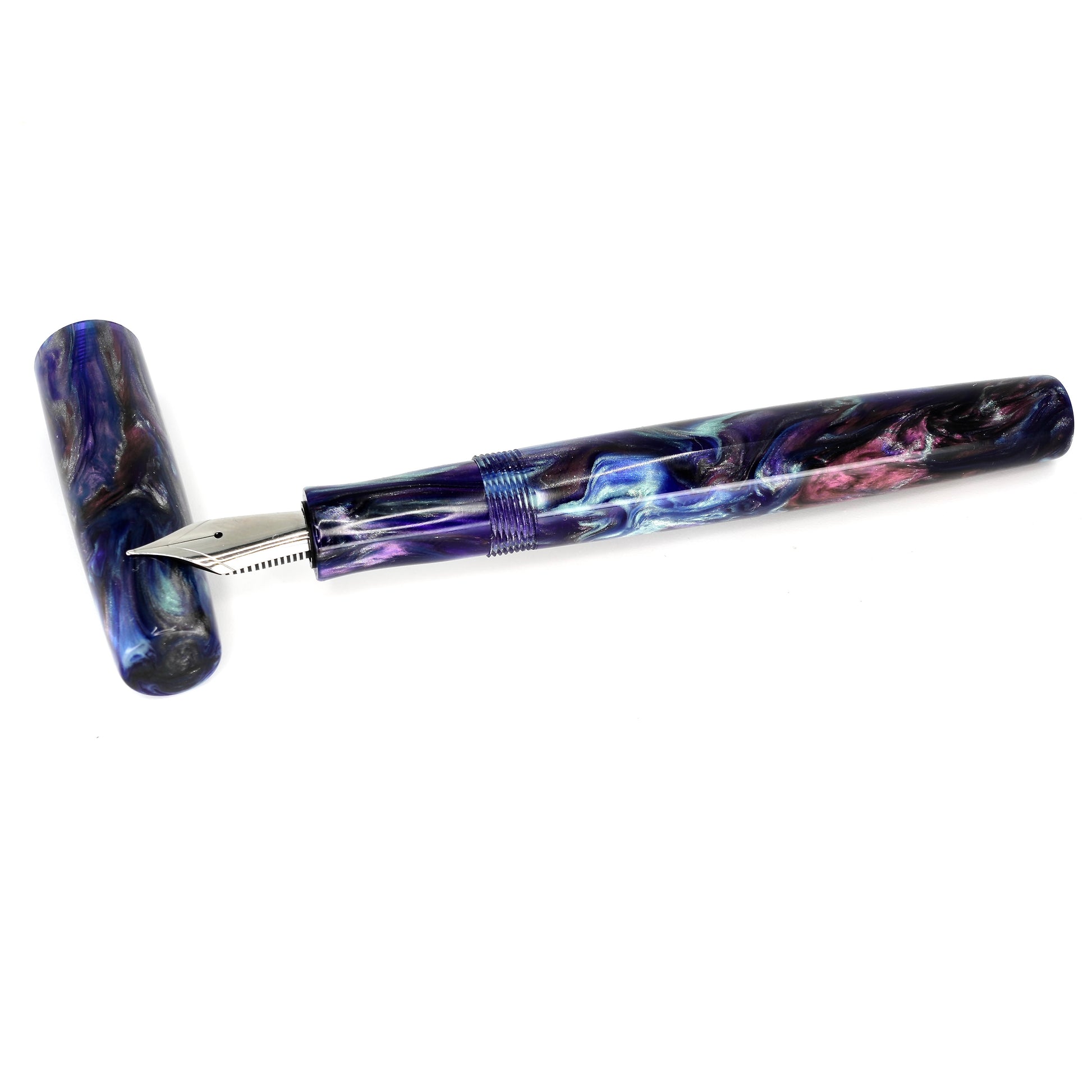 Presenting the stunning Stepless 14mm pen from Silver Burl Pens. Part of the Simply Elegant series, this pen is made for writers who appreciate both comfort and style. Its sleek design is perfect for carrying in a pocket or bag, or displaying on a desk. Each pen is carefully crafted to the highest standards and includes a size six Jowo nib and Schmidt K5 ink converter. The polished steel nib is offered in different tip sizes, and other nib options are available by contacting john@silverburlpens.com.