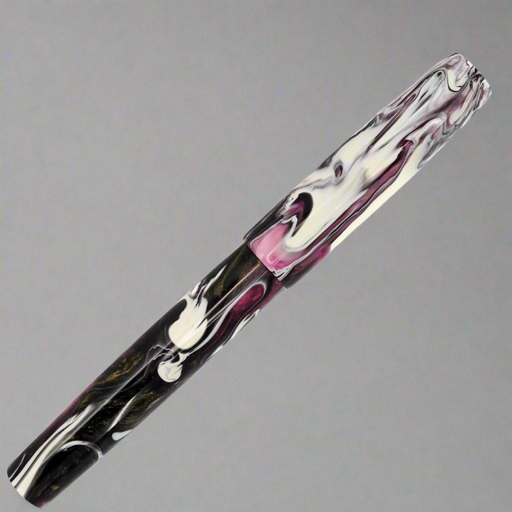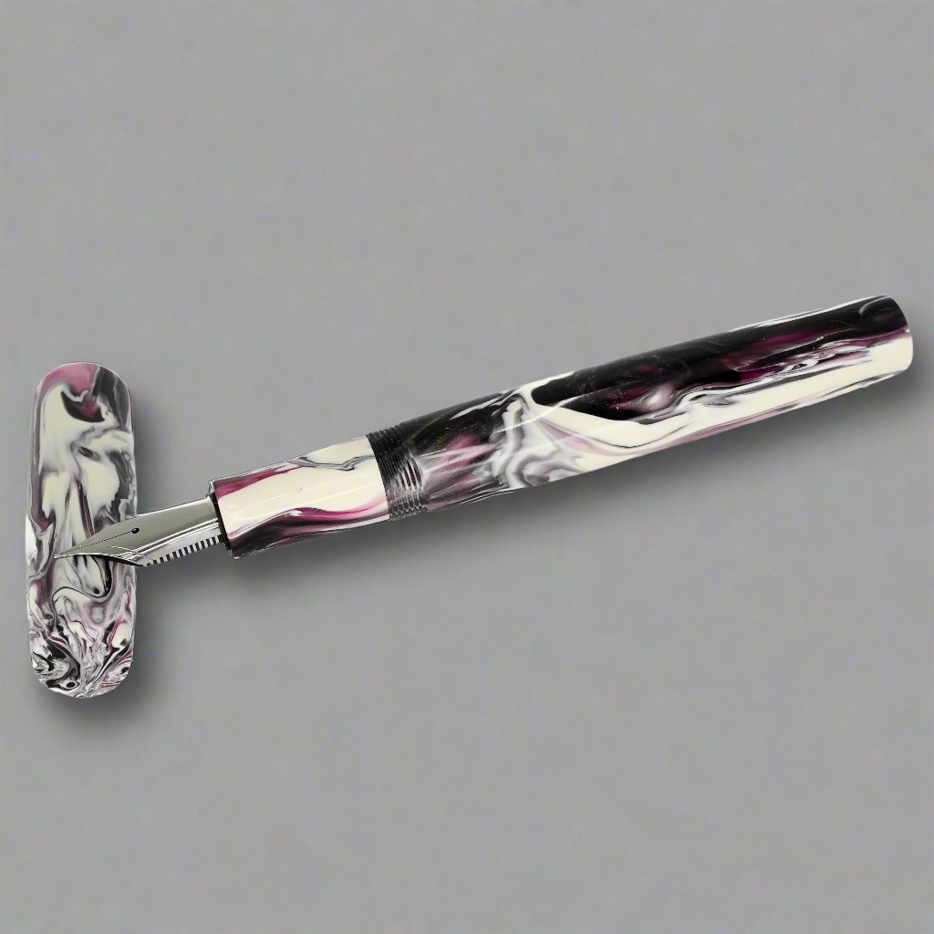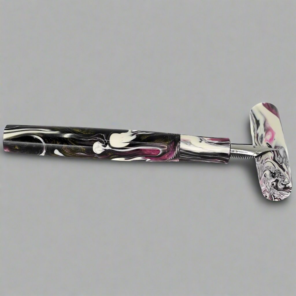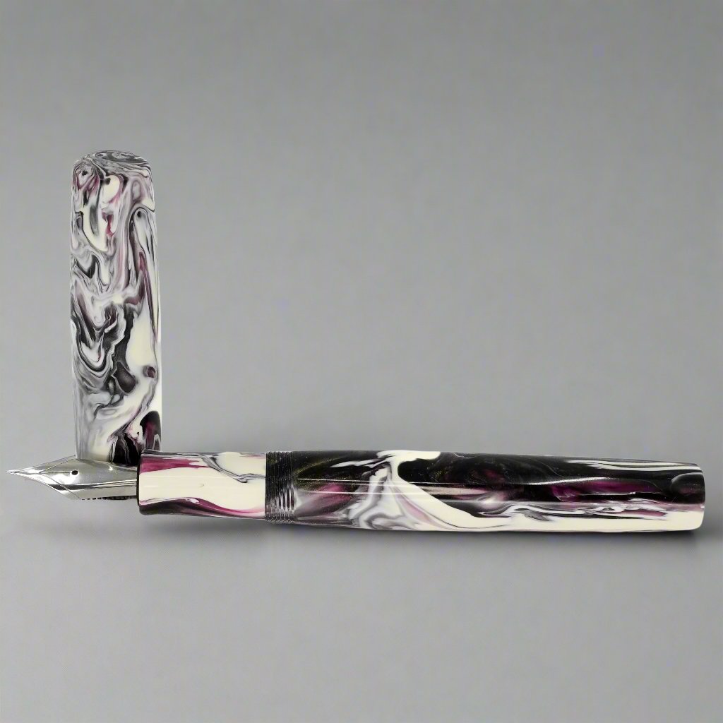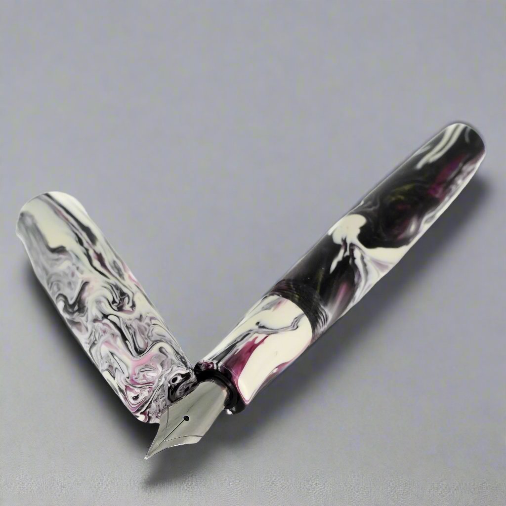 Presenting the stunning Stepless 14mm pen from Silver Burl Pens. Part of the Simply Elegant series, this pen is made for writers who appreciate both comfort and style. Its sleek design is perfect for carrying in a pocket or bag, or displaying on a desk. Each pen is carefully crafted to the highest standards and includes a size six Jowo nib and Schmidt K5 ink converter. The polished steel nib is offered in different tip sizes, and other nib options are available by contacting john@silverburlpens.com.