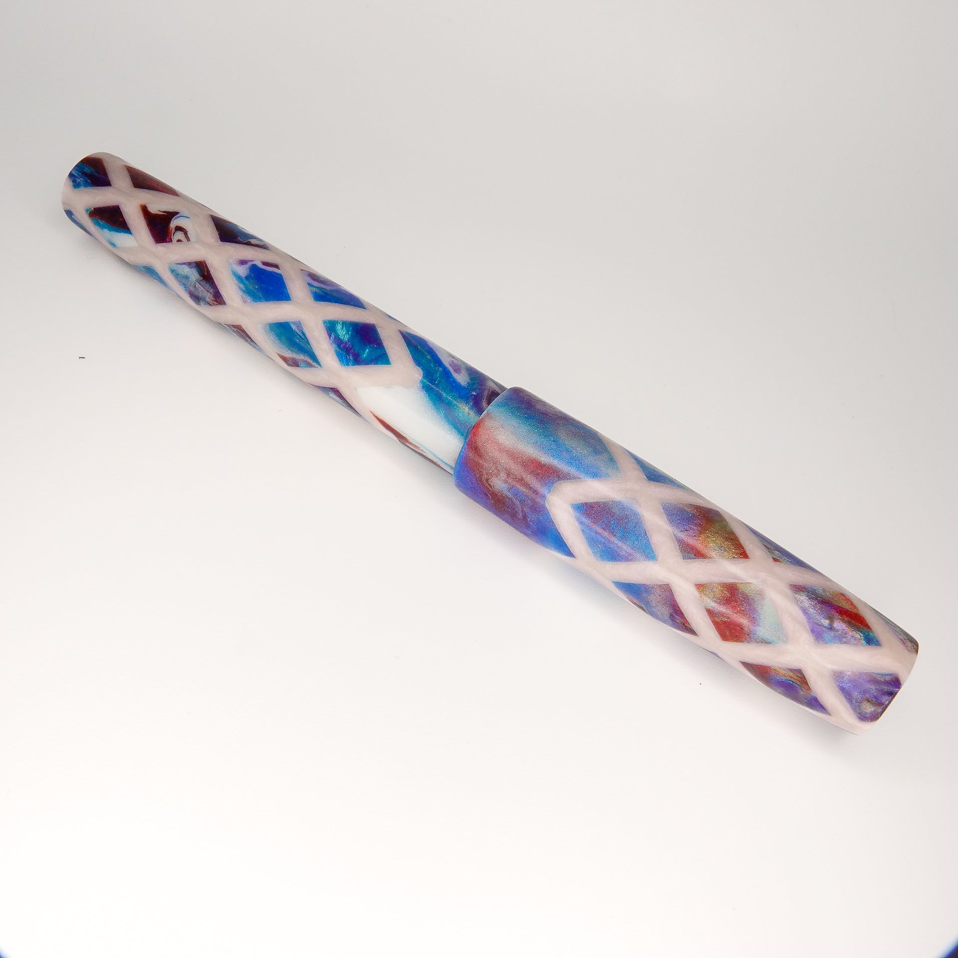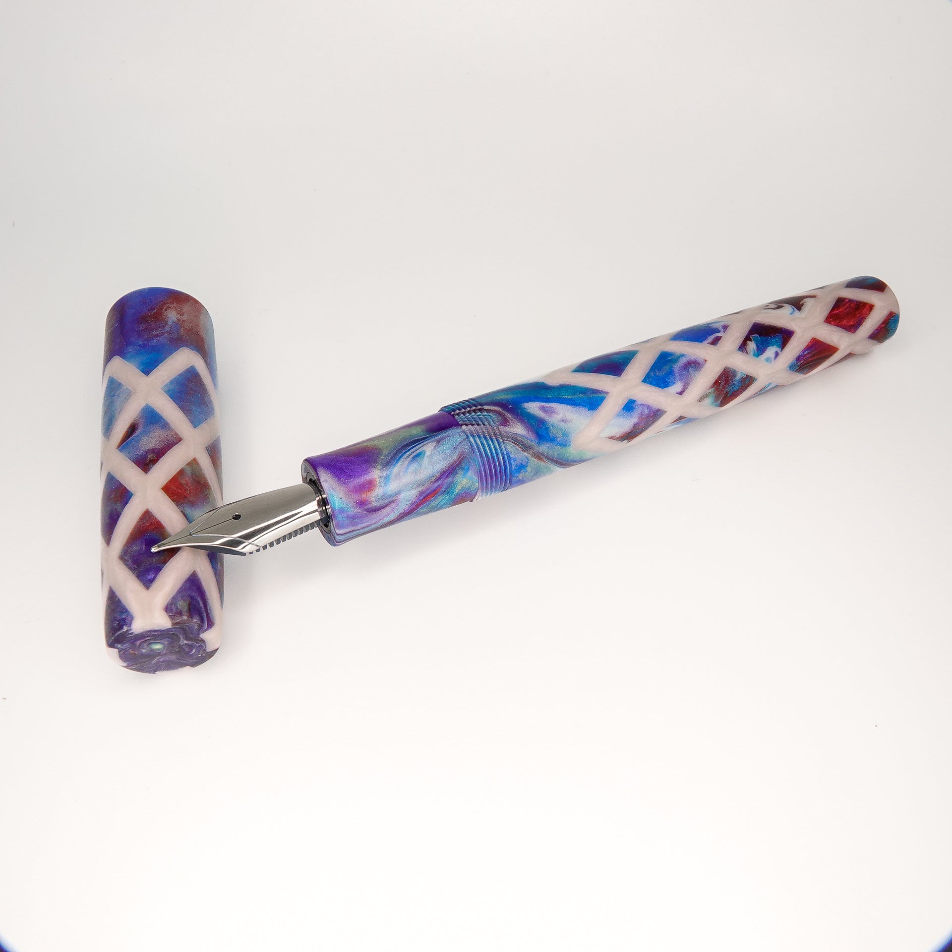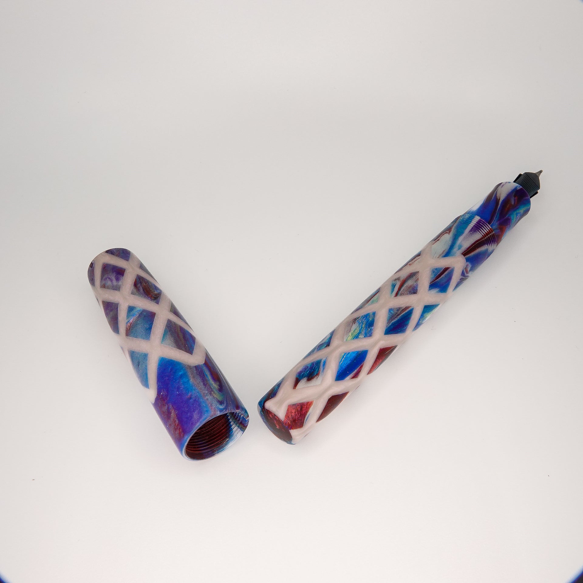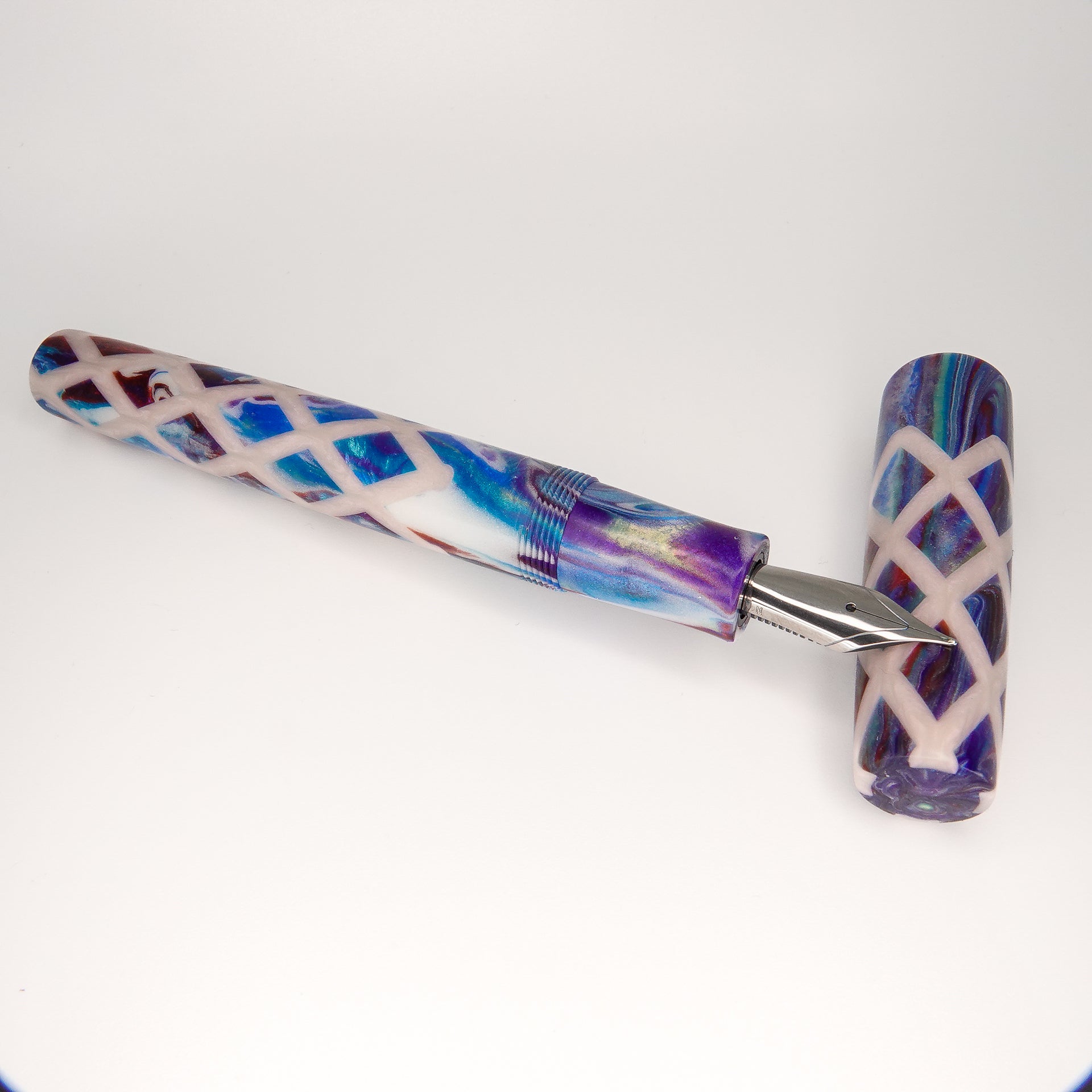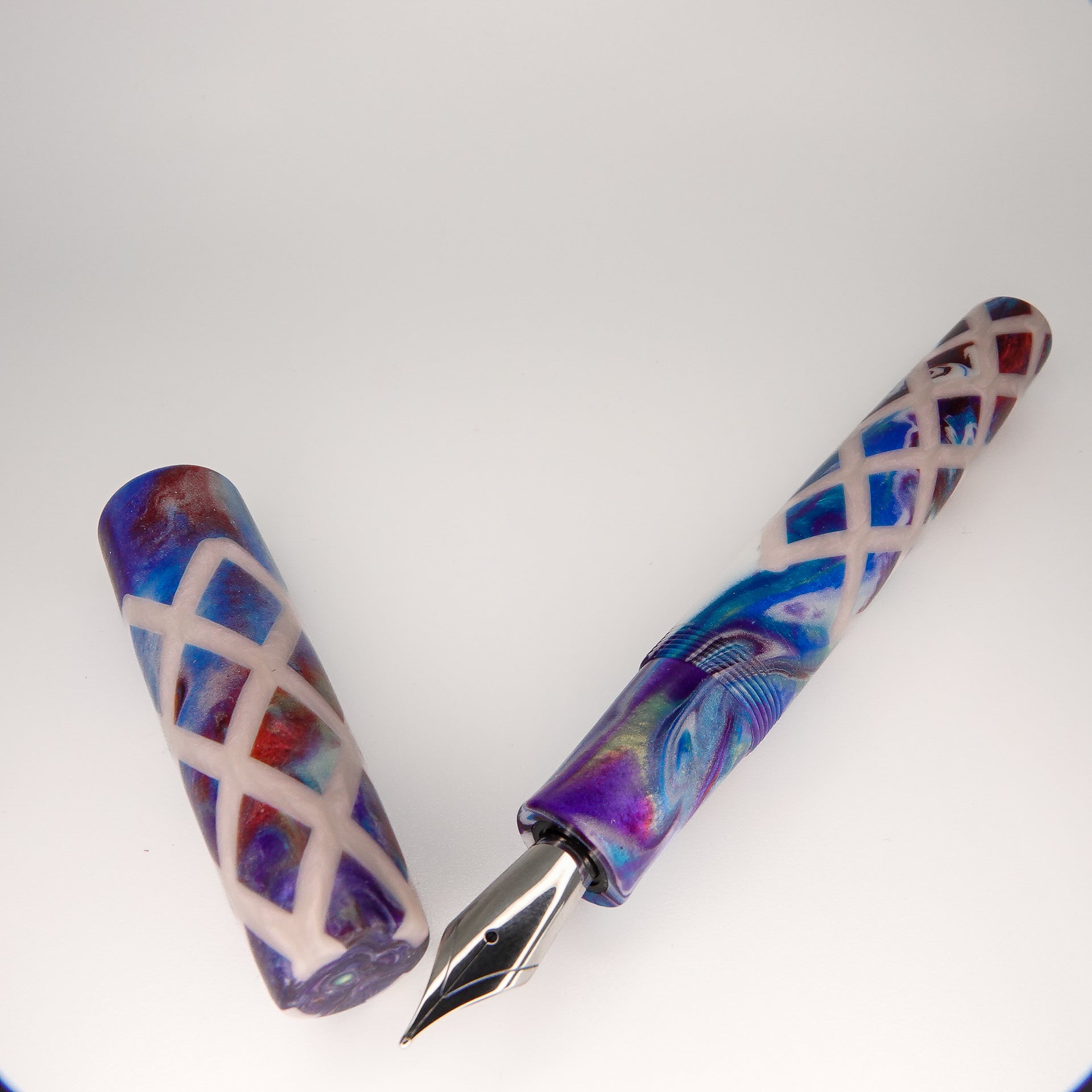 The Simply Elegant series of pens is designed for the discerning writer who values a no-frills pen that is both comfortable to hold and easy to carry. The Harlequin Picasso pen, part of this series, is available in various shapes and sizes, all finished to a high standard. It features a size six Jowo nib and Schmidt K5 ink converter, with the option to upgrade to a polished steel nib in the tip size of your choice. Other nib options are also available upon request.