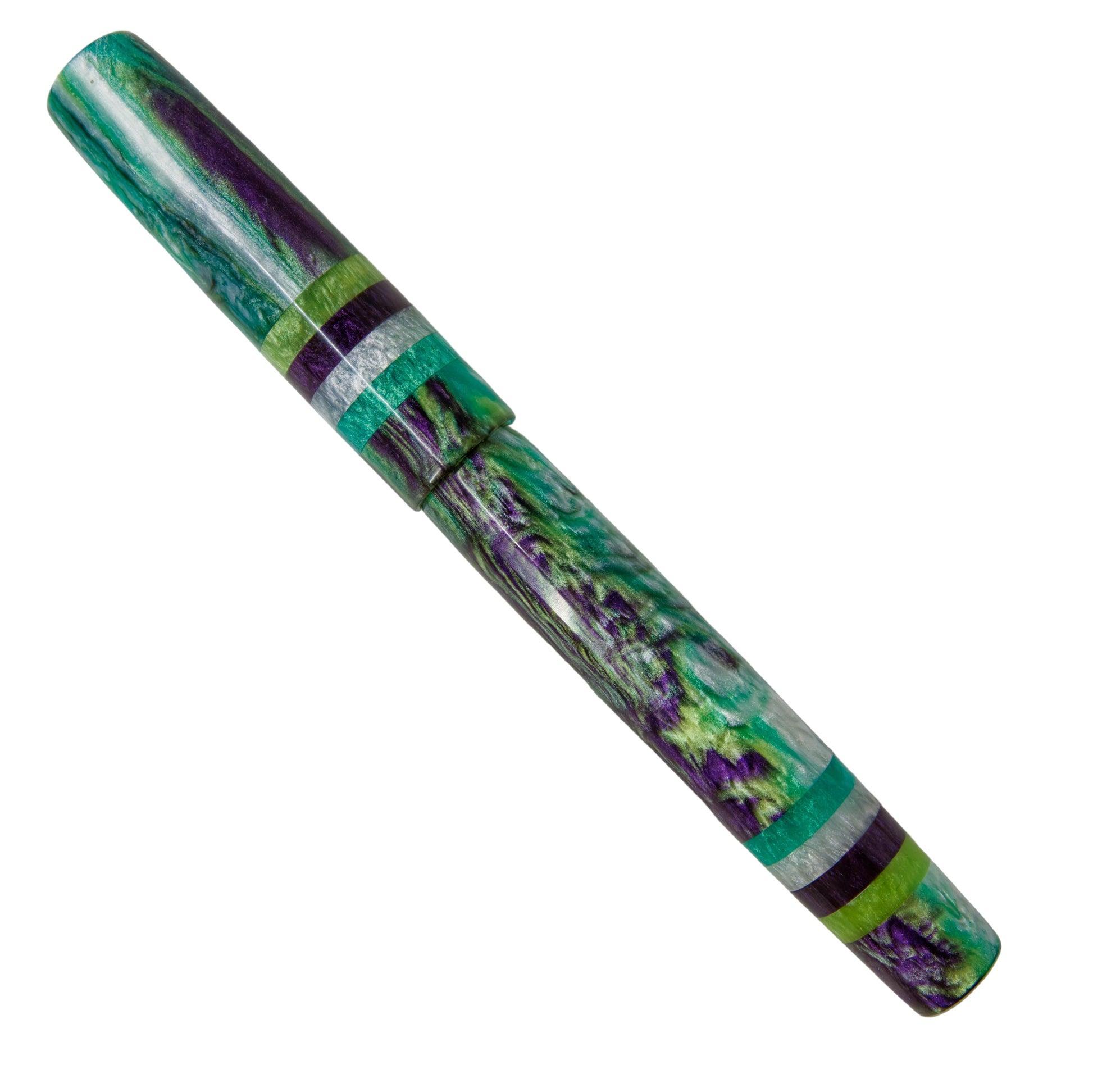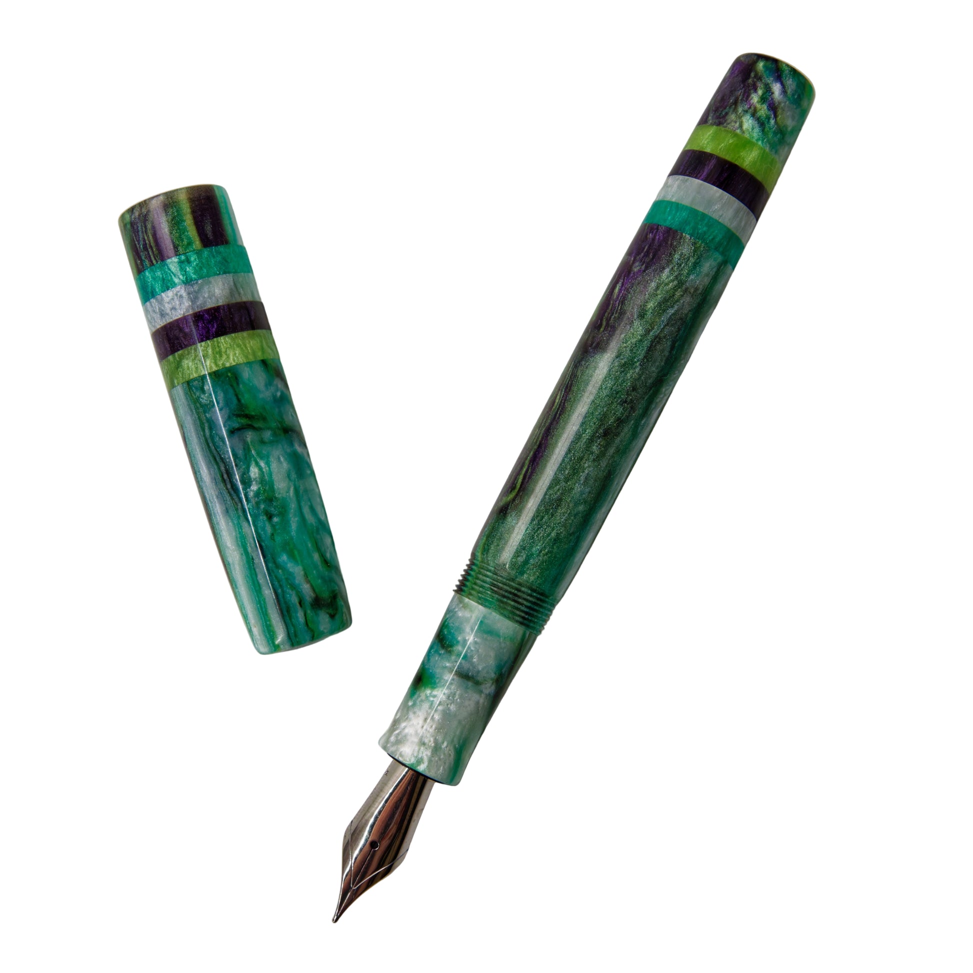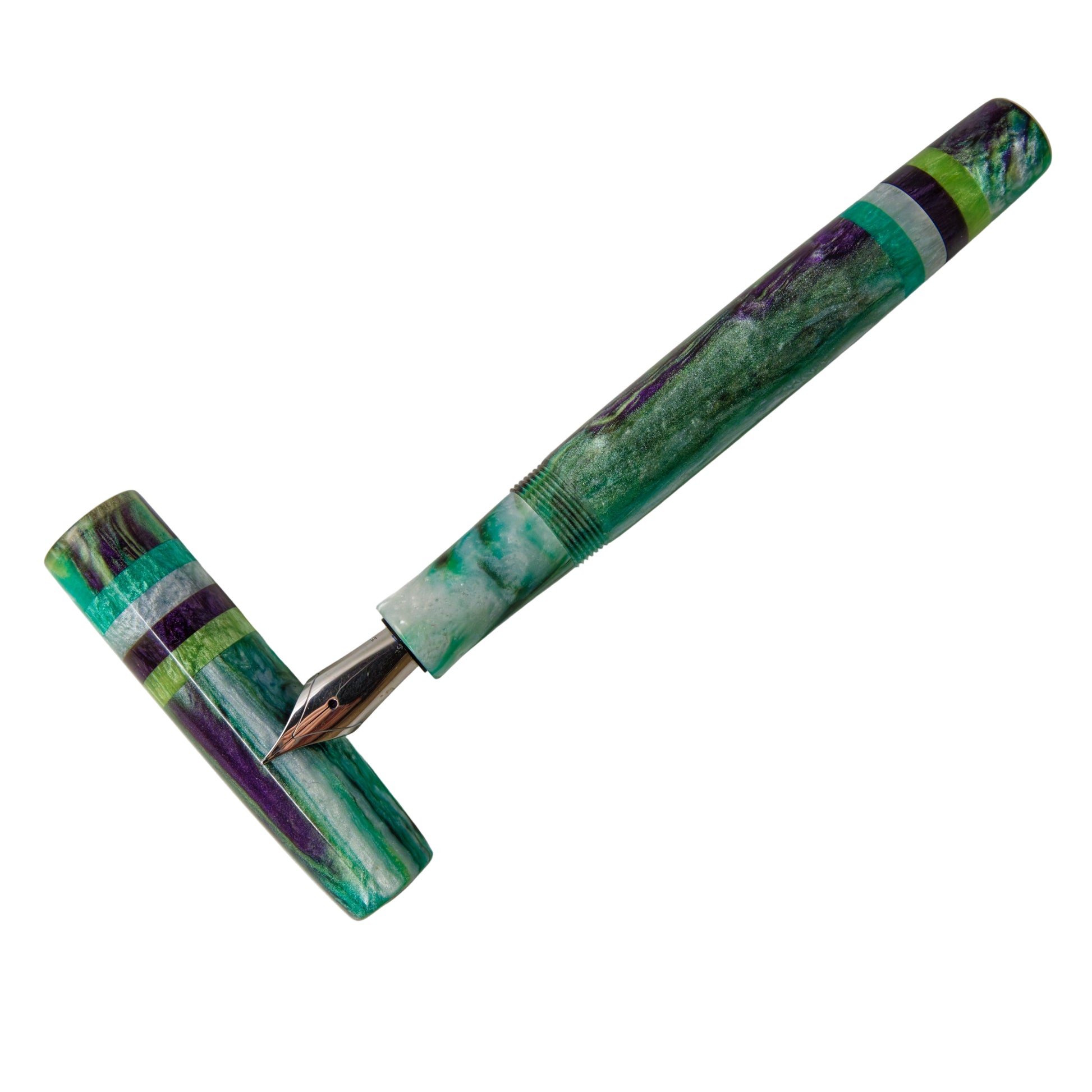 Presenting the stunning 14mm pen from Silver Burl Pens. Part of the Simply Elegant series, this pen is made for writers who appreciate both comfort and style. Its sleek design is perfect for carrying in a pocket or bag, or displaying on a desk. Each pen is carefully crafted to the highest standards and includes a size six Jowo nib and Schmidt K5 ink converter. The polished steel nib is offered in different tip sizes, and other nib options are available.
