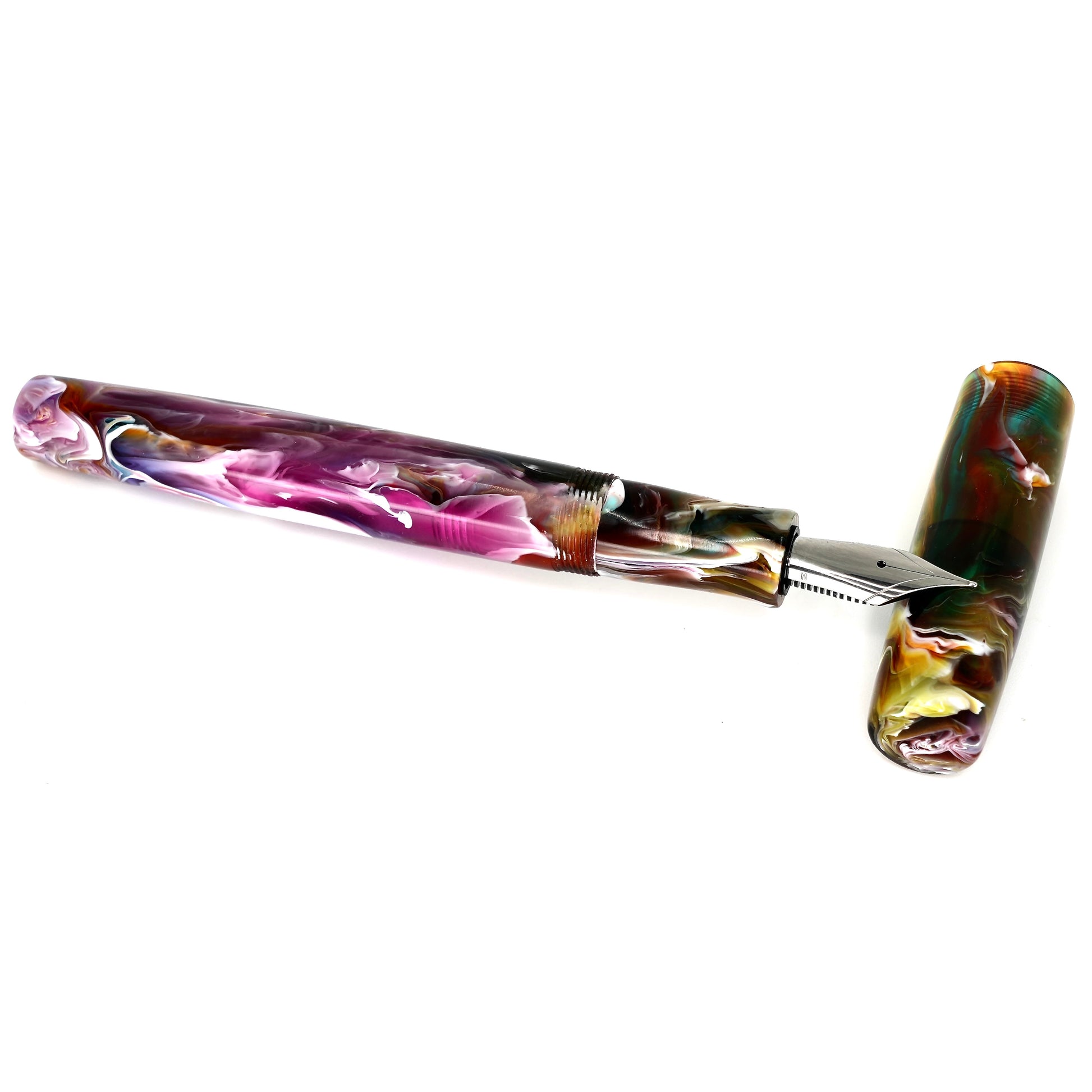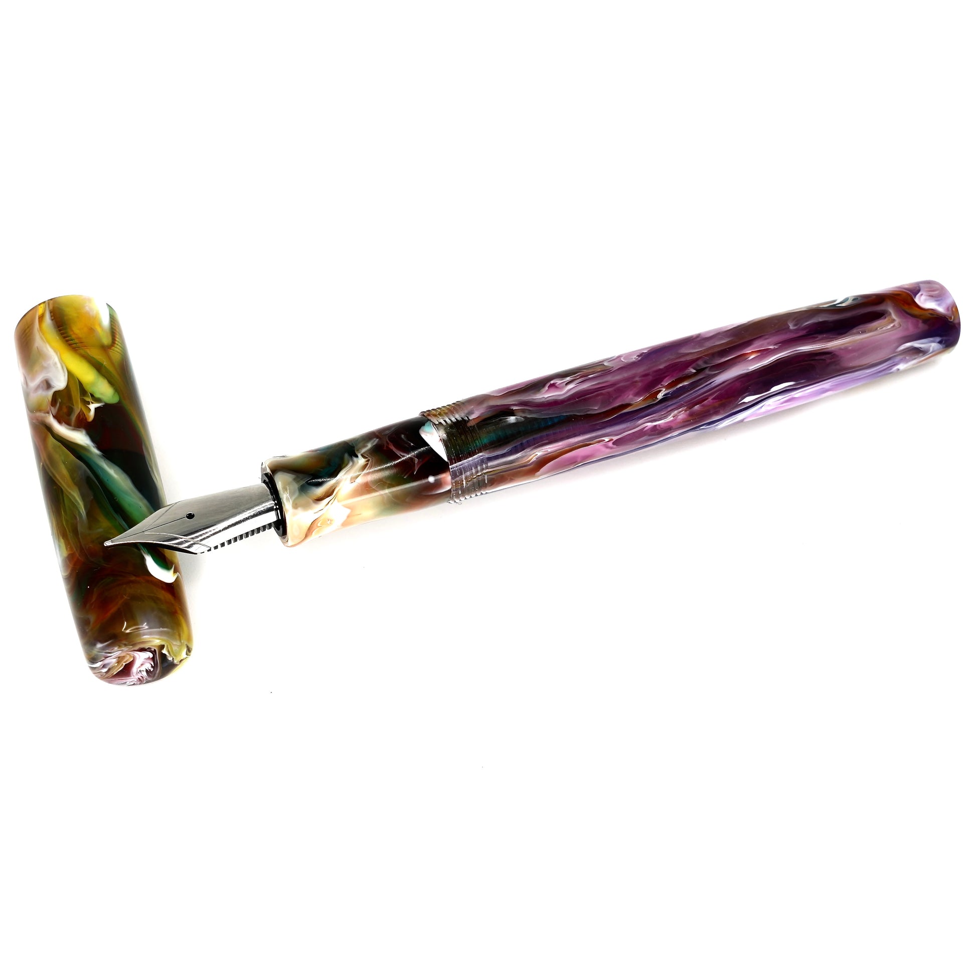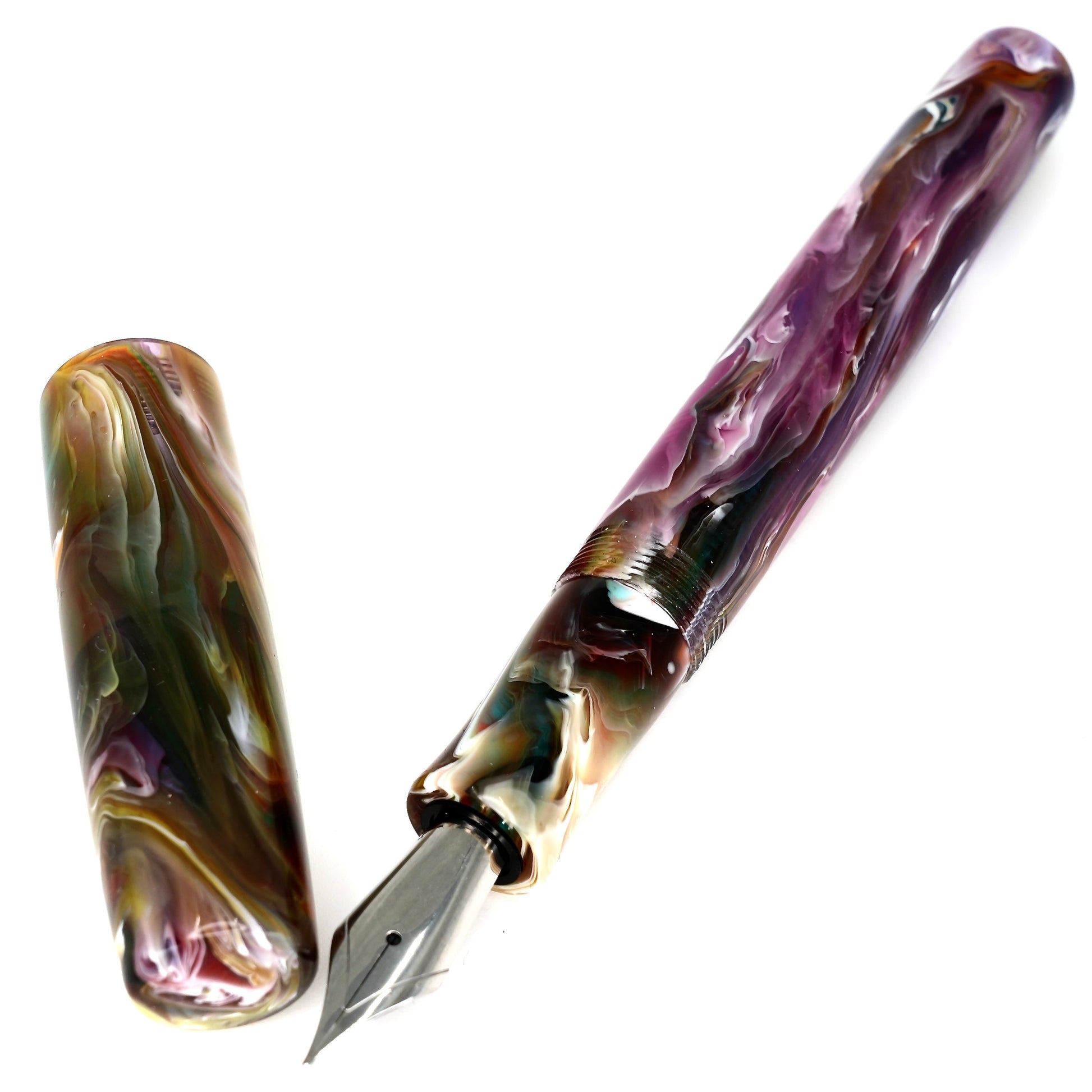 Presenting the stunning PM1 blank cast by Jonathon Brooks A Stepless 14mm pen from Silver Burl Pens. Part of the Simply Elegant series, this pen is made for writers who appreciate both comfort and style. Its sleek design is perfect for carrying in a pocket or bag, or displaying on a desk. Each pen is carefully crafted to the highest standards and includes a size six Jowo nib and Schmidt K5 ink converter. The polished steel nib is offered in different tip sizes, and other nib options are available by contacting john@silverburlpens.com.