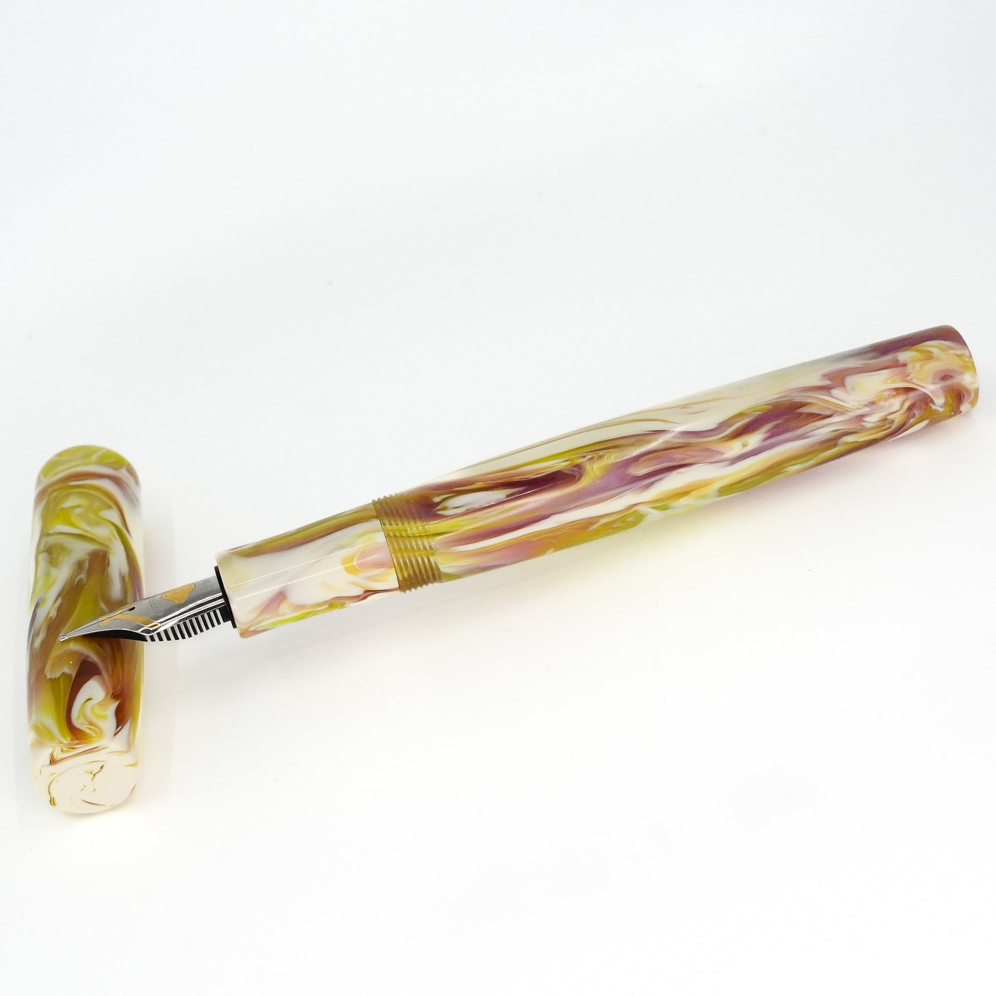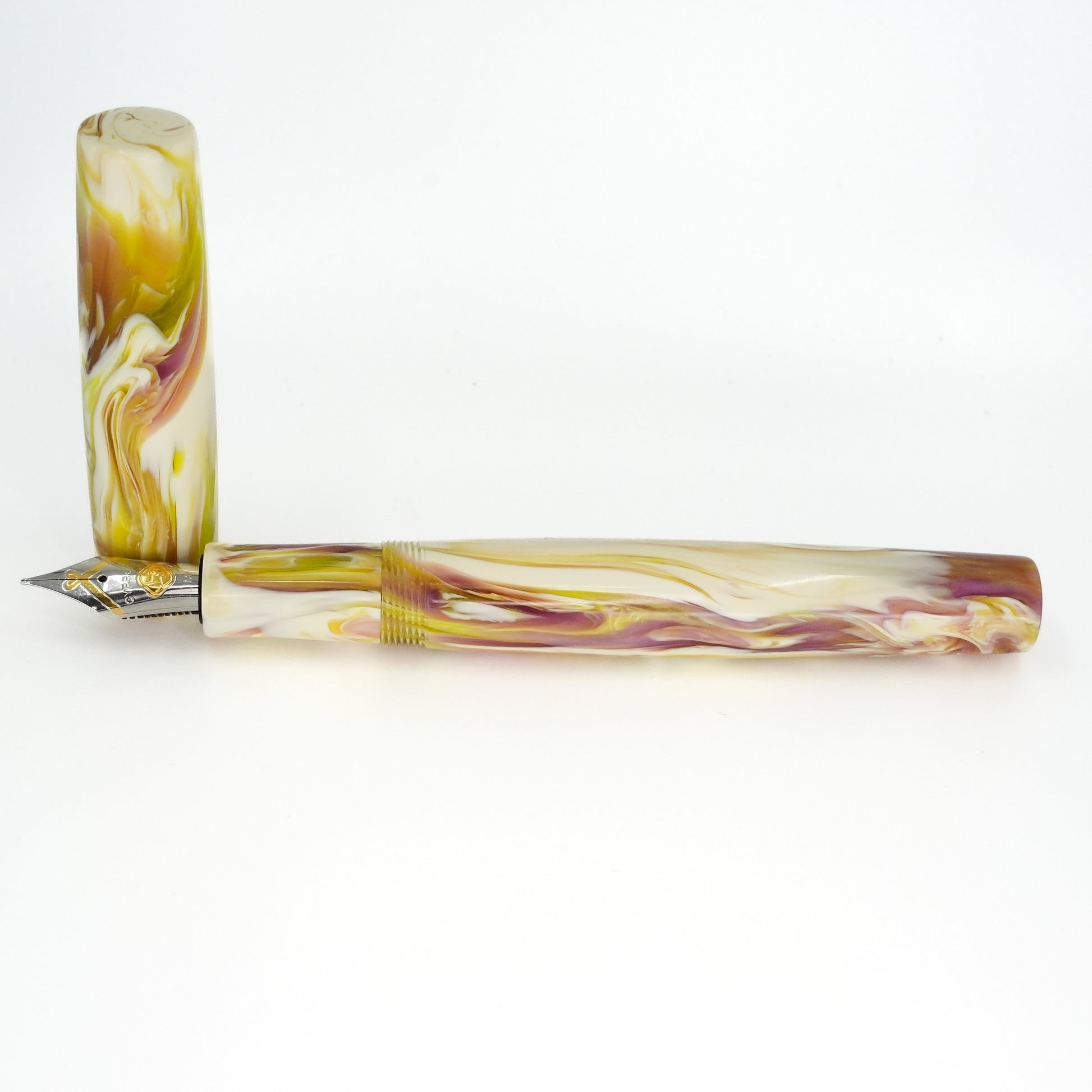 Presenting the stunning Stepless 14mm pen from Silver Burl Pens. Part of the Simply Elegant series, this pen is made for writers who appreciate both comfort and style. Its sleek design is perfect for carrying in a pocket or bag, or displaying on a desk. Each pen is carefully crafted to the highest standards and includes a size six Jowo nib and Schmidt K5 ink converter. The polished steel nib is offered in different tip sizes, and other nib options are available by contacting john@silverburlpens.com.