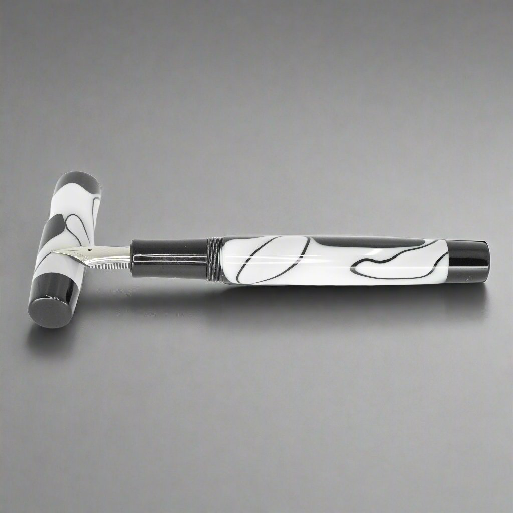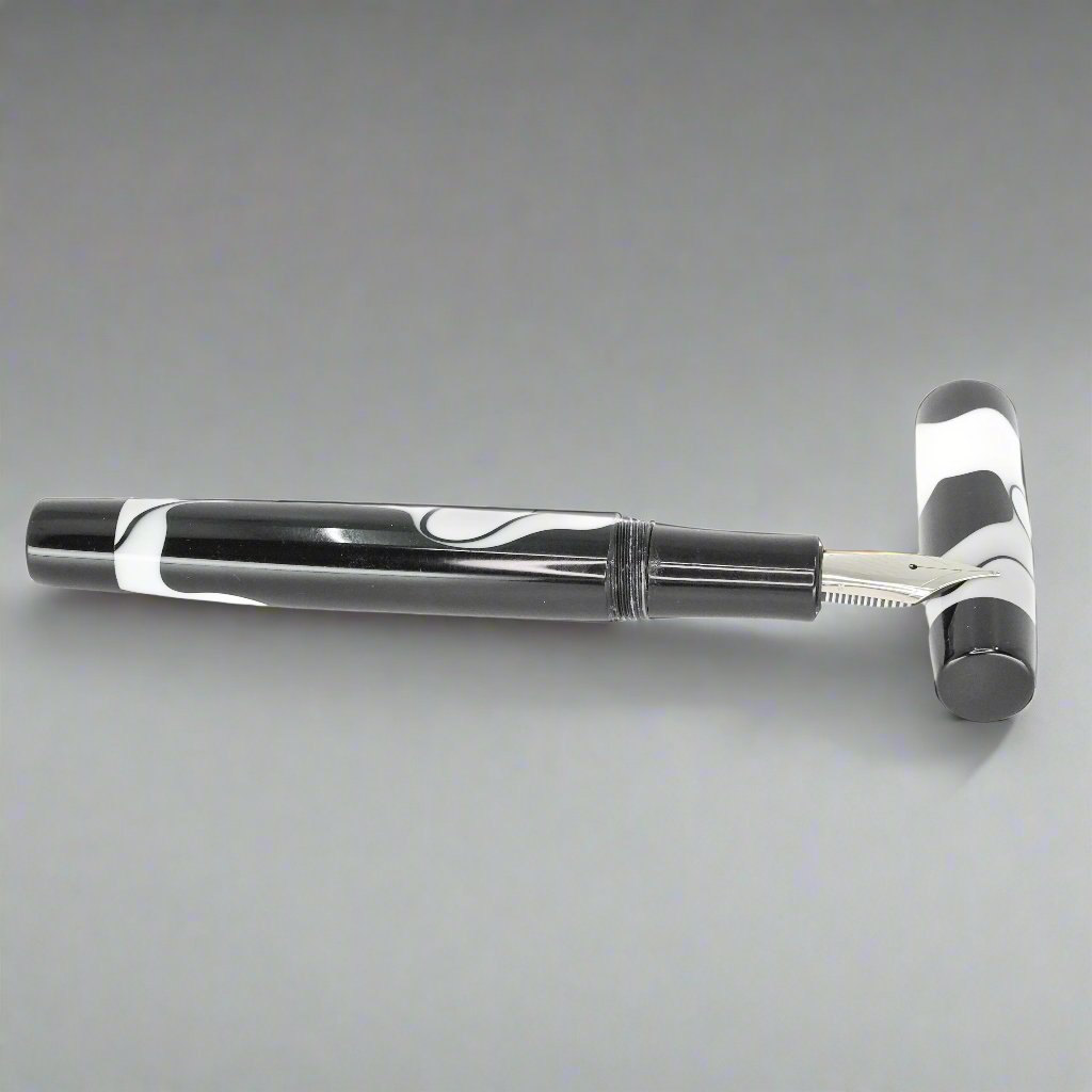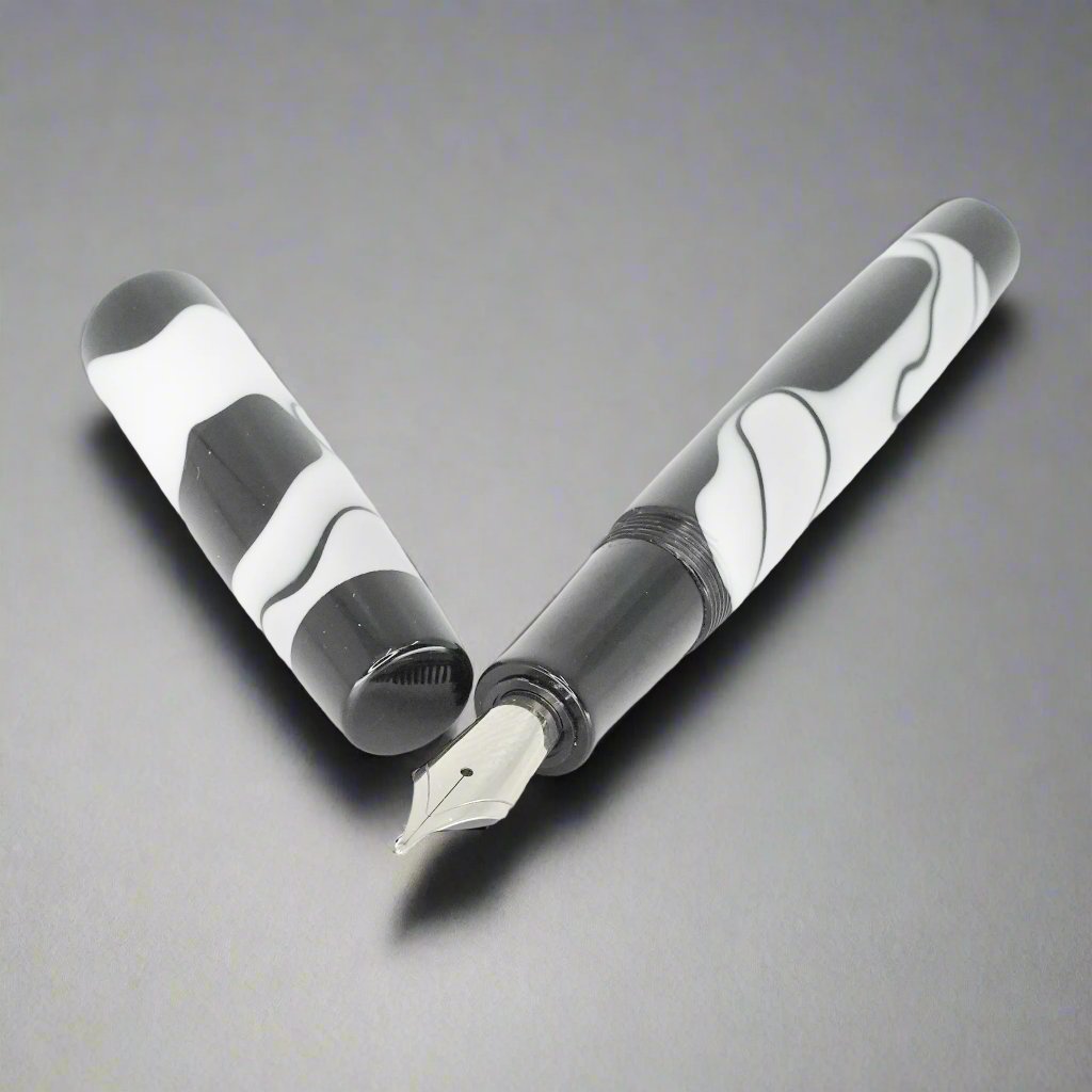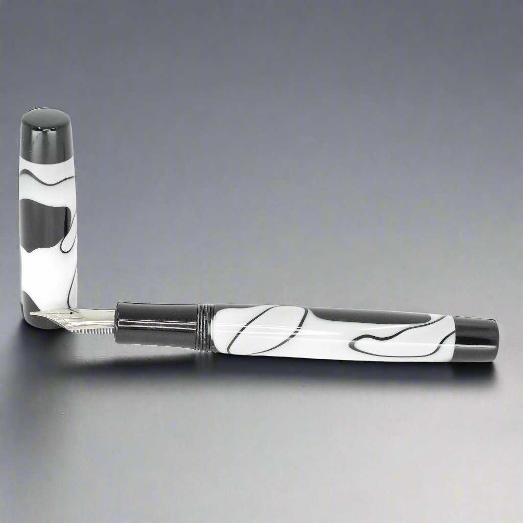 Presenting the stunning Stepless 14mm pen from Silver Burl Pens. Part of the Simply Elegant series, this pen is made for writers who appreciate both comfort and style. Its sleek design is perfect for carrying in a pocket or bag, or displaying on a desk. Each pen is carefully crafted to the highest standards and includes a size six Jowo nib and Schmidt K5 ink converter. The polished steel nib is offered in different tip sizes, and other nib options are available by contacting john@silverburlpens.com.