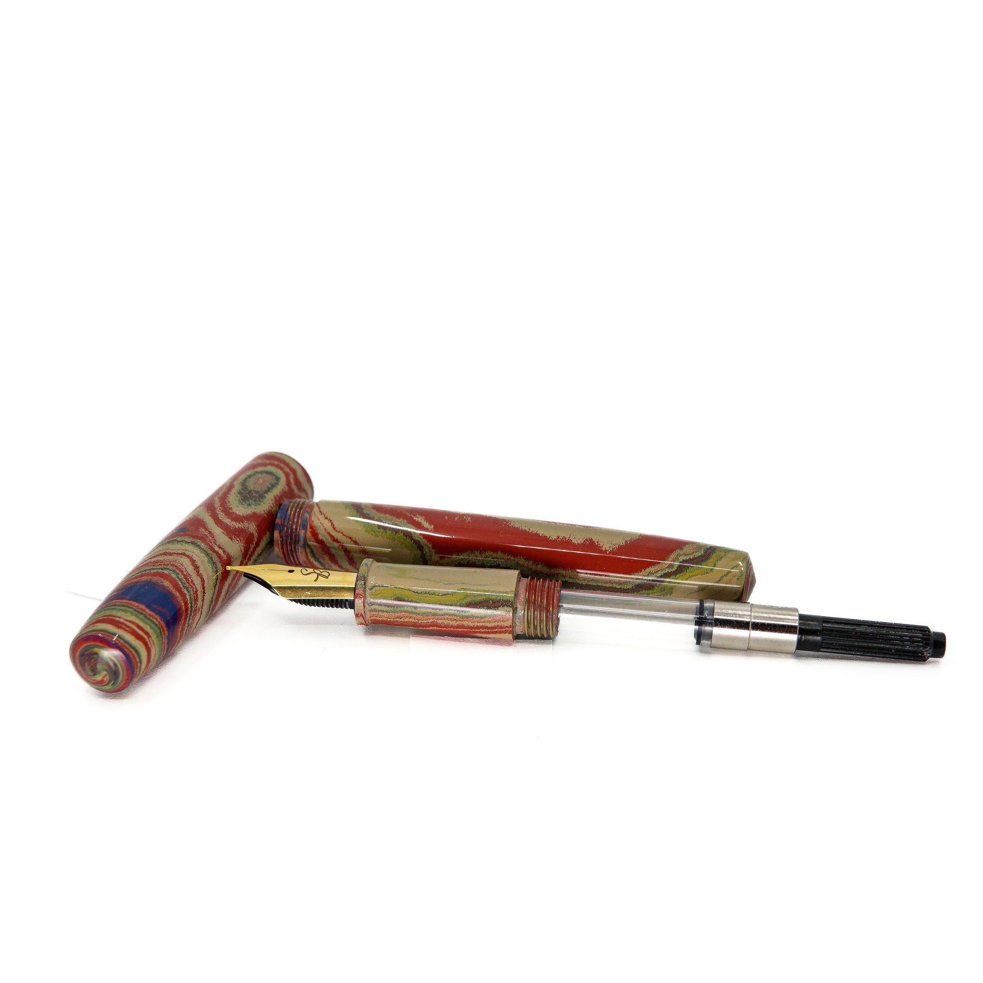 Fitted with polished steel iridium tip Bock nib - medium size 6. (Can be fitted with a range of different nib tip sizes and materials, Red or Black lacquer , Gold, Gold plate, Rose Gold plate, Two tone Gold plate and polished Steel - please contact in advance to discuss options, shipping times and pricing.)K5 Premium ink converter refilling system fitted, also takes standard disposable ink cartridge. This pen is truly special and will make a wonderful gift for a loved one, family member or friend, or why not treat yourself to this wonderful one off delight Please view sale terms and conditions.