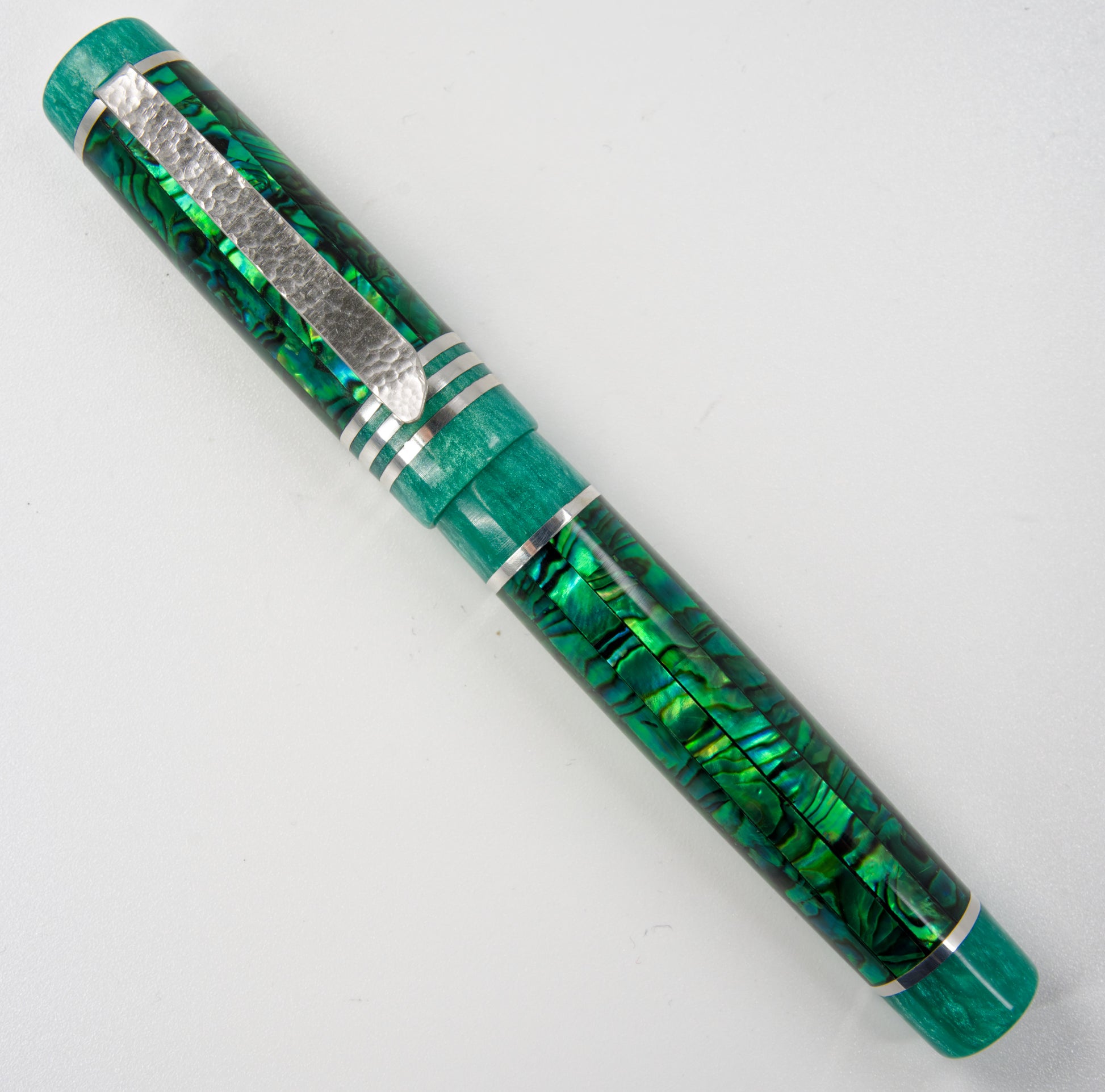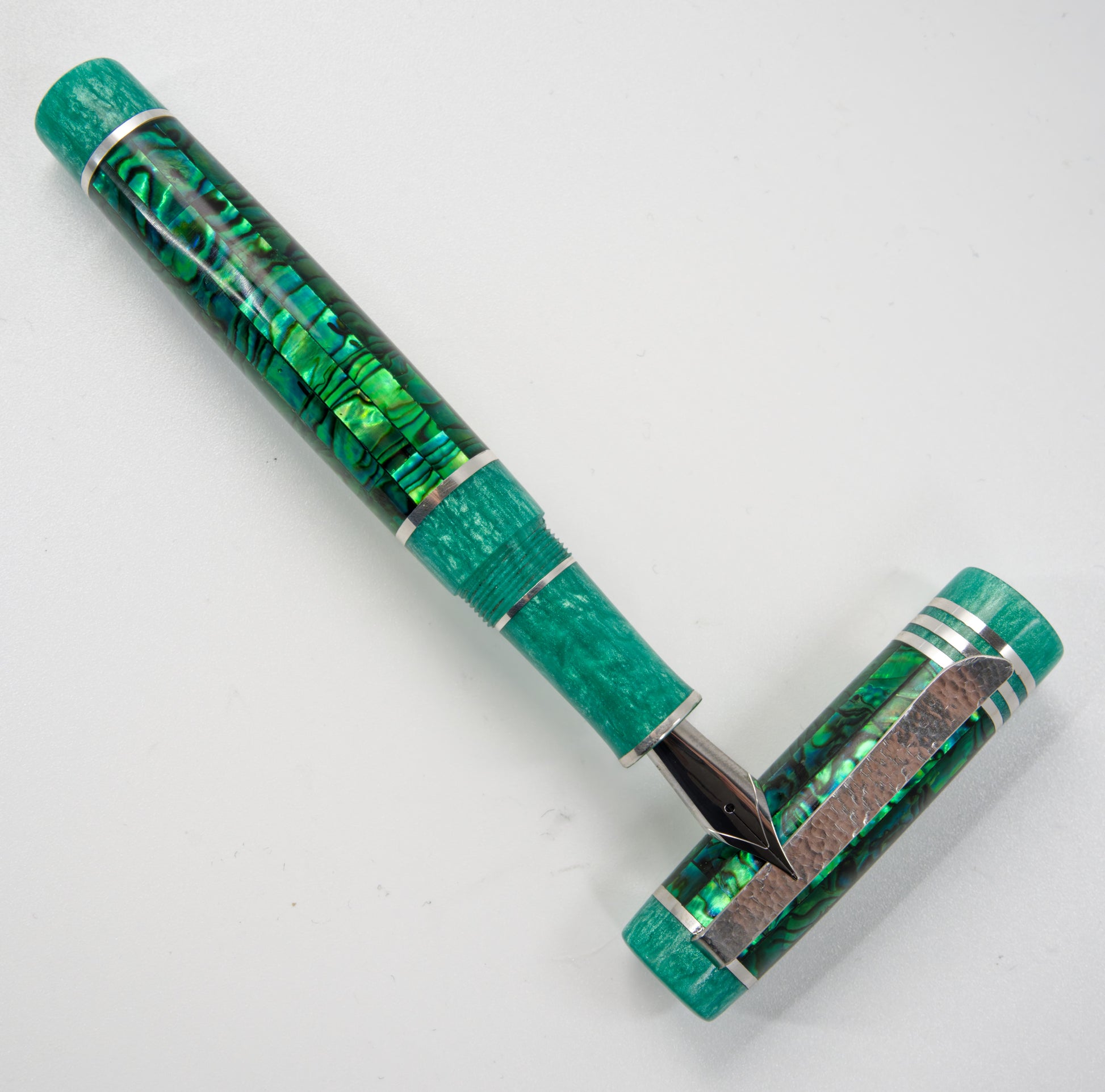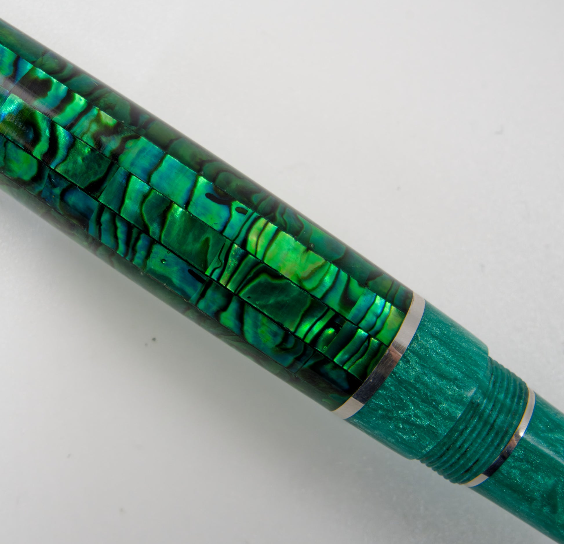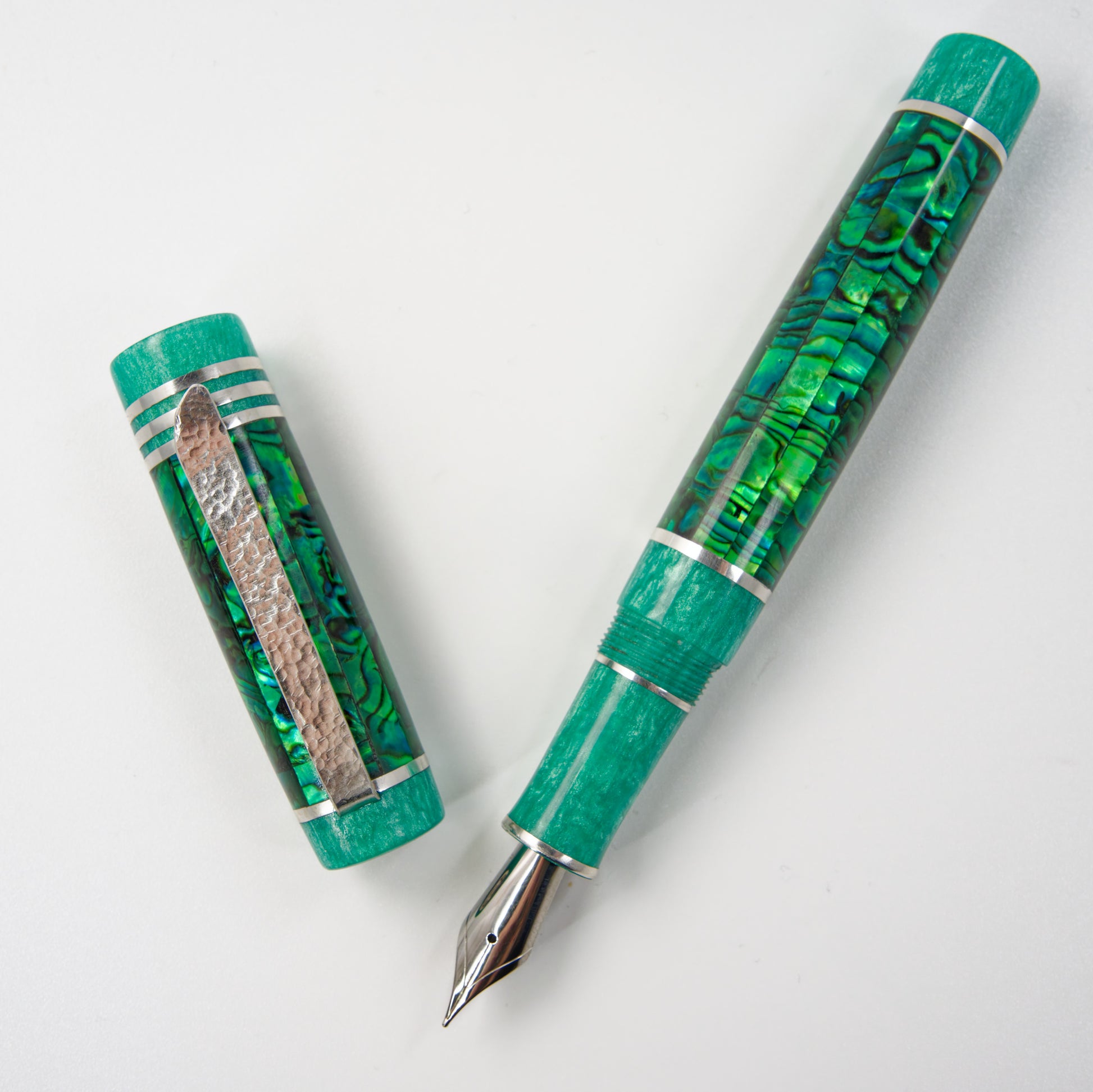 The fusion of acrylic resin and natural abalone shell creates a seamless blend of durability and elegance. The iridescence of the shell adds a touch of oceanic allure, while the acrylic resin ensures long-lasting quality. With a length of 145m/m and a nib to finial end measurement of 135m/m, this pen is the perfect size for comfortable writing.