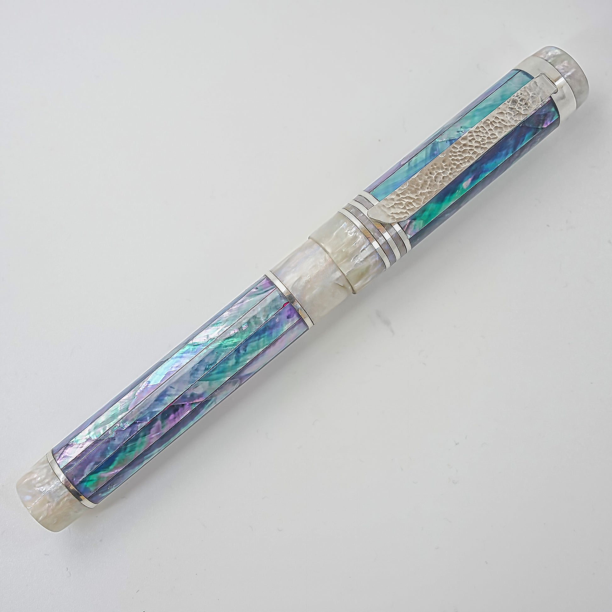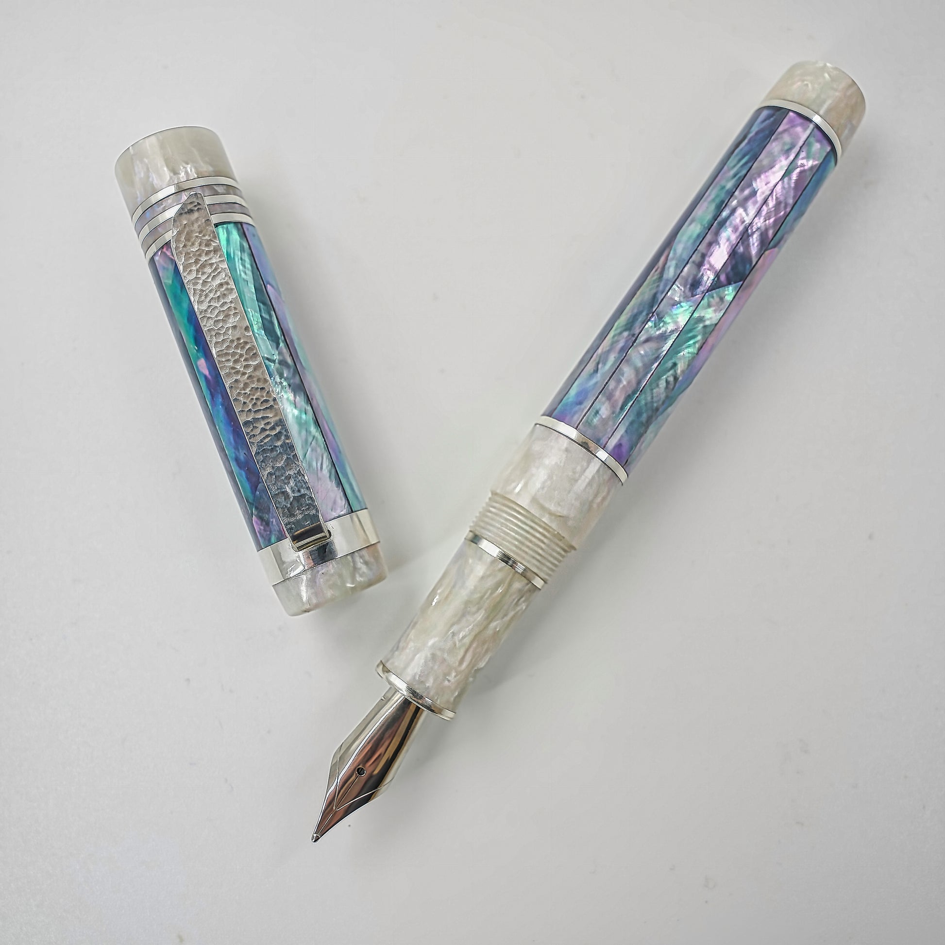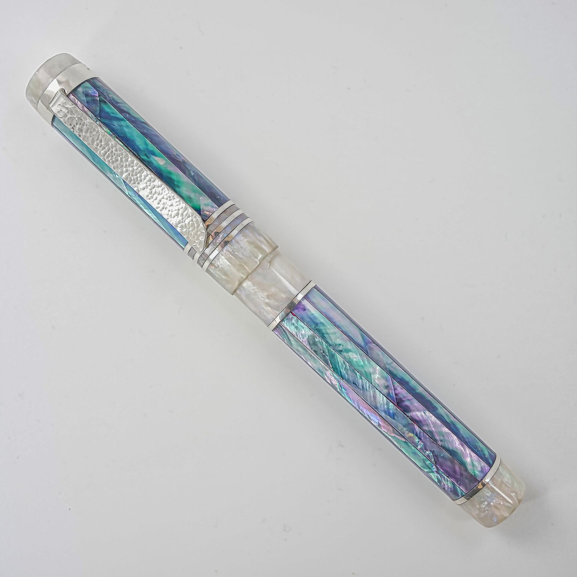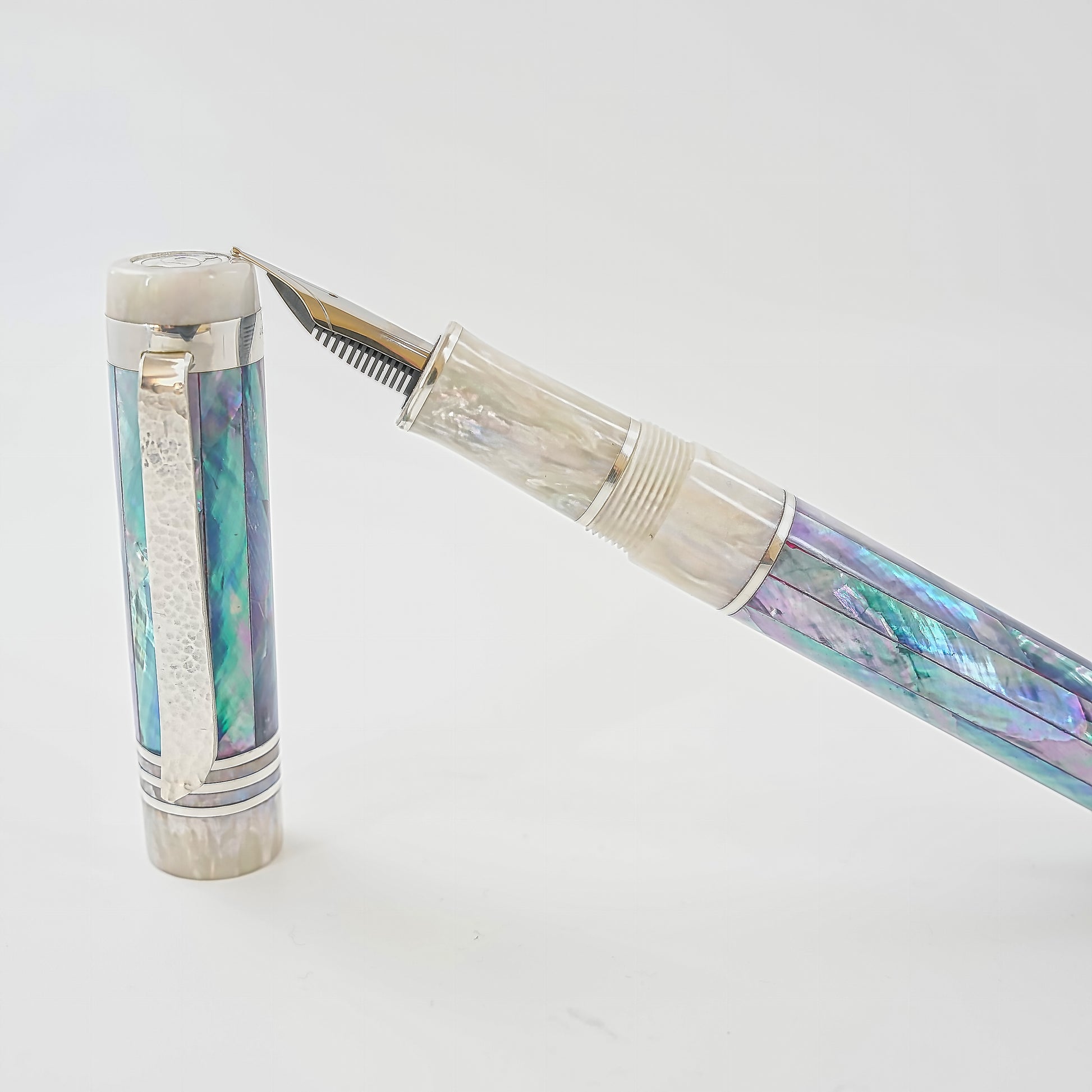 The fusion of acrylic resin and natural abalone shell creates a seamless blend of durability and elegance. The iridescence of the shell adds a touch of oceanic allure, while the acrylic resin ensures long-lasting quality. With a length of 145m/m and a nib to finial end measurement of 135m/m, this pen is the perfect size for comfortable writing.