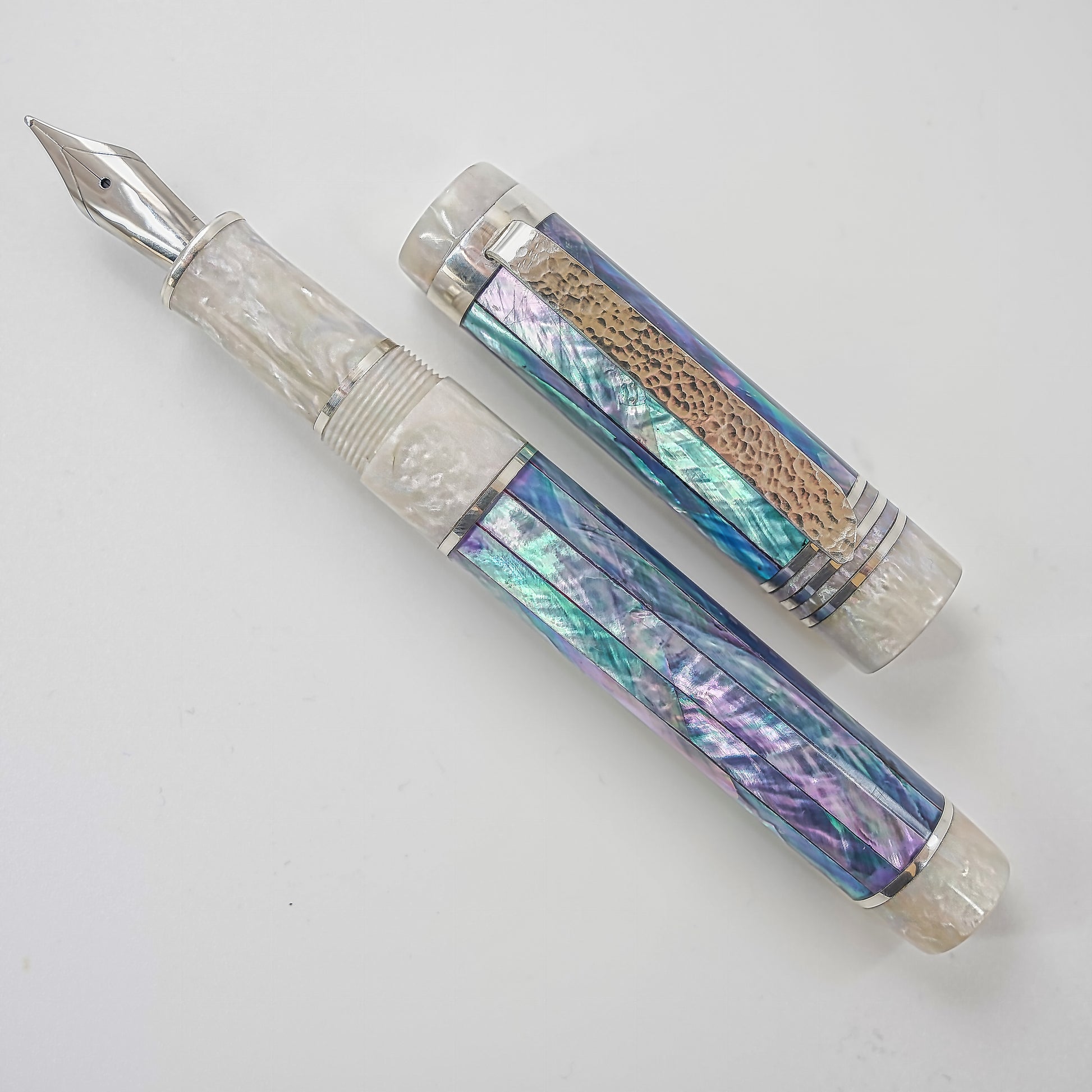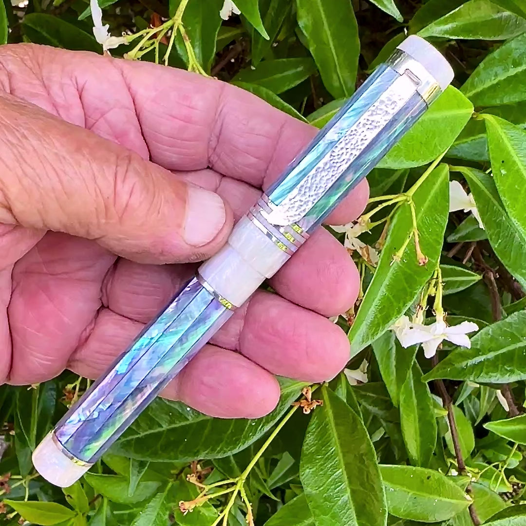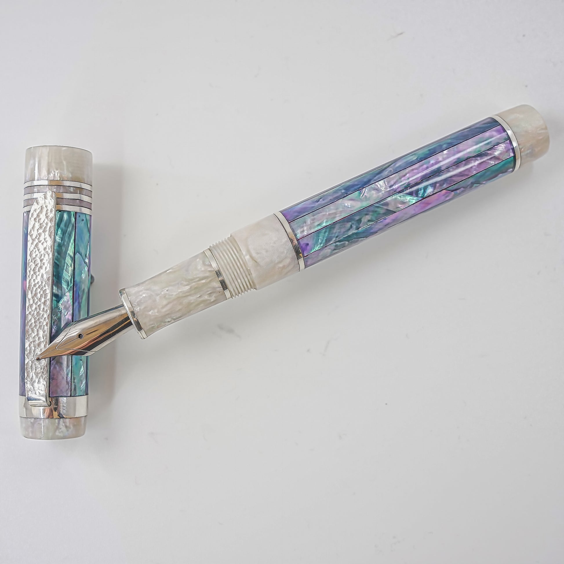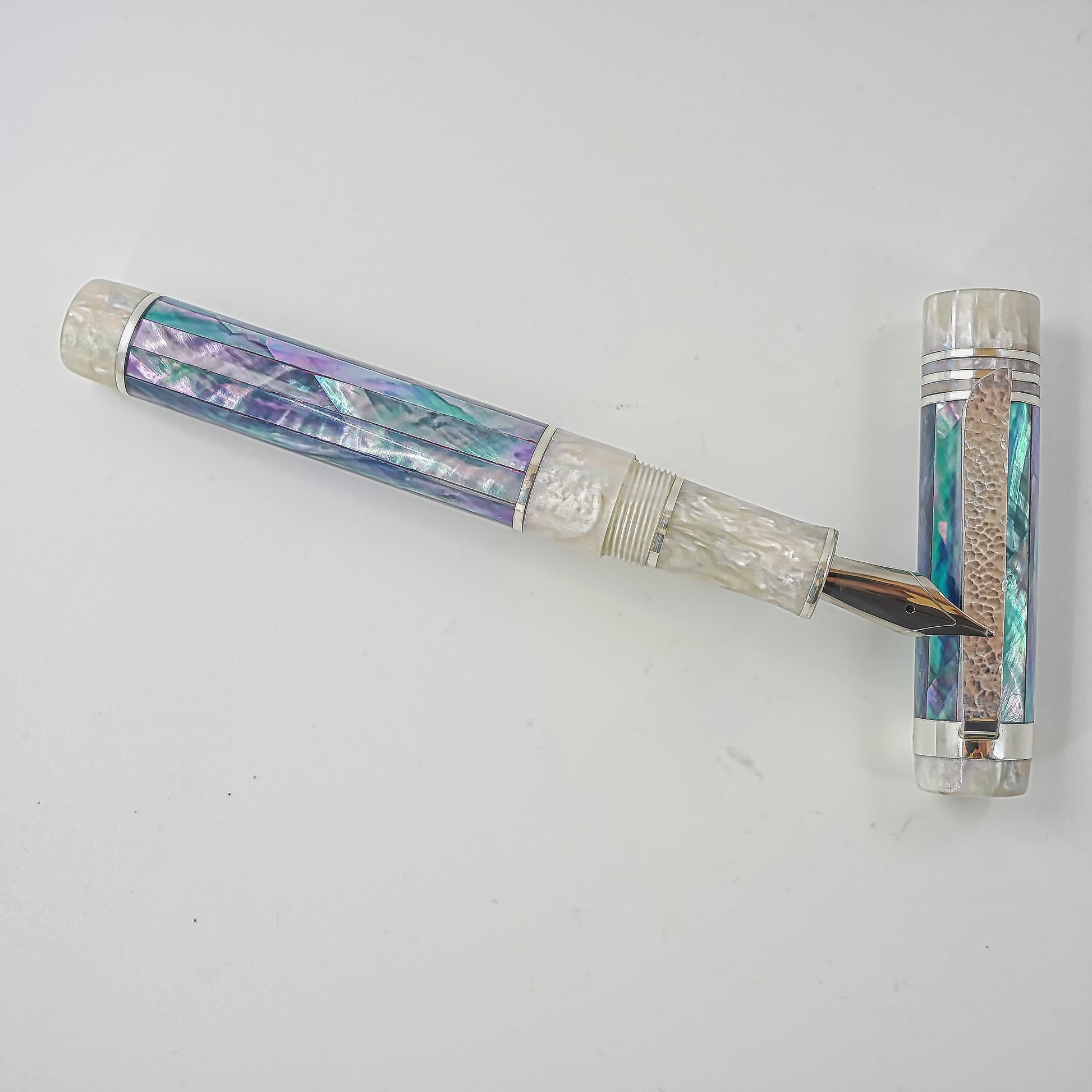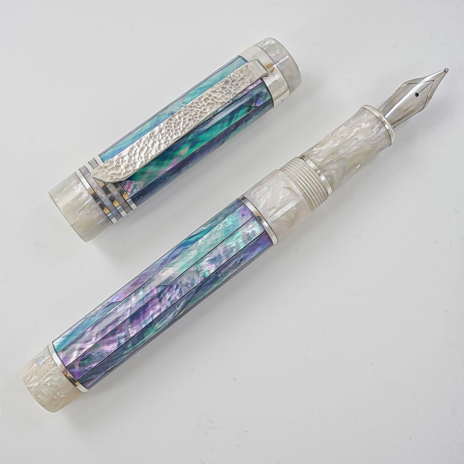 The fusion of acrylic resin and natural abalone shell creates a seamless blend of durability and elegance. The iridescence of the shell adds a touch of oceanic allure, while the acrylic resin ensures long-lasting quality. With a length of 145m/m and a nib to finial end measurement of 135m/m, this pen is the perfect size for comfortable writing.