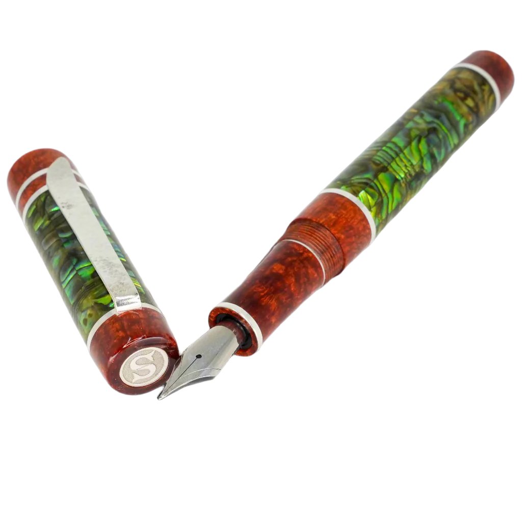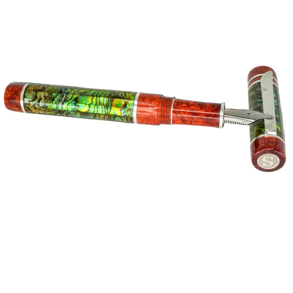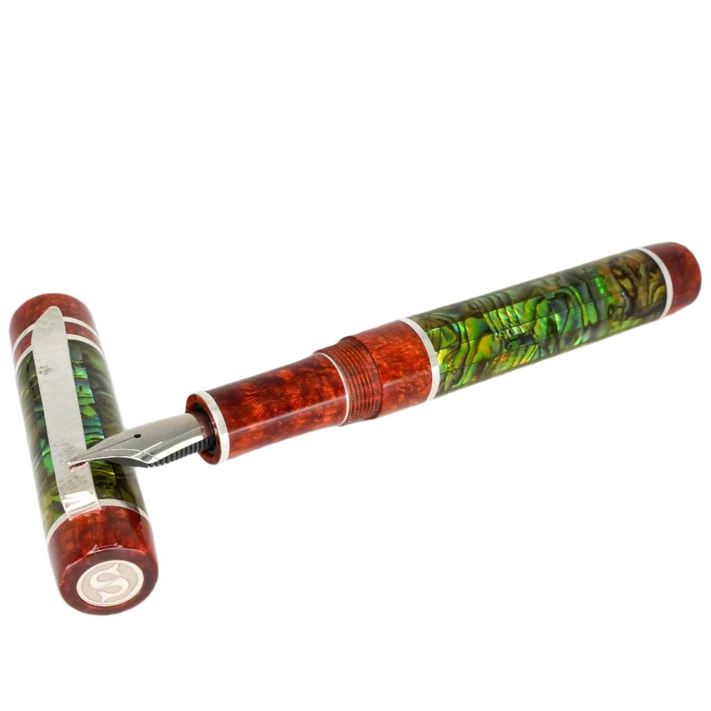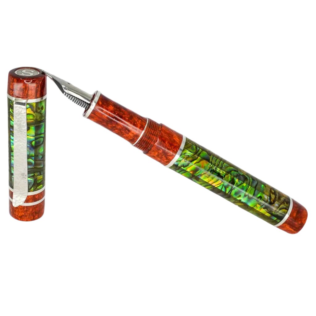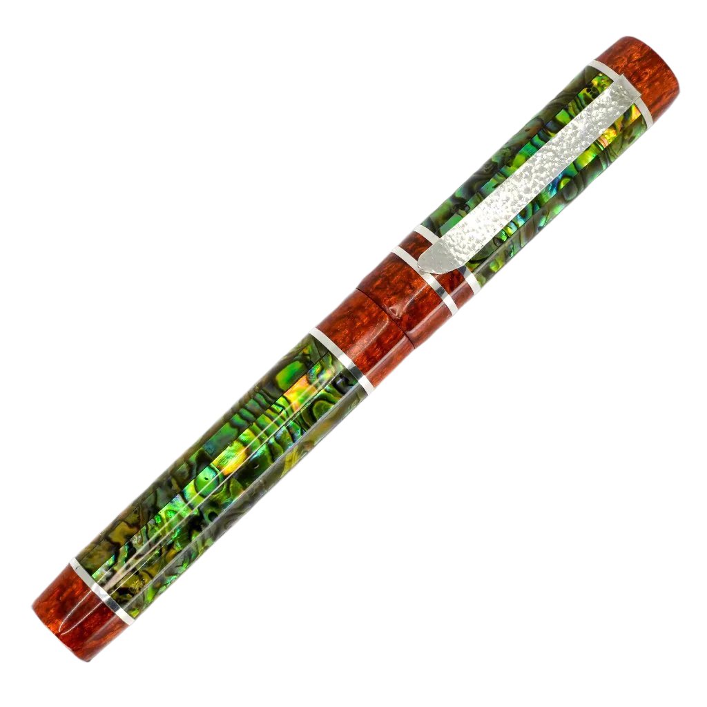 The fusion of acrylic resin and natural abalone shell creates a seamless blend of durability and elegance. The iridescence of the shell adds a touch of oceanic allure, while the acrylic resin ensures long-lasting quality. With a length of 145m/m and a nib to finial end measurement of 135m/m, this pen is the perfect size for comfortable writing.