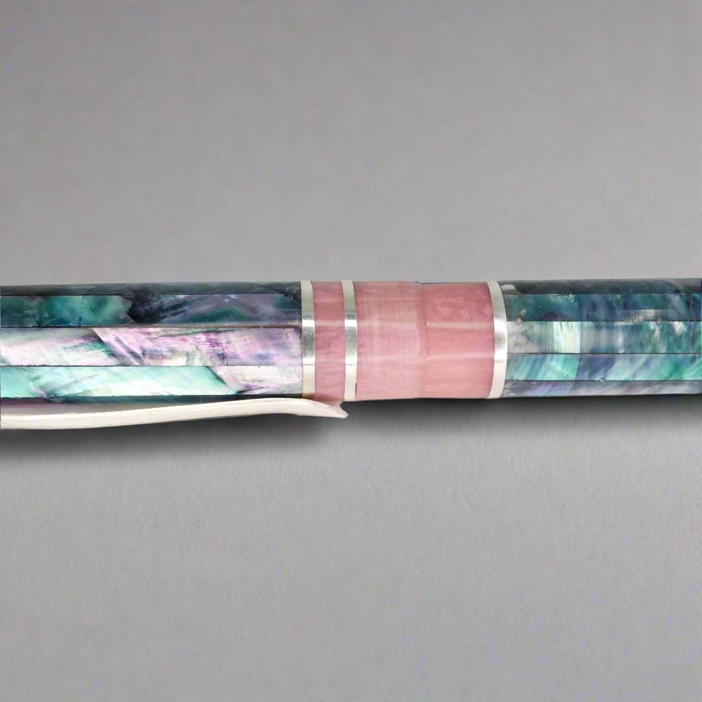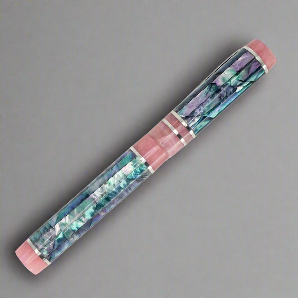 The fusion of acrylic resin and natural abalone shell creates a seamless blend of durability and elegance. The iridescence of the shell adds a touch of oceanic allure, while the acrylic resin ensures long-lasting quality. With a length of 145m/m and a nib to finial end measurement of 135m/m, this pen is the perfect size for comfortable writing.