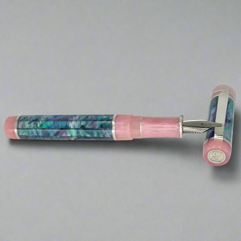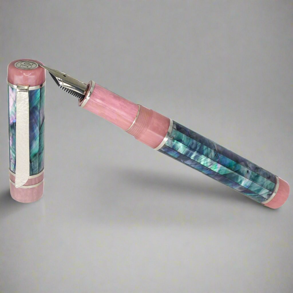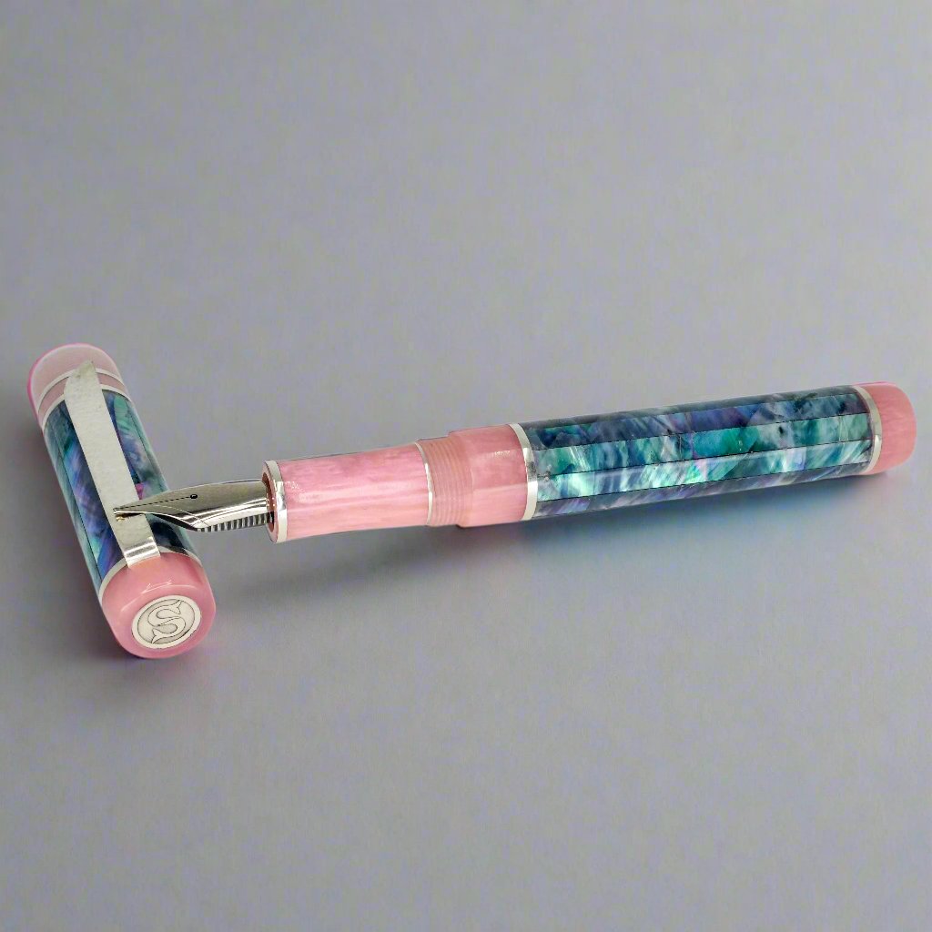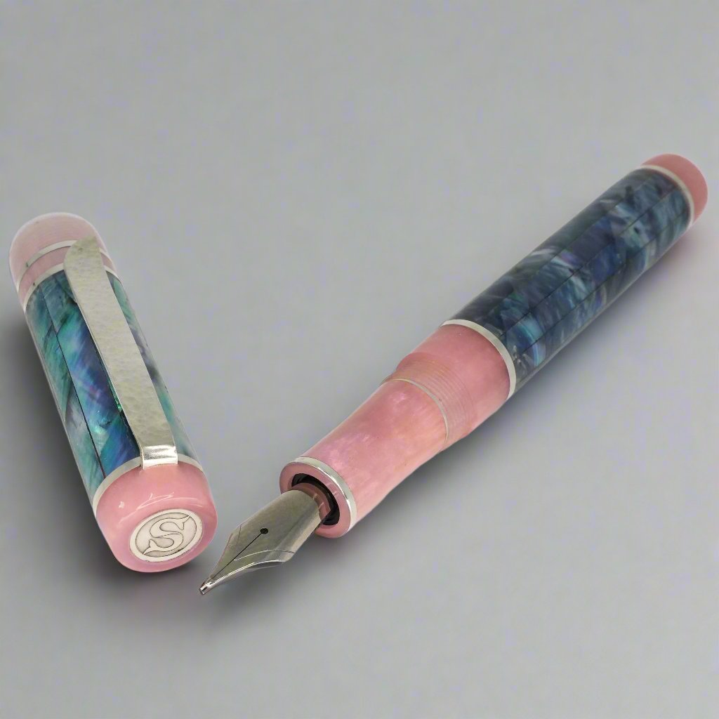 This exquisite fountain pen is a true work of art, meticulously handcrafted with inspiration from the stunning beauty of Cornwall's St Ives Bamaluz Beach. Made with real sea shell and Argentium silver, the Bamaluz series offers a unique and luxurious writing experience.