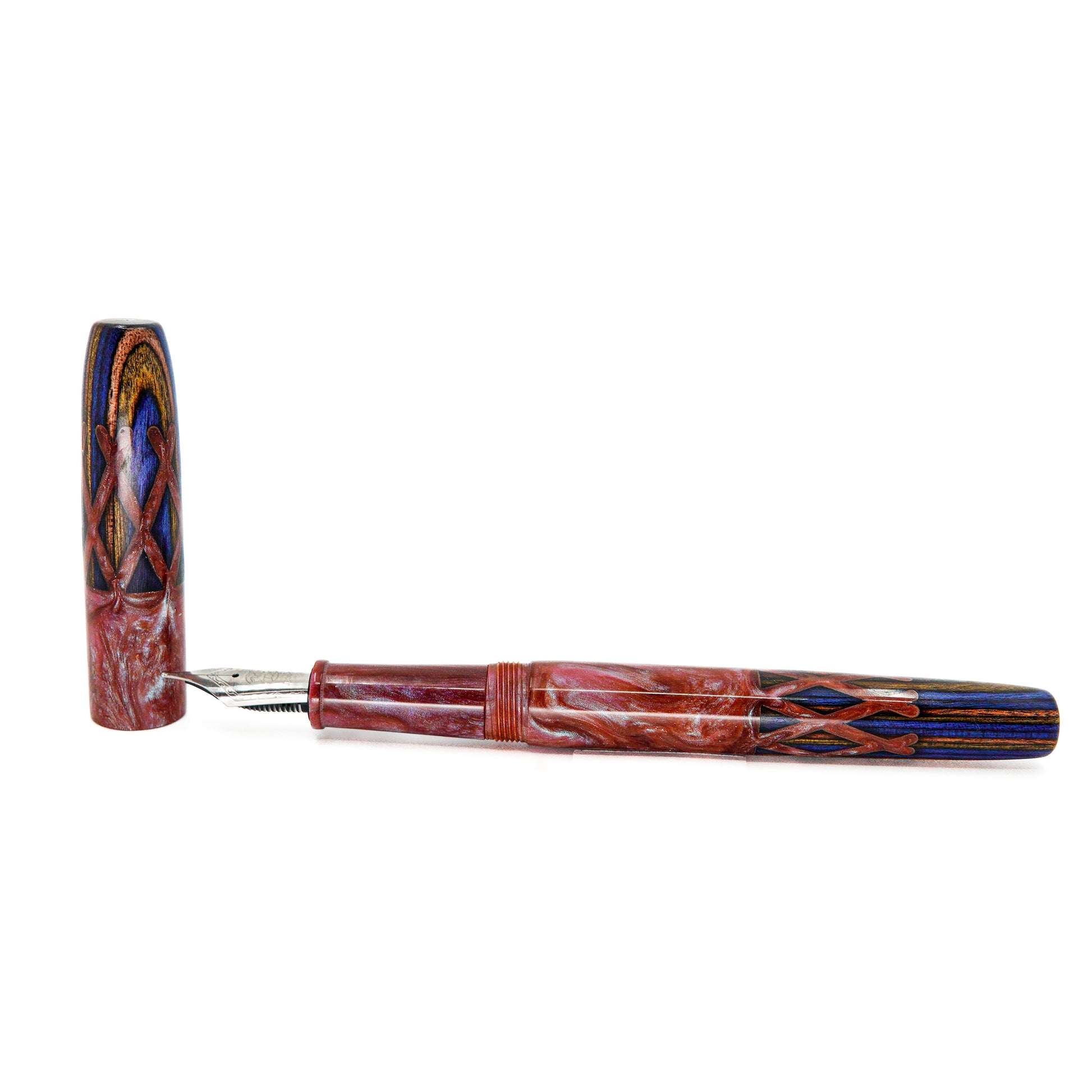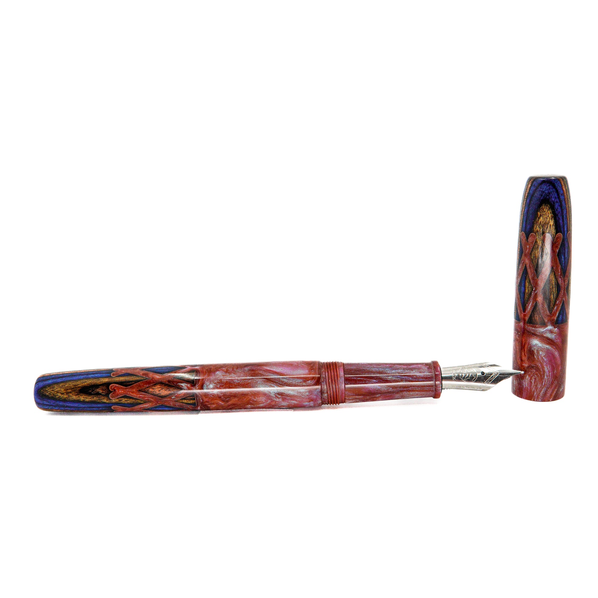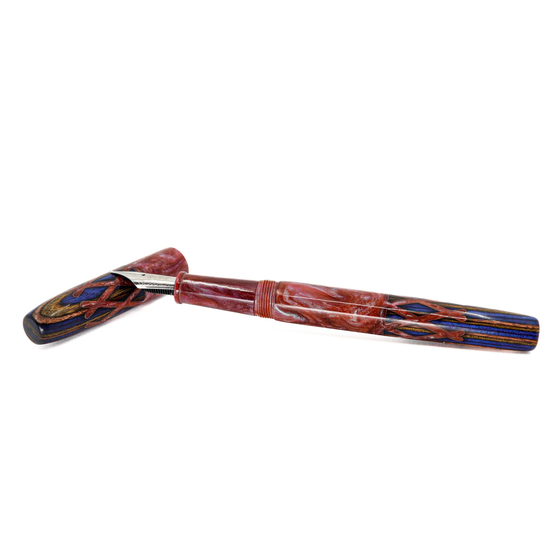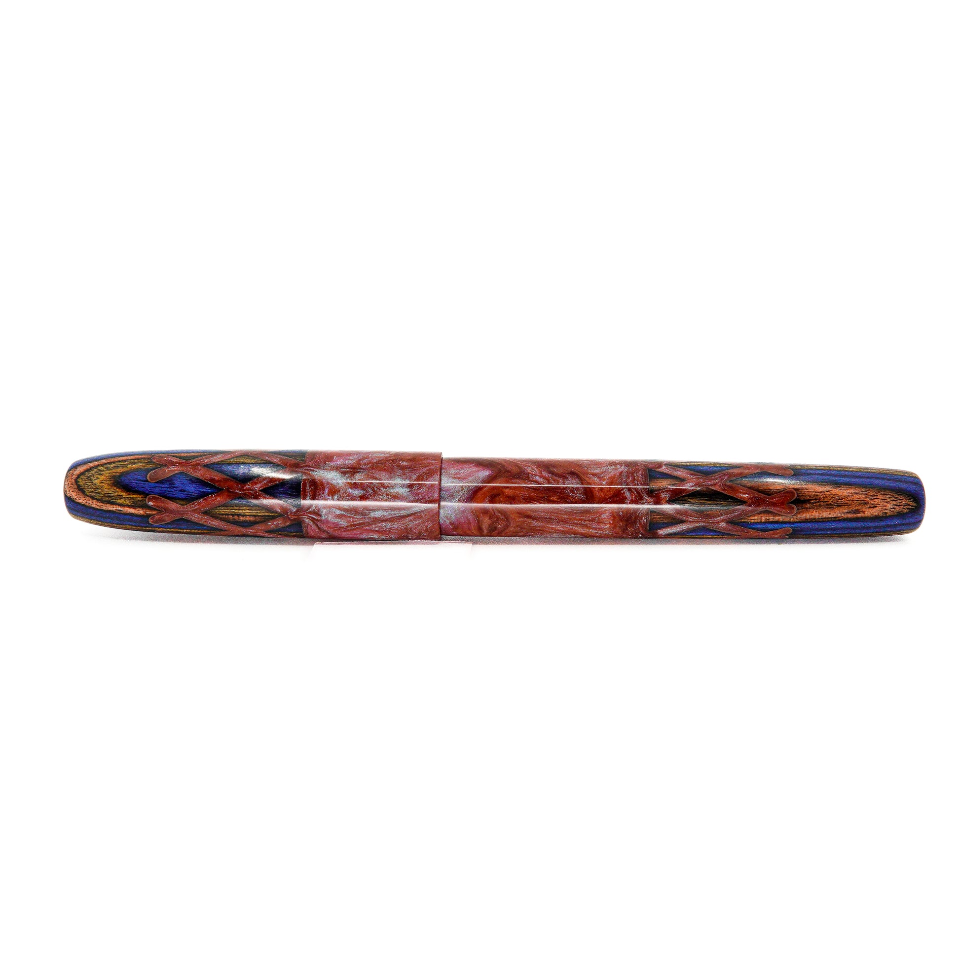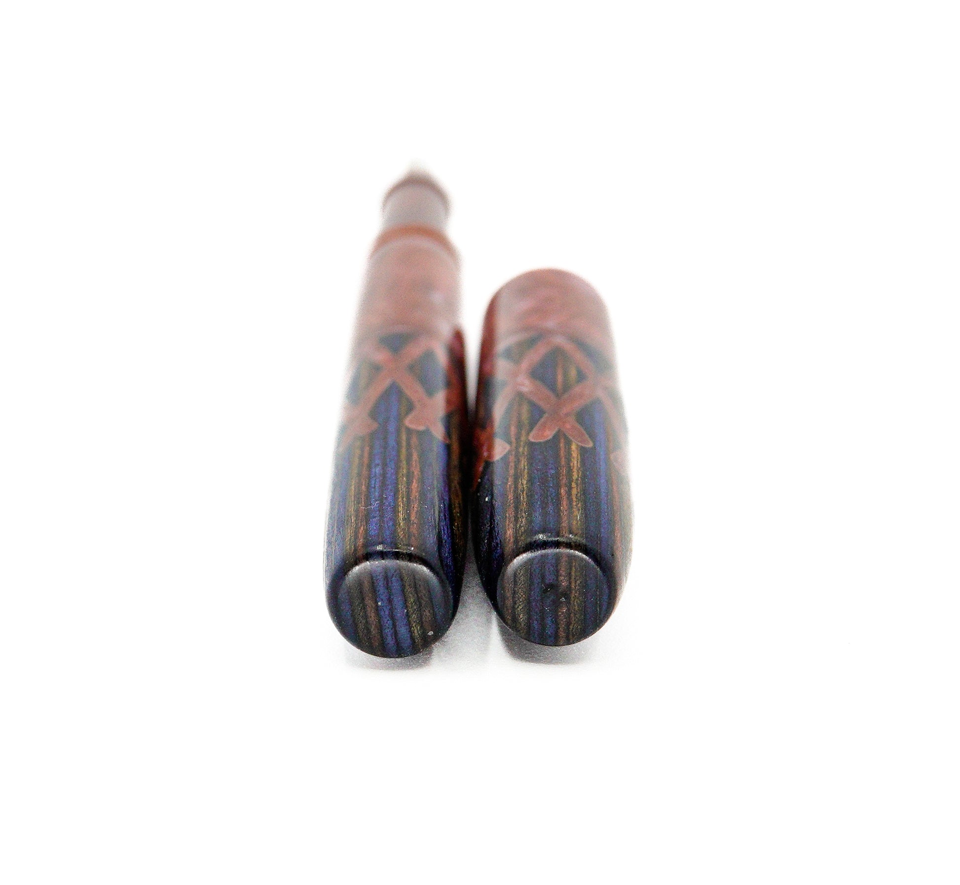 This beautiful Blue Frog Wood Hybrid pen offers a completely unique and impressive appearance. Each pen incorporates the woods natural identity and features with no two ever the same. This pen is one of a kind, completely hand turned, including the grip / nib section and triple start thread, all done by myself in my workshop. No pen kit has been used. The level of craftmanship, time involved and quality is reflected in the price.
